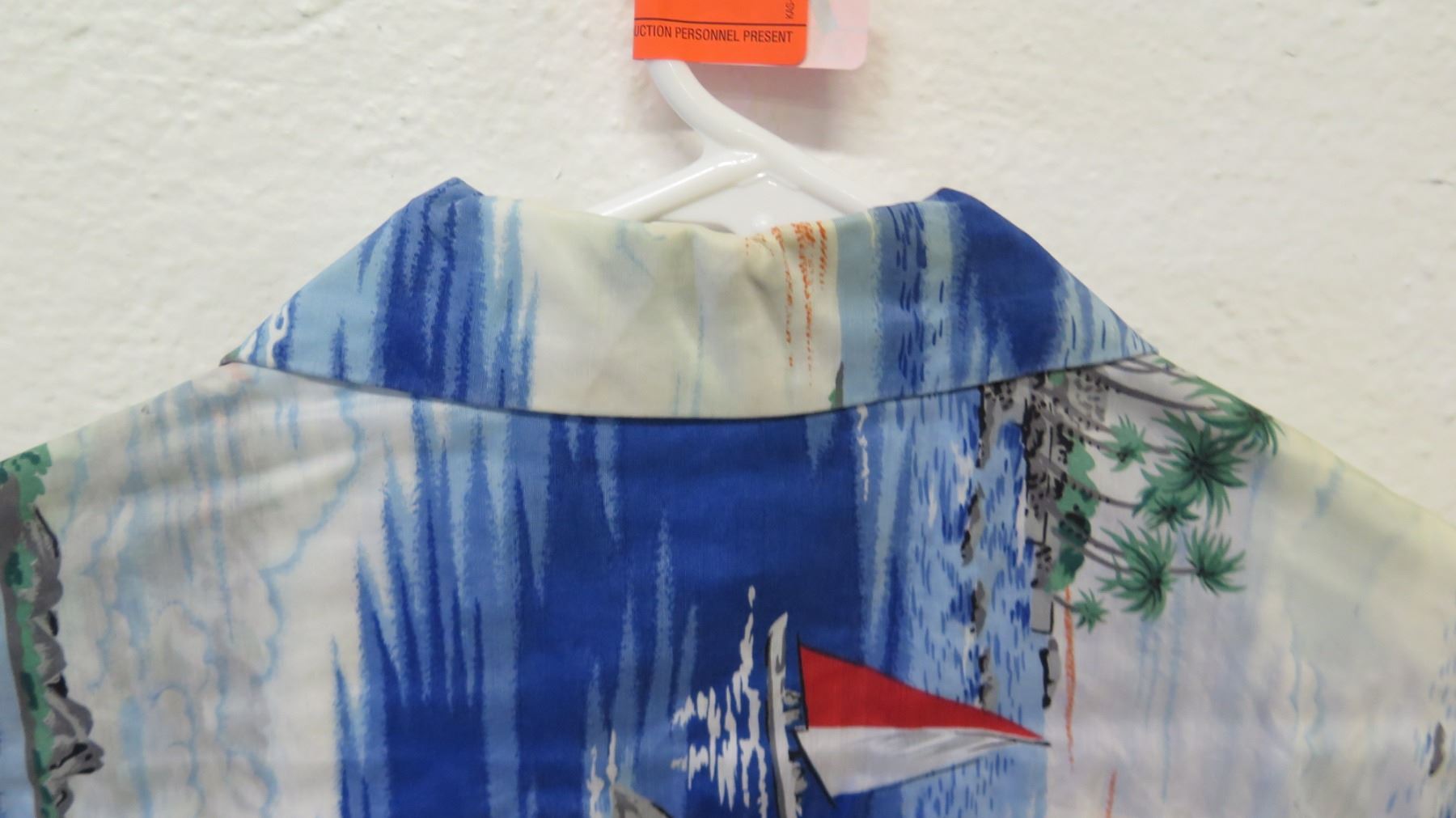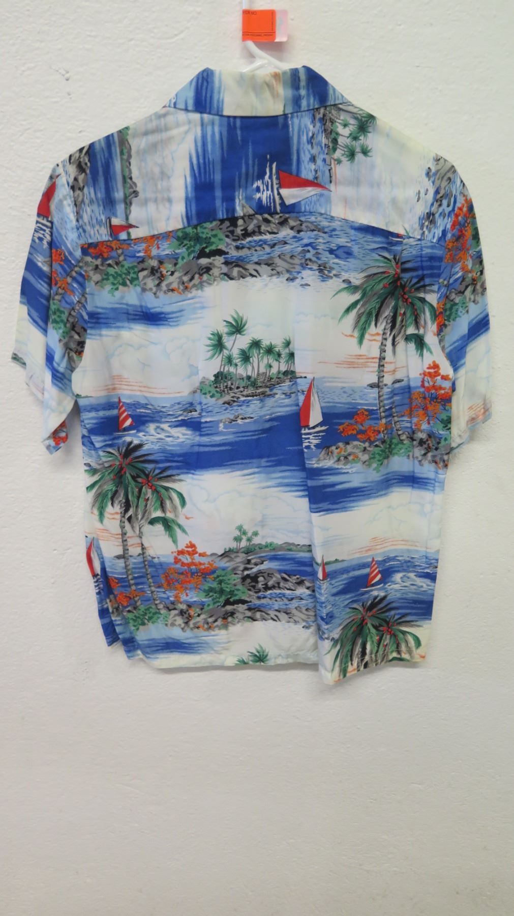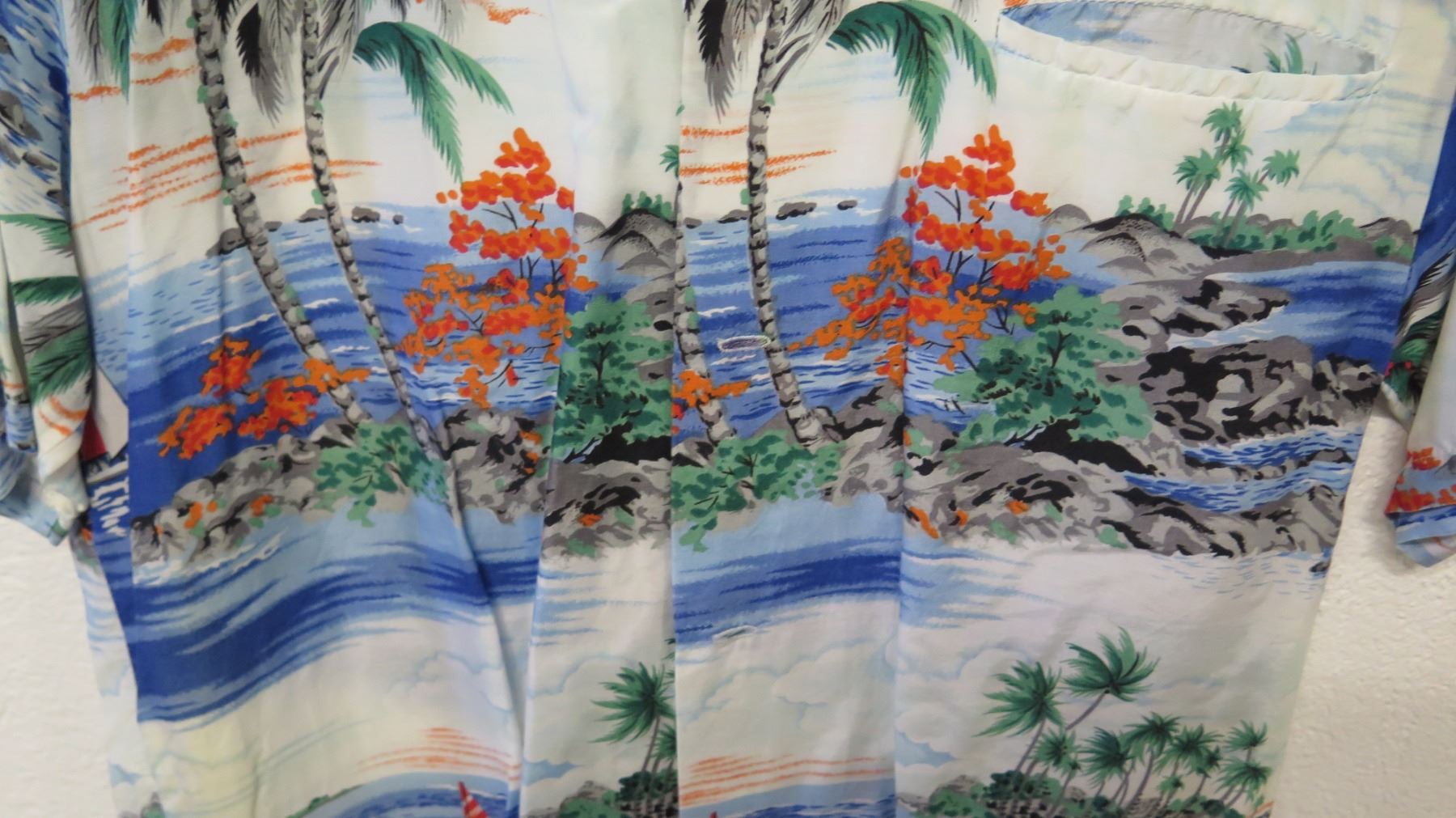 Vintage Aloha Shirt - Blue & Red Palm Tree/Sailing Motif, No Tags, Size Unknown