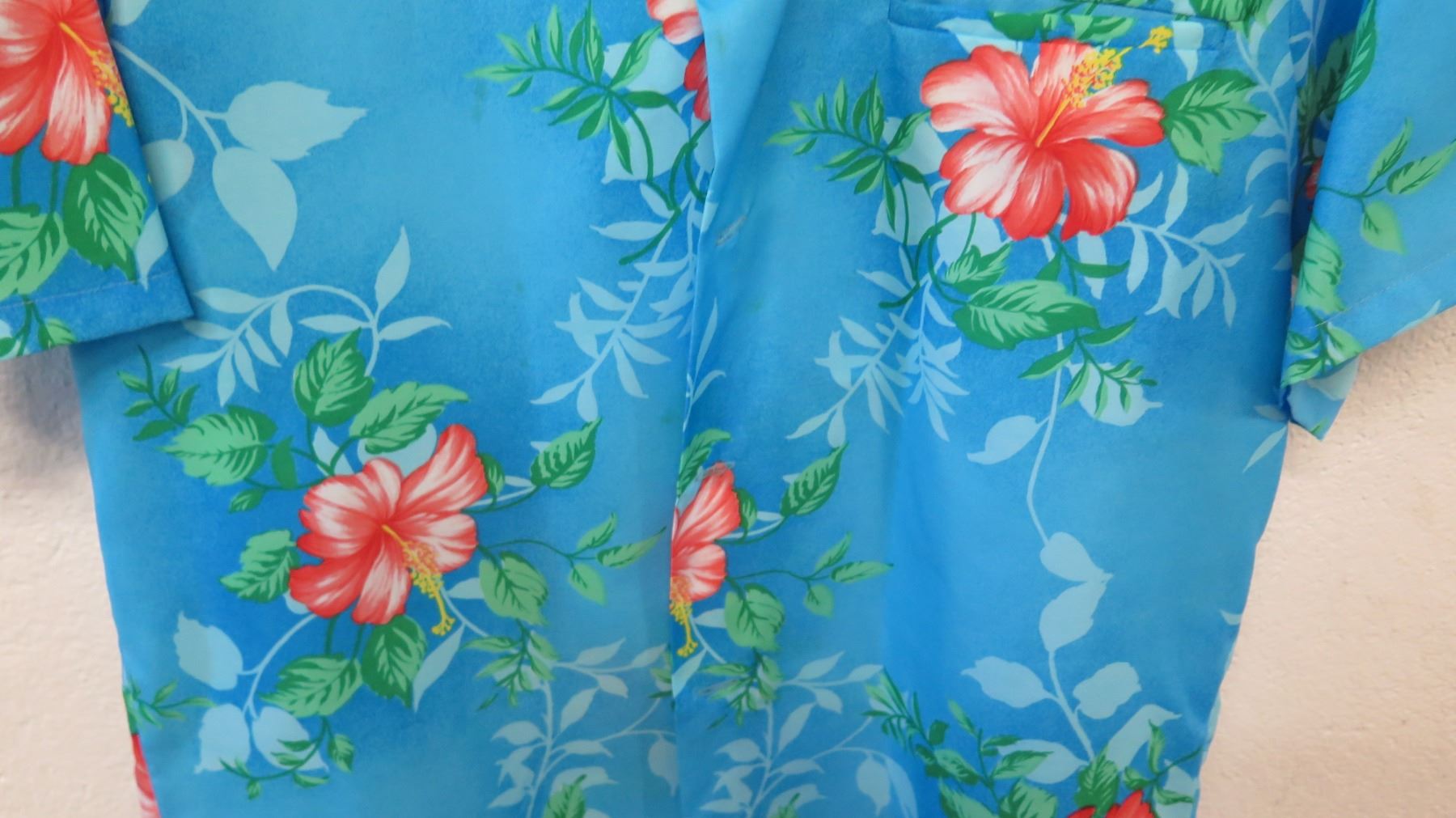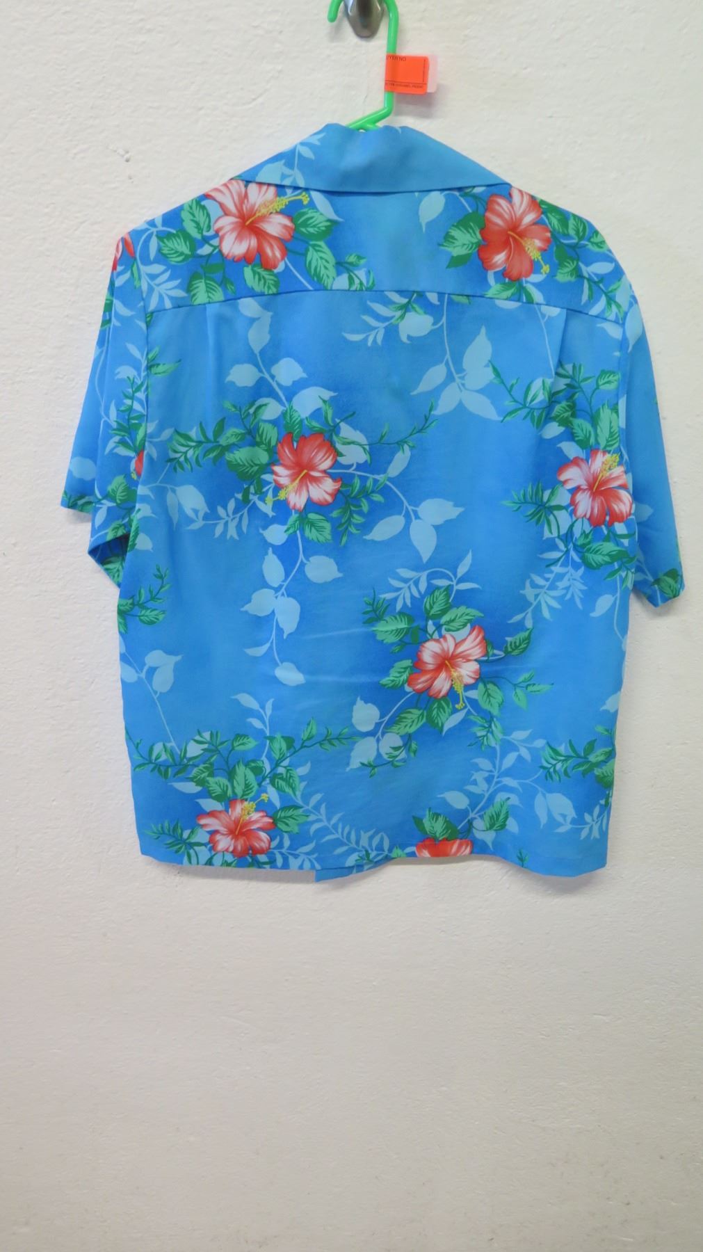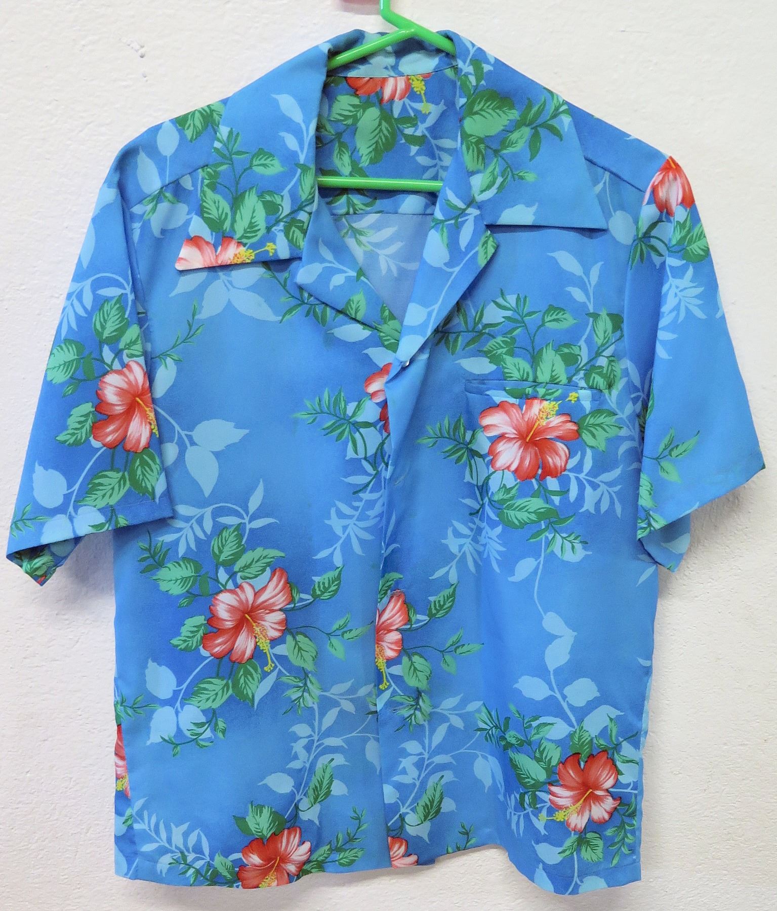 Vintage Aloha Shirt - Blue w/ Red Hibiscus, No Tags, Size Unknown