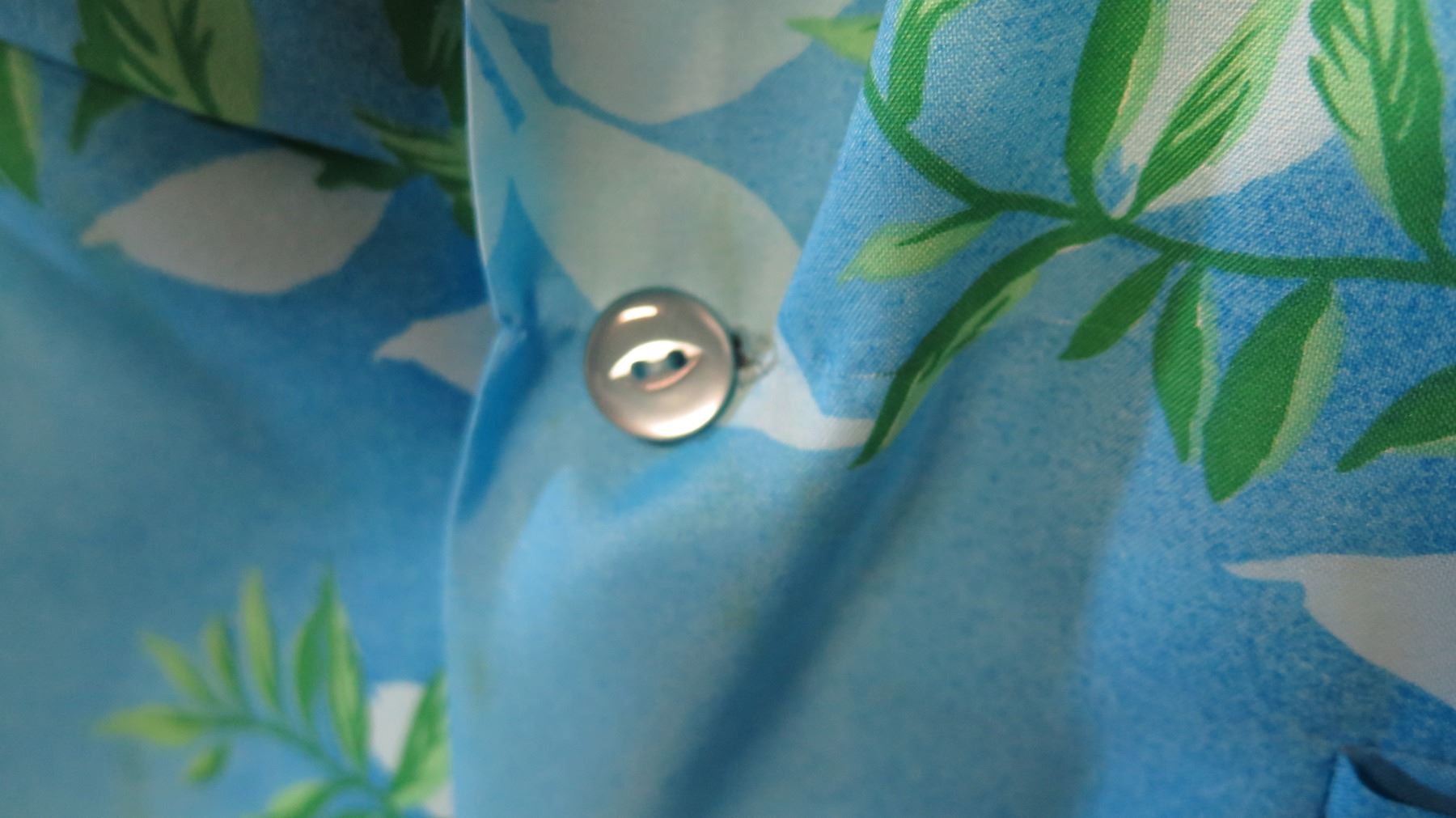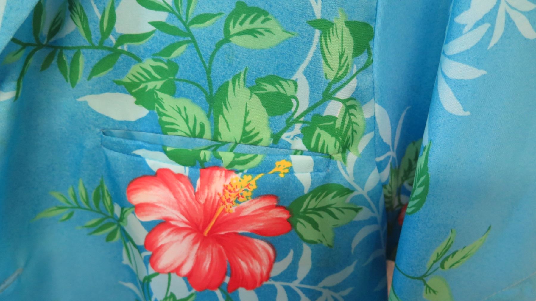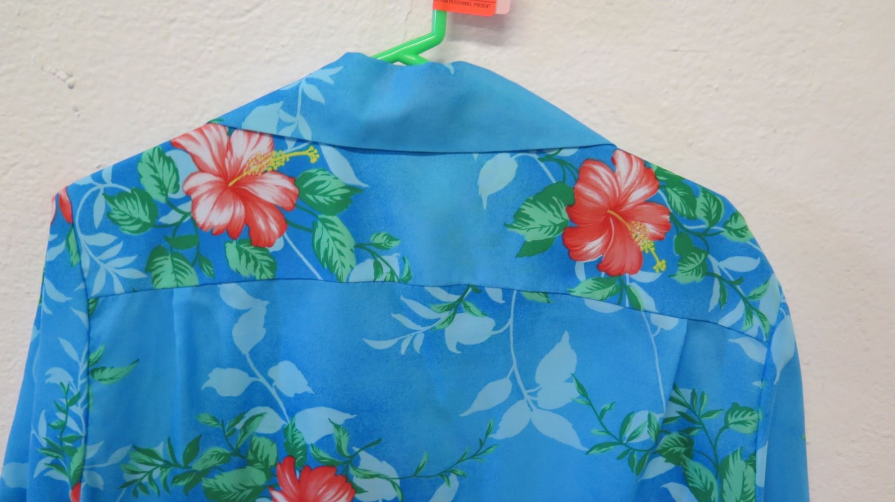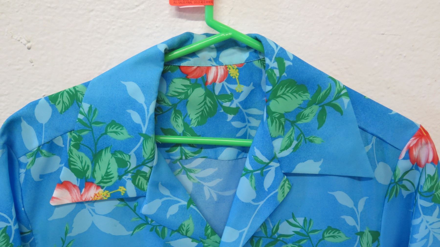 Vintage Aloha Shirt - Blue w/ Red Hibiscus, No Tags, Size Unknown