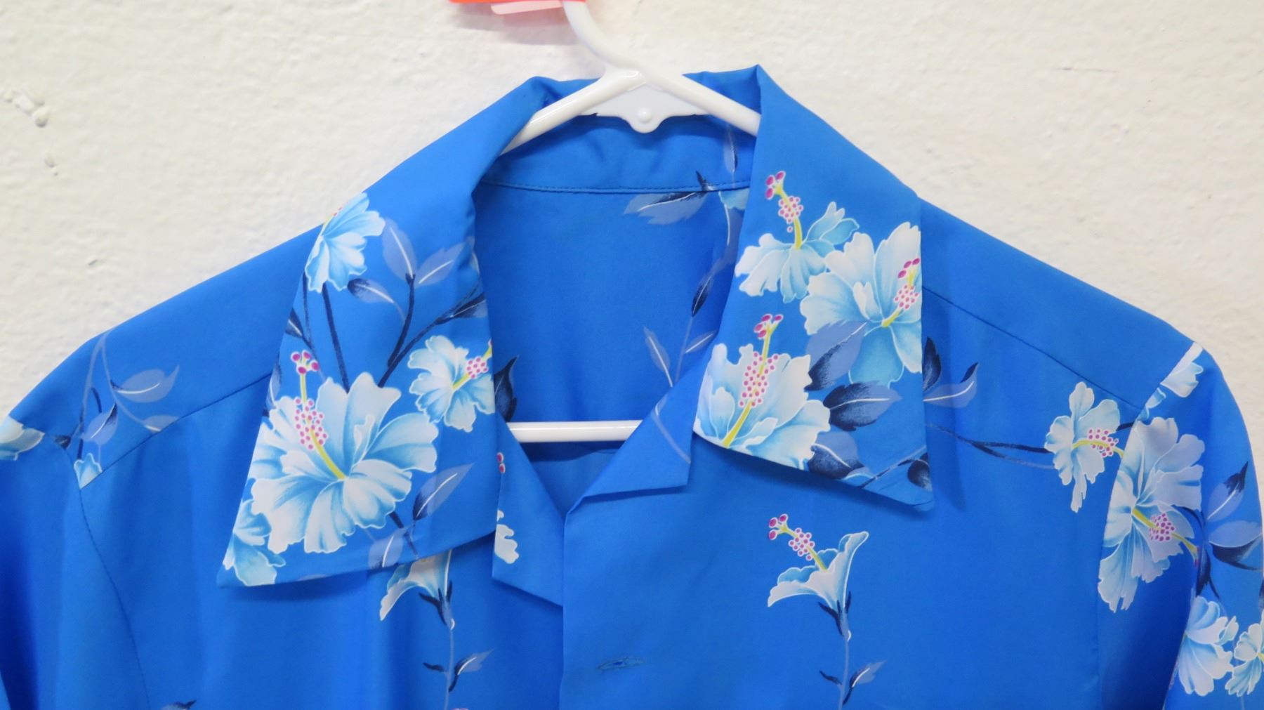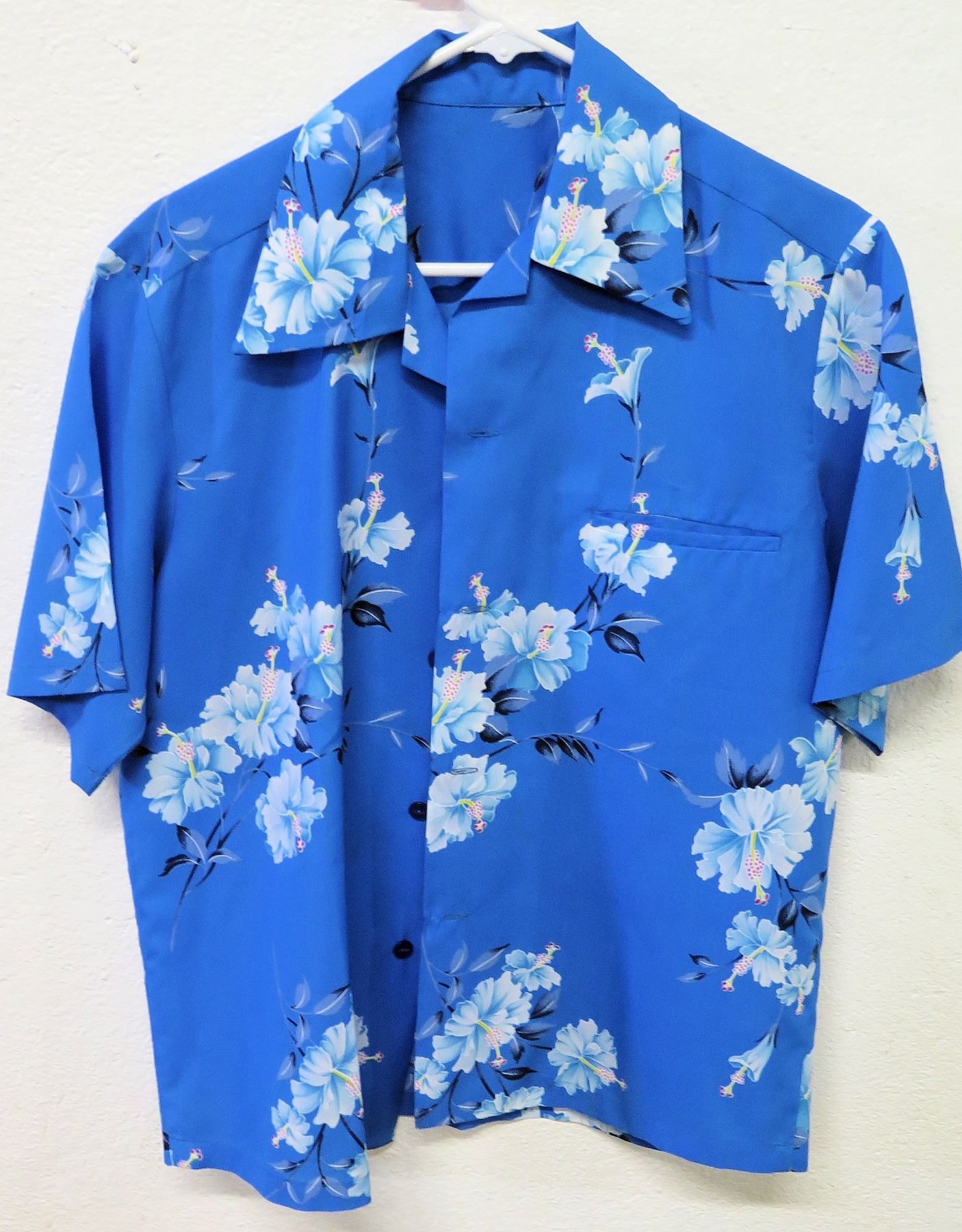 Vintage Aloha Shirt - Blue w/ White Hibiscus Clusters, No Tags, Size Unknown