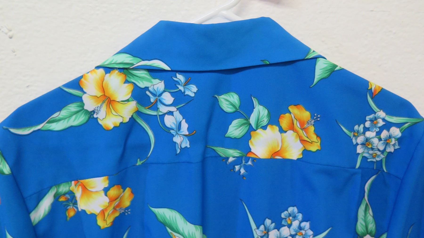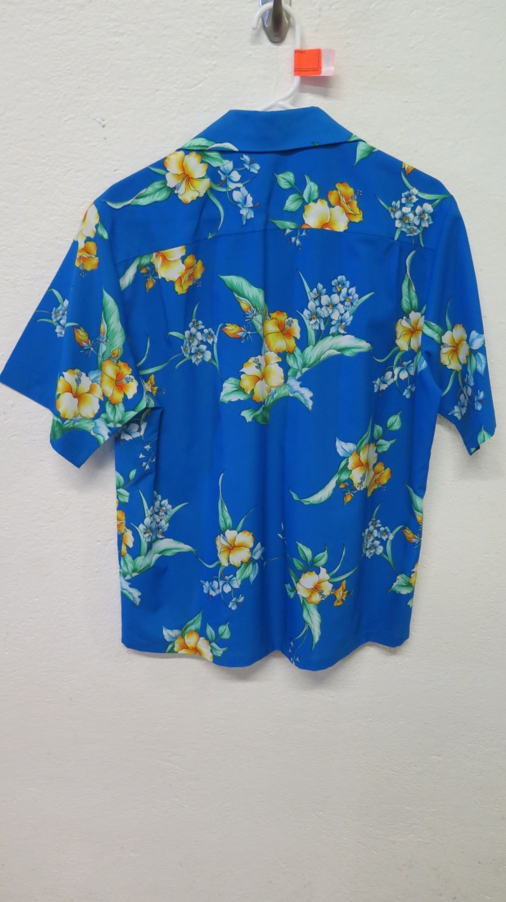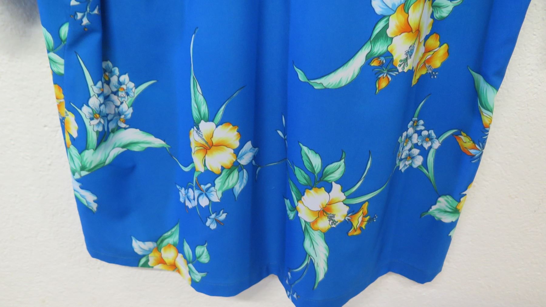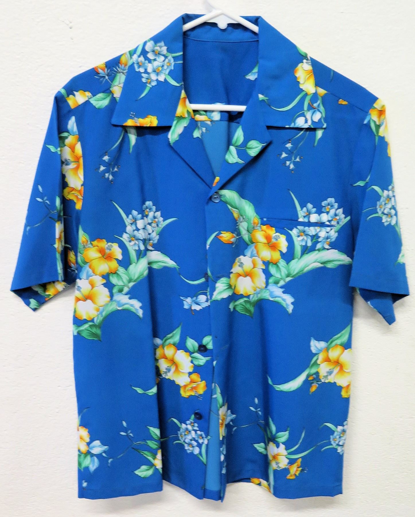 Vintage Aloha Shirt - Blue w/ Yellow Hibiscus, No Tags, Size Unknown