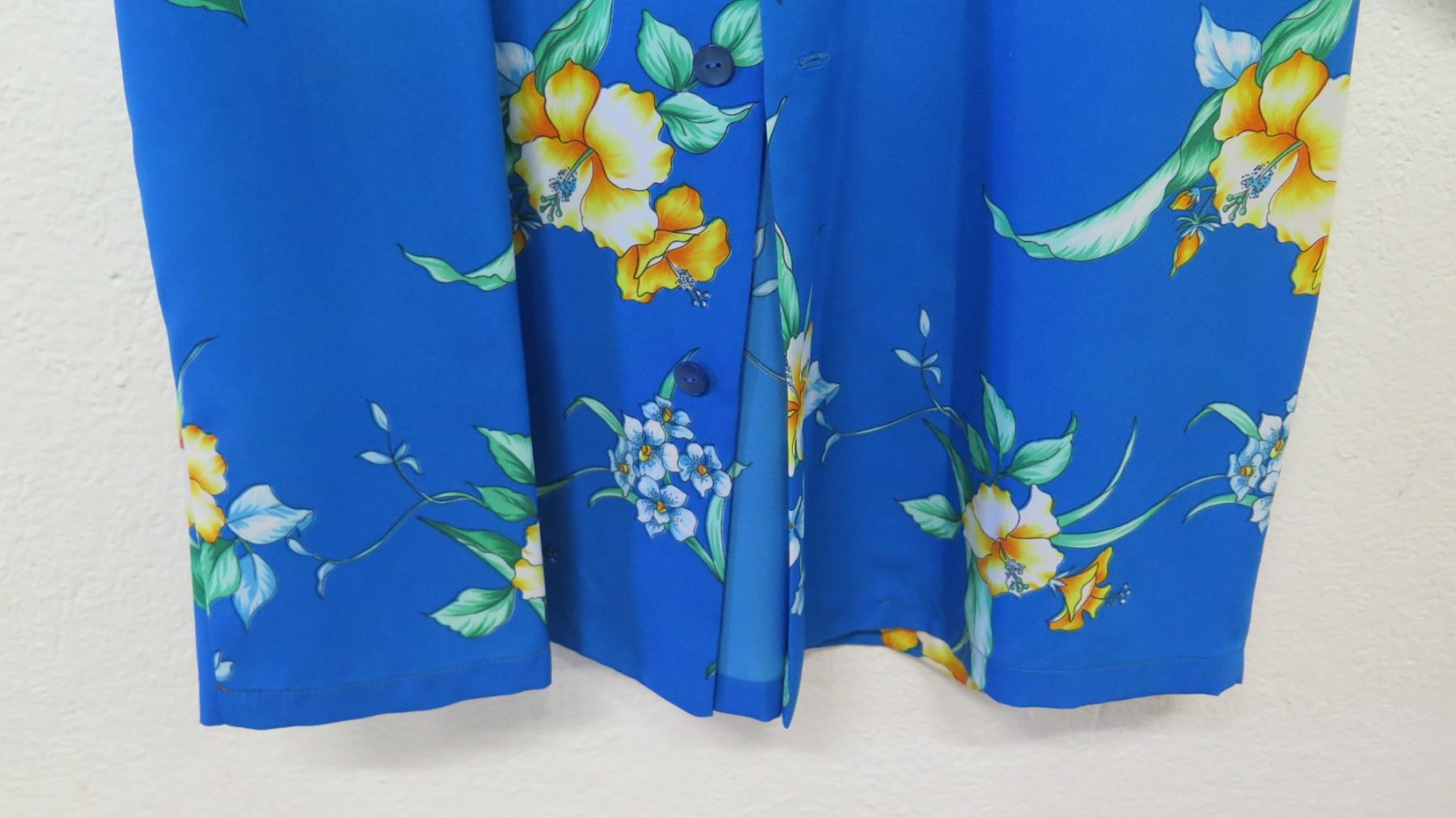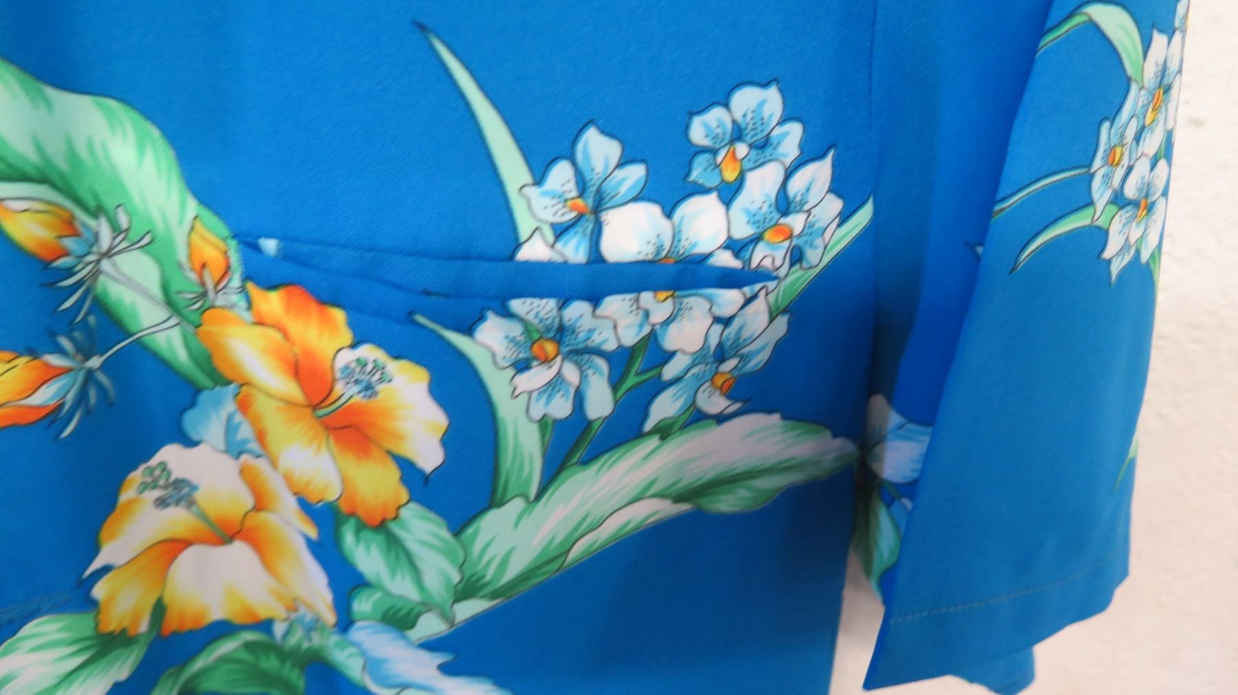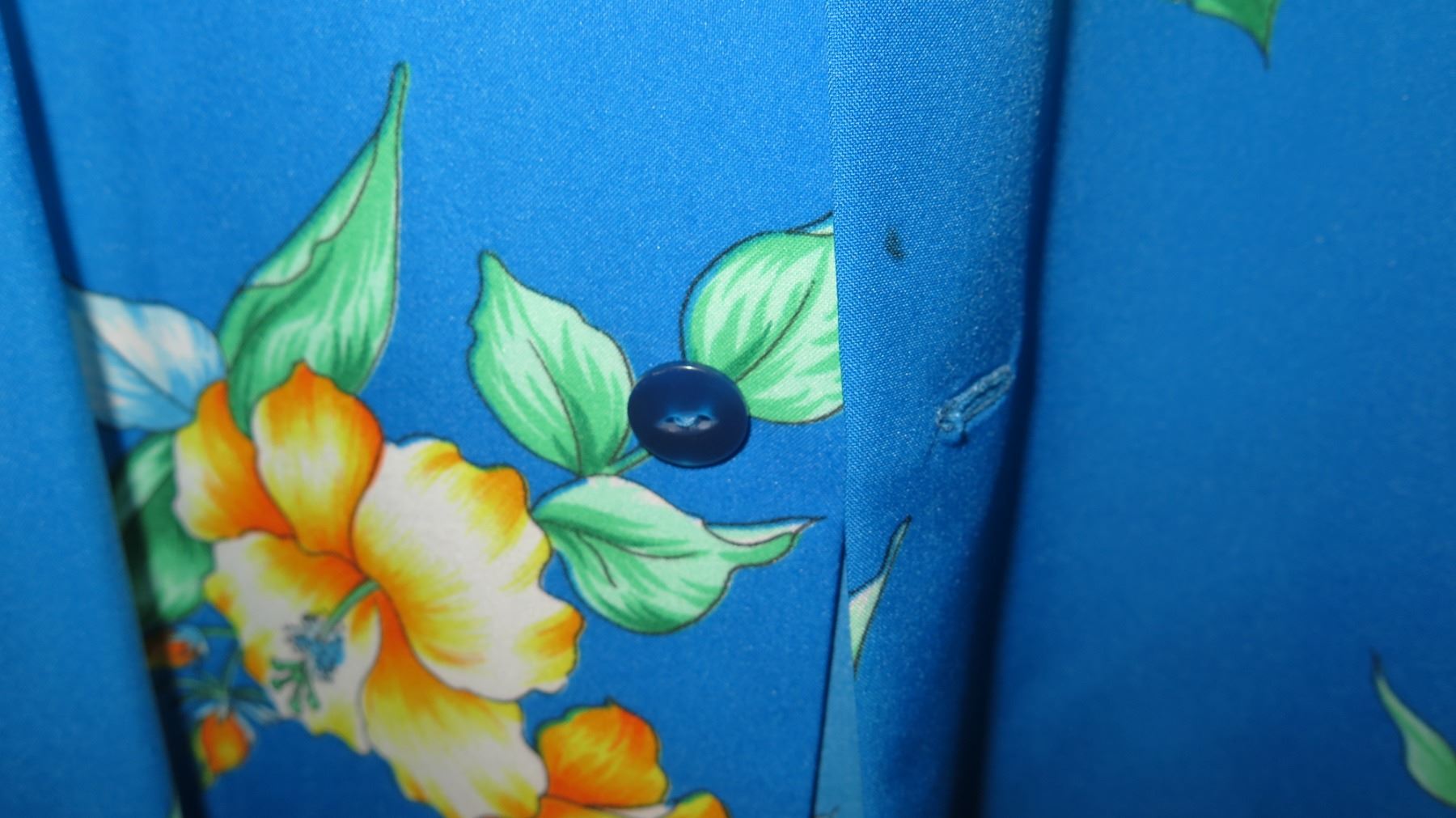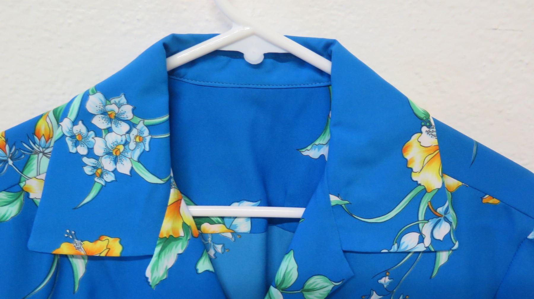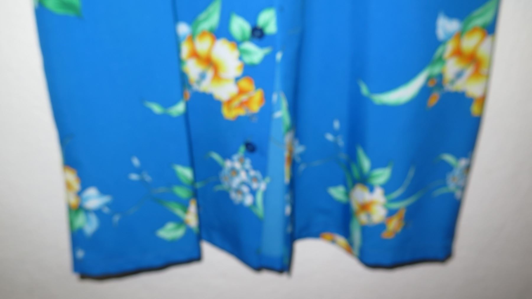 Vintage Aloha Shirt - Blue w/ Yellow Hibiscus, No Tags, Size Unknown