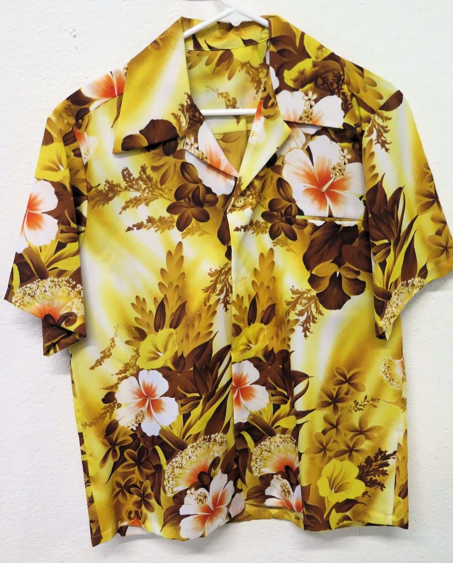 Vintage Aloha Shirt - Brown w/ Pink Hibiscus, No Tags, Size Unknown