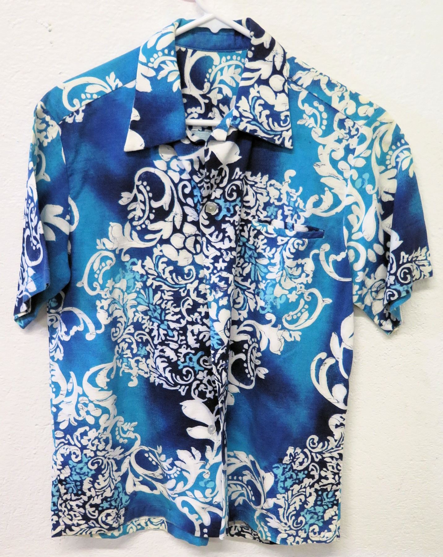 Vintage Aloha Shirt - G.V.H. Hawaii Print, Blue White, No Tags, Size Unknown