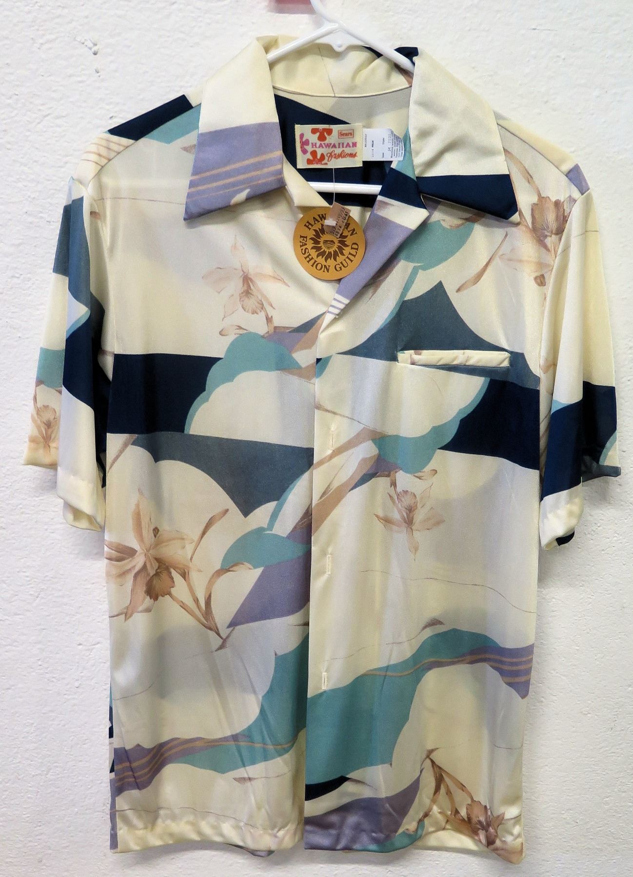 Vintage Aloha Shirt - Hawaiian Fashions, Ivory w/Orchids, Sz M