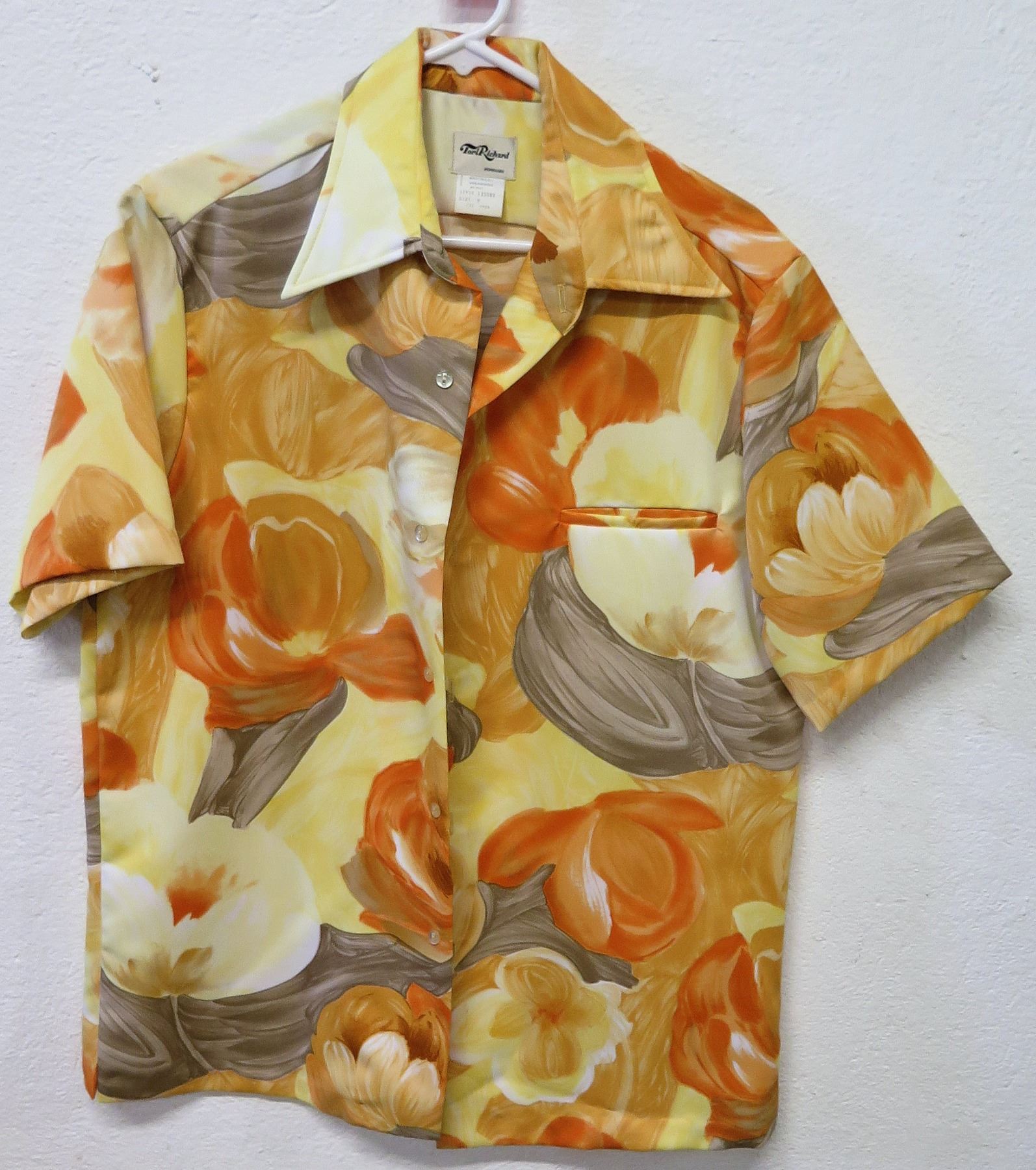 Vintage Aloha Shirt - Tori Richard Honolulu, Tan/Red Floral, Sz M