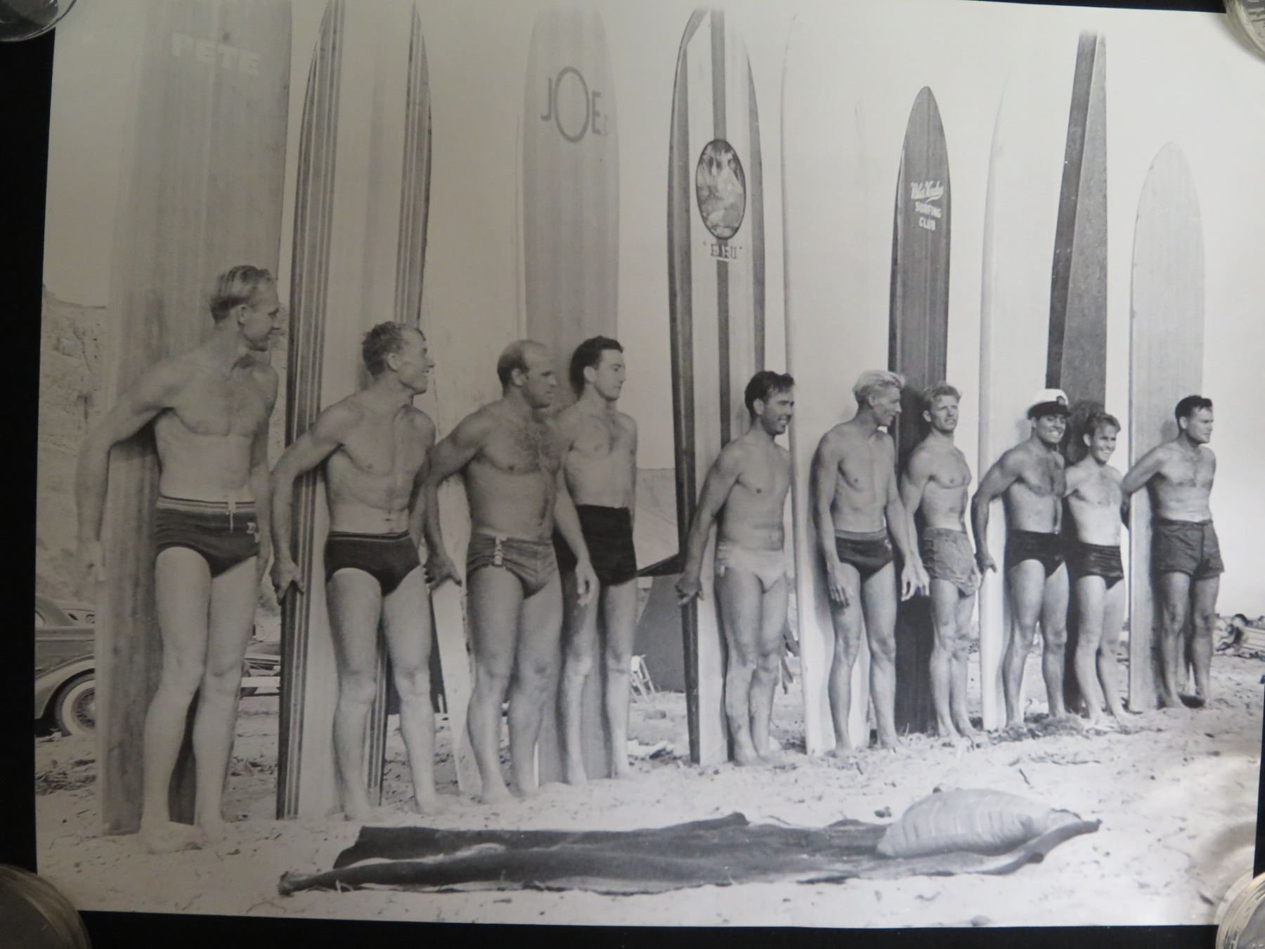 Vintage Black & White 10 Surfers Photo Artwork 17"x13"