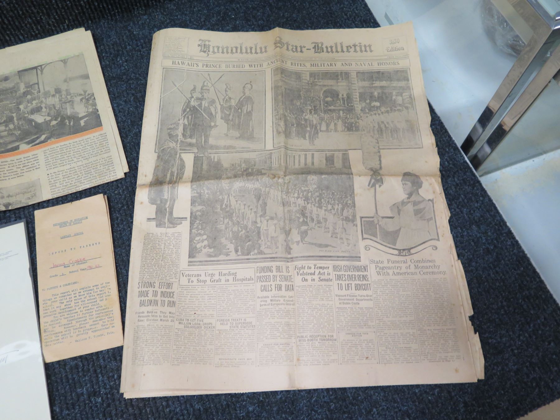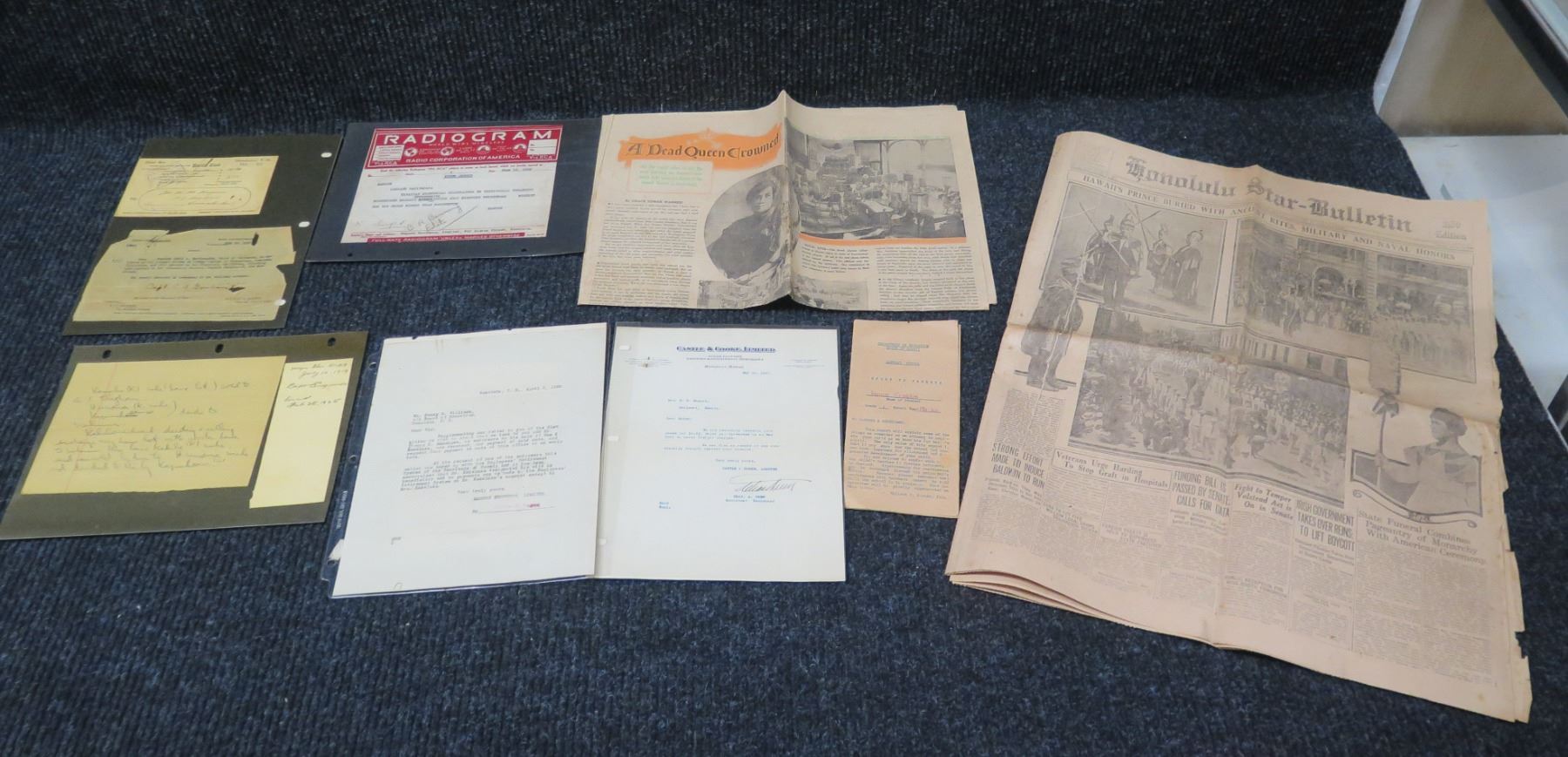 Vintage Documents: Honolulu Star Bulletin 1922, Radiogram 1925, Pacific Club Card 1927, etc