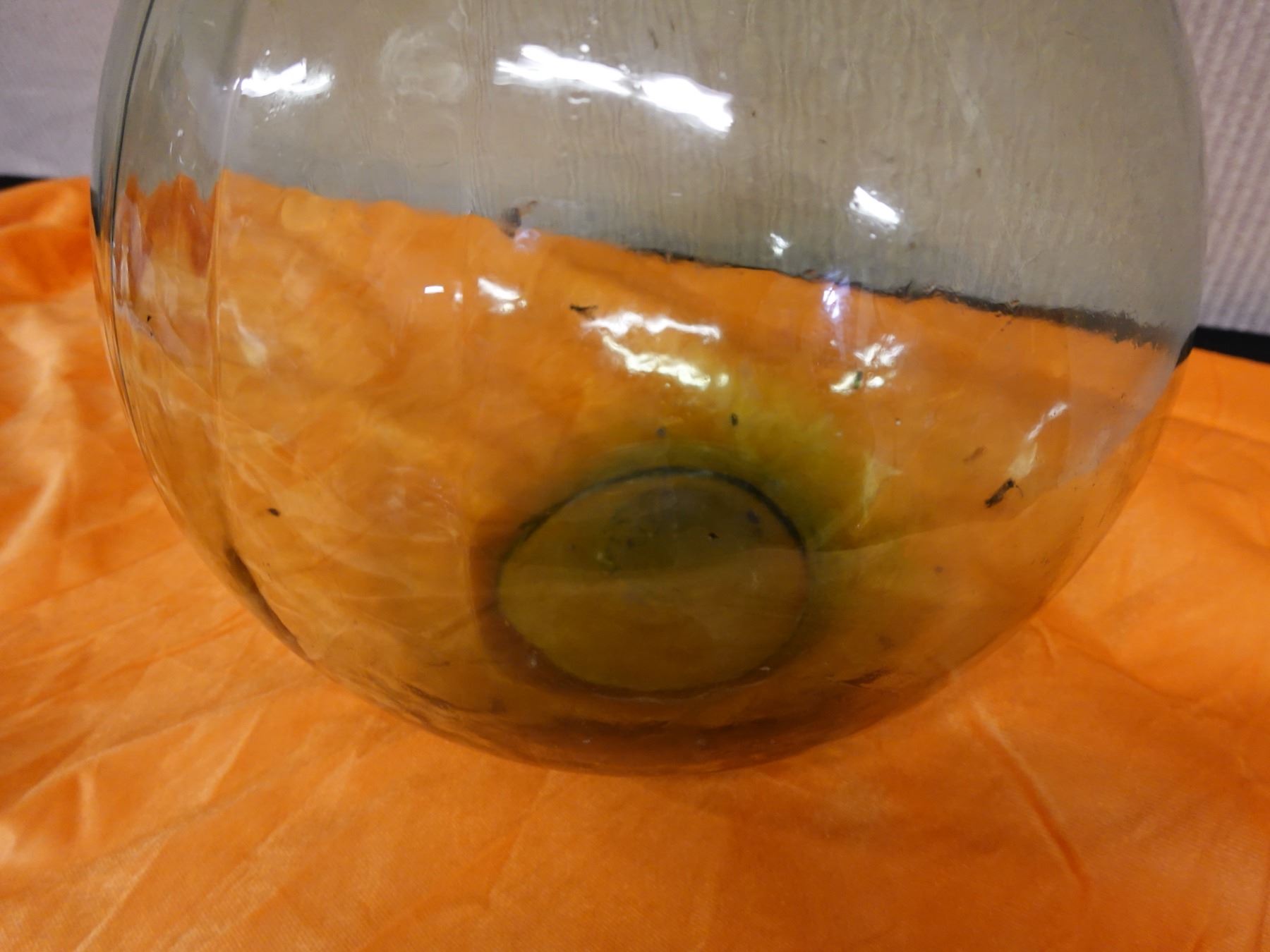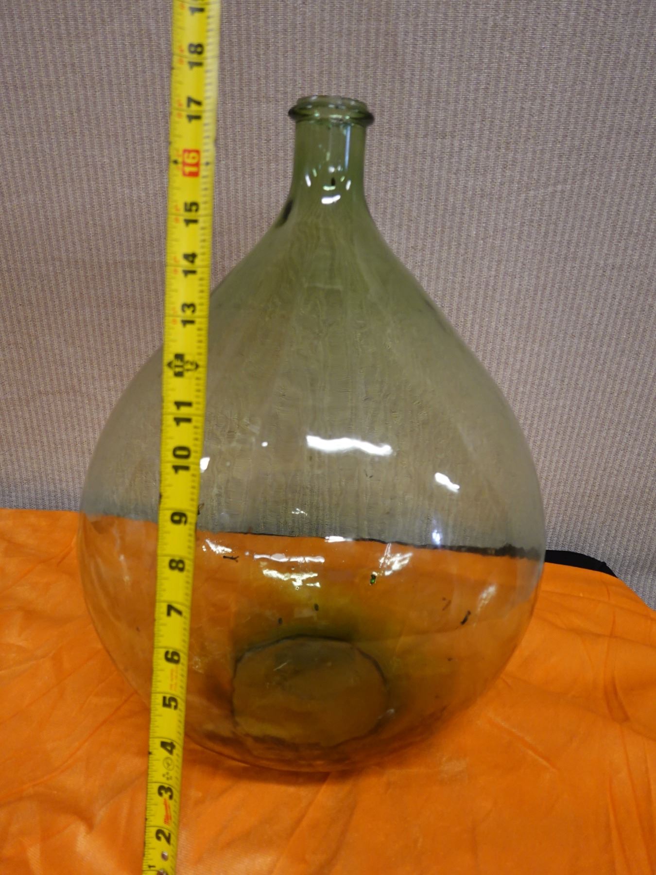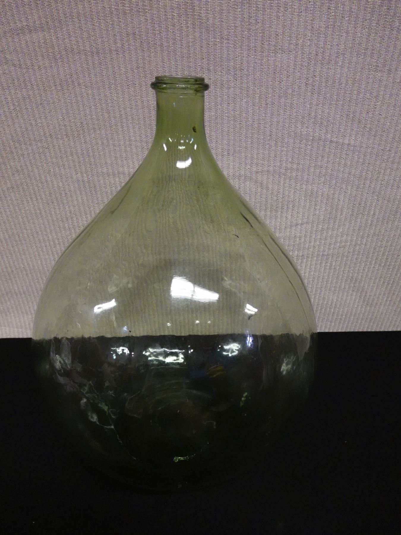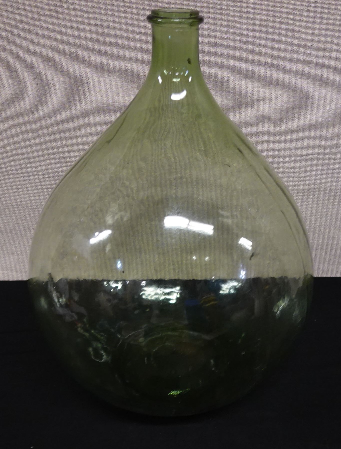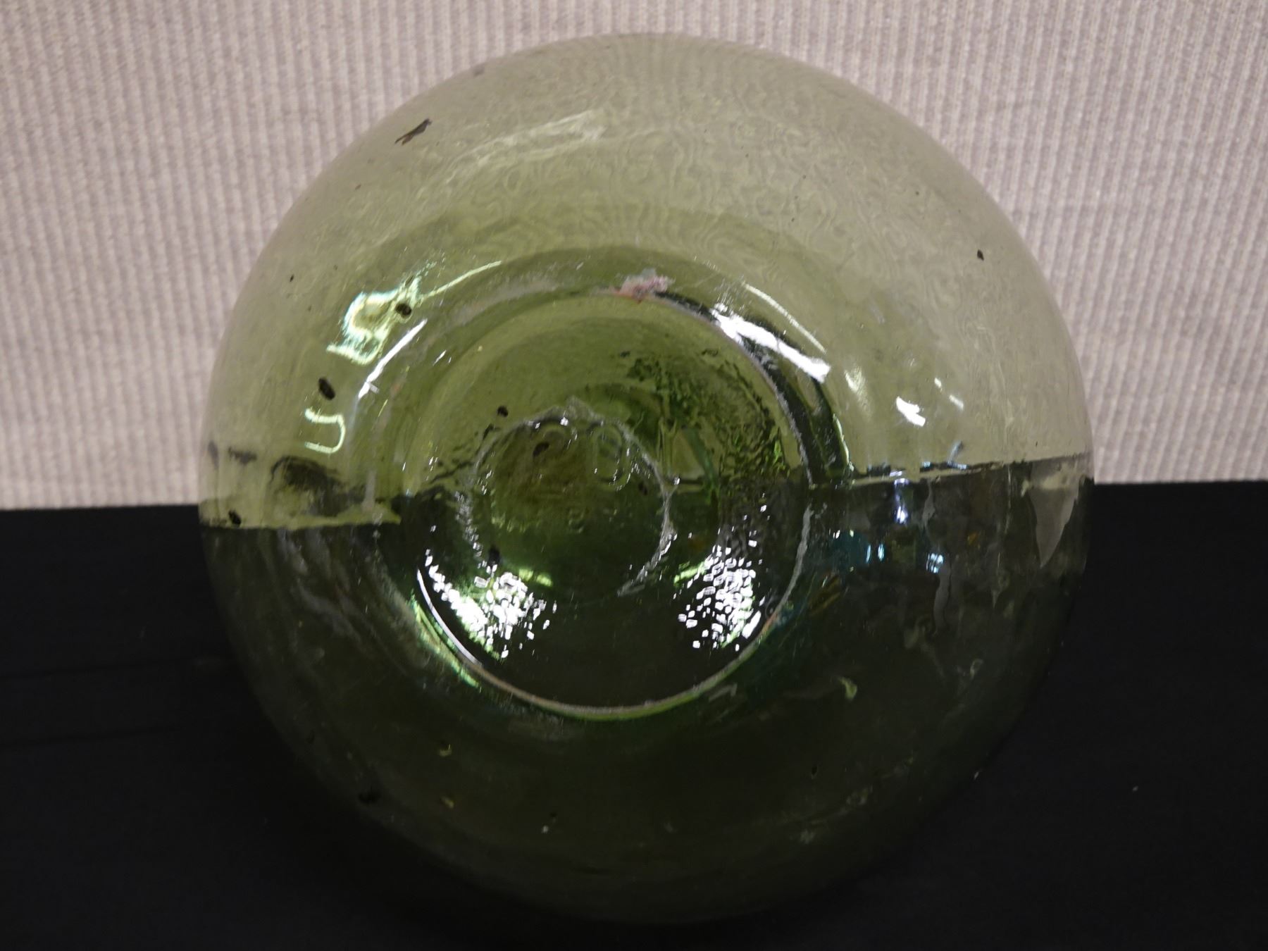 Vintage Green Blown Glass Bottle Marked 20, 11" Dia, 17"H