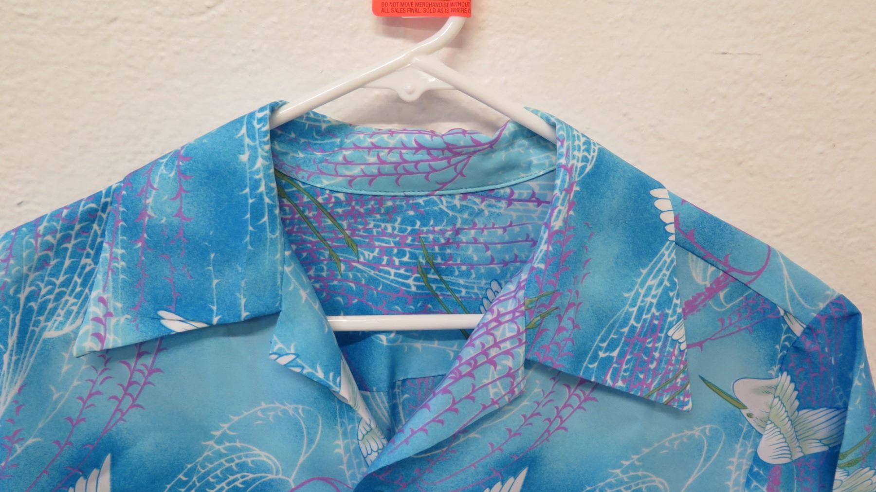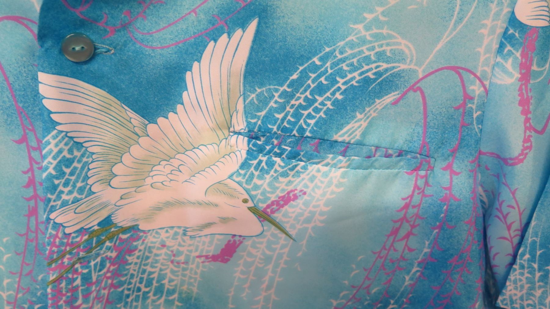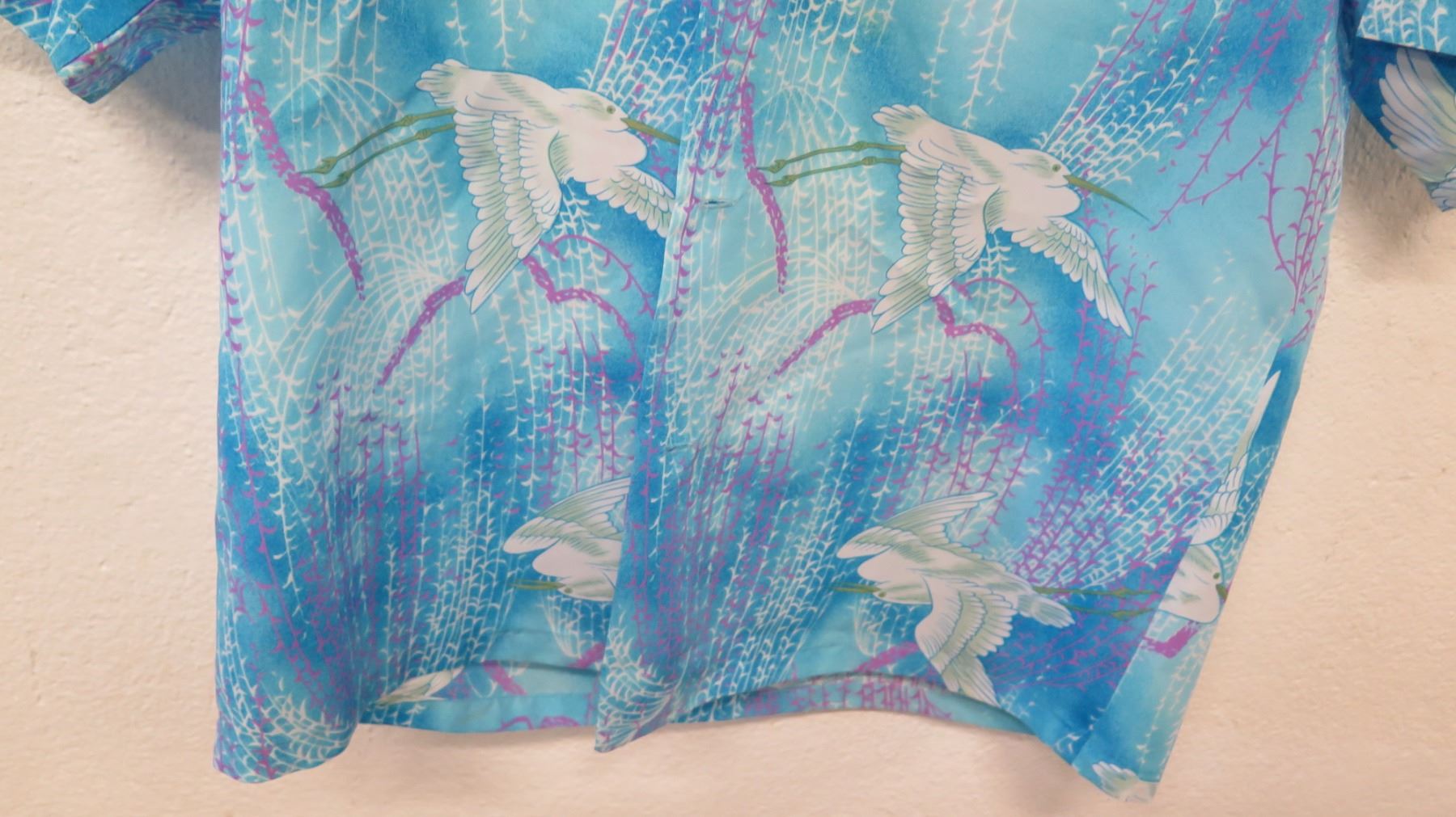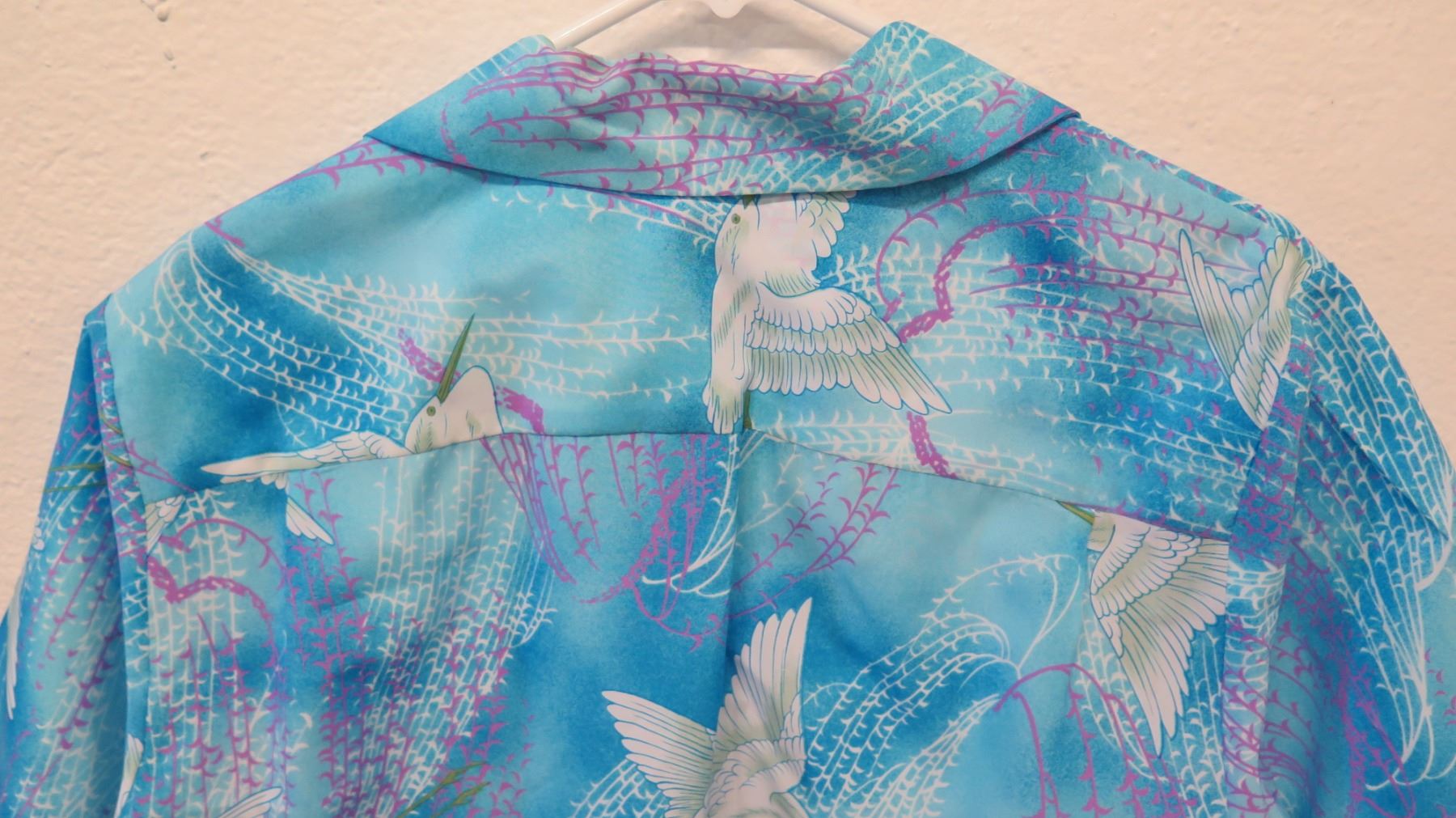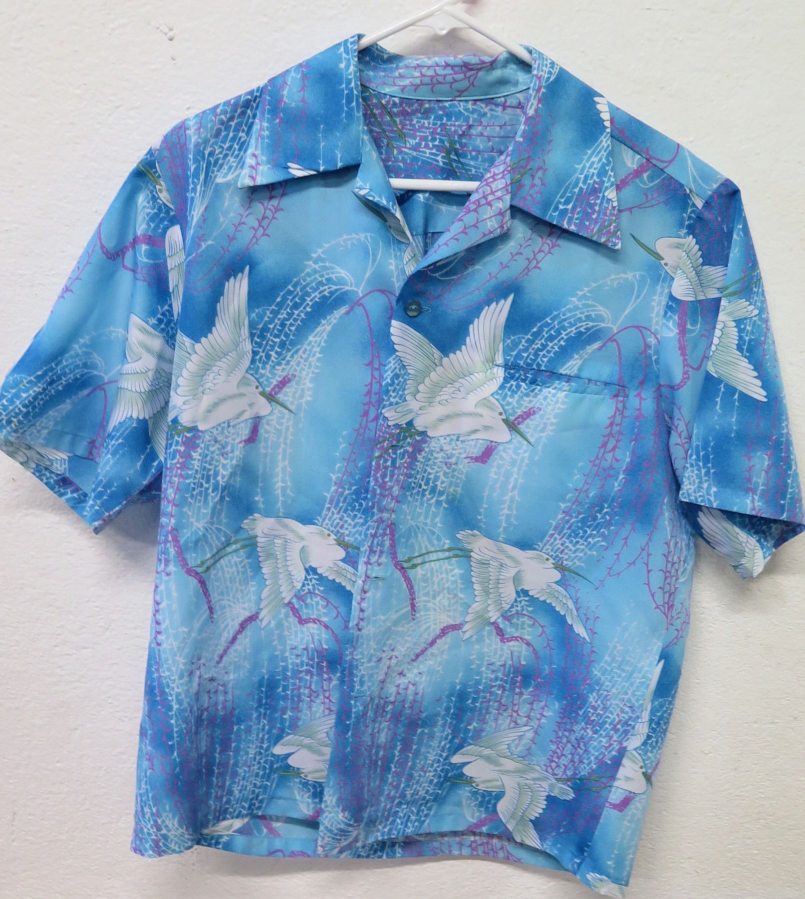 Vintage Hawaii Blue Tones & White Cranes, No Tags, Size Unknown