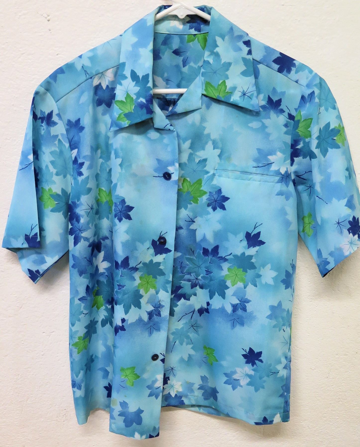 Vintage Hawaii Blue Tones w/ Green Floral Print, No Tags, Size Unknown