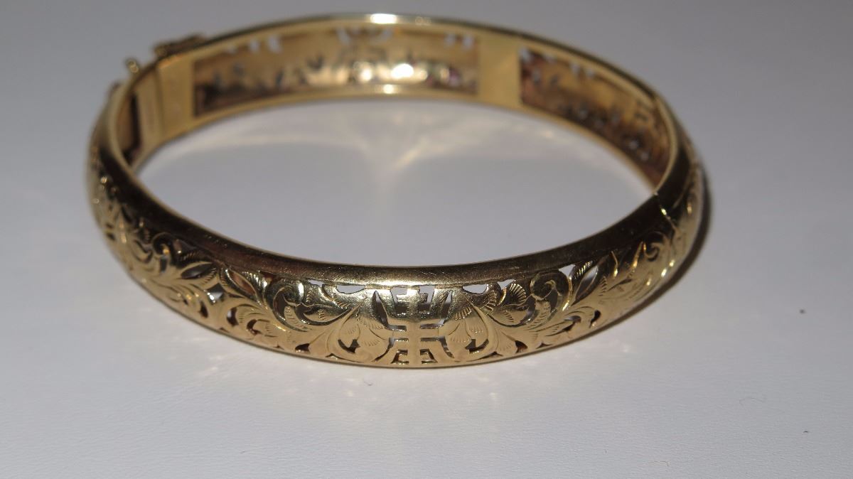 Vintage Heirloom 14K Ming's Bangle Bracelet