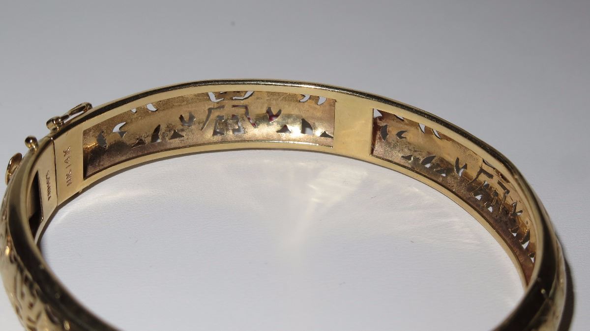 Vintage Heirloom 14K Ming's Bangle Bracelet, 18 grams