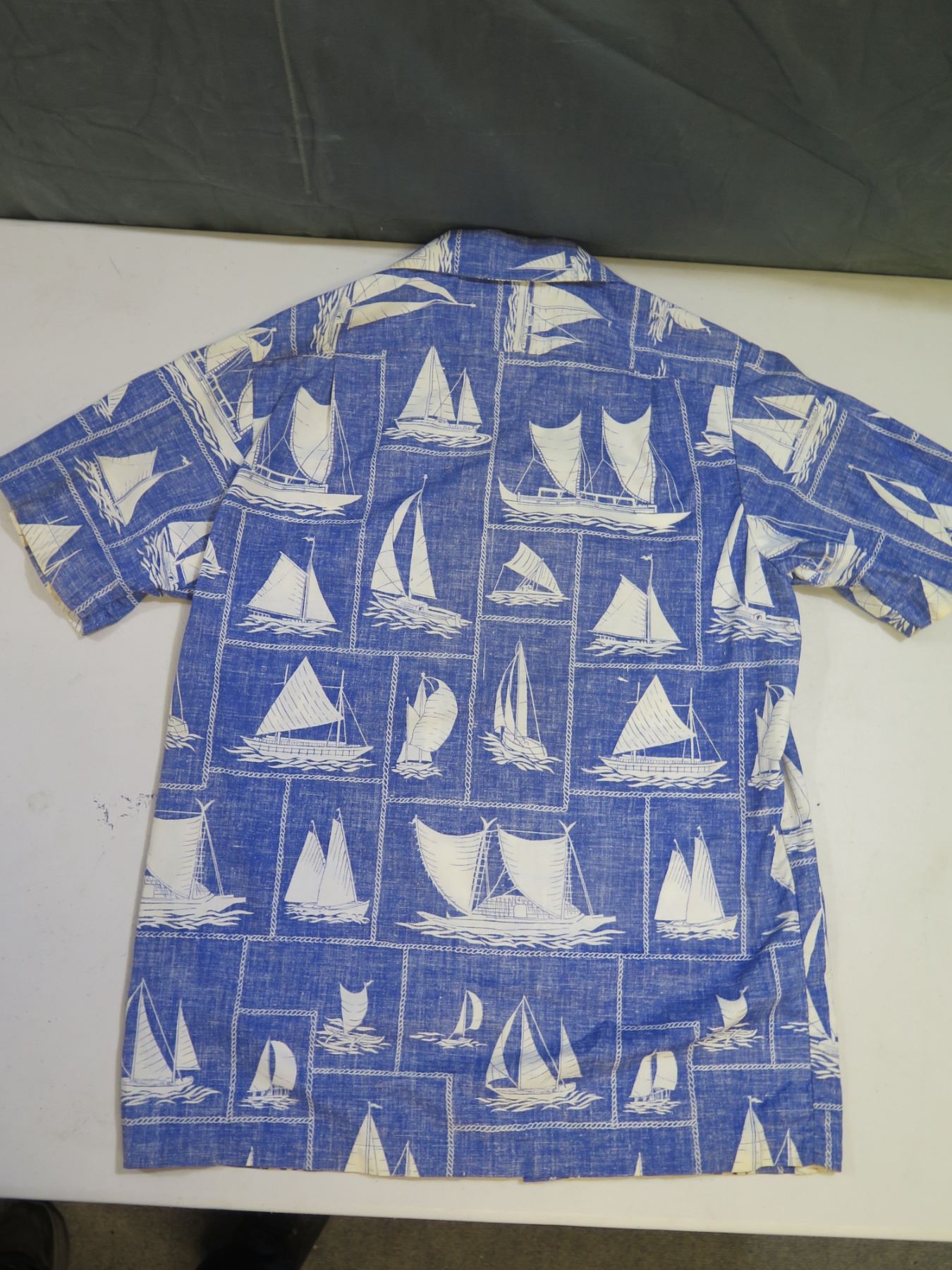 Vintage JAR Hawaii Blue Sailboat Theme Aloha Shirt