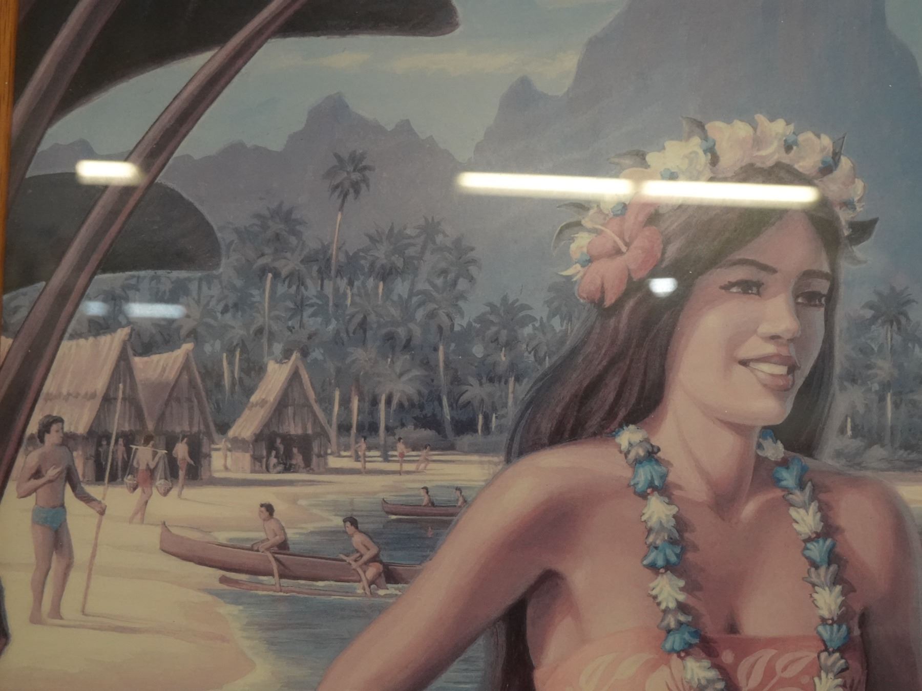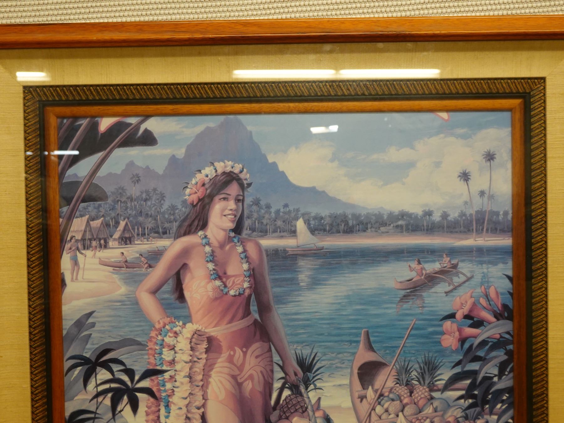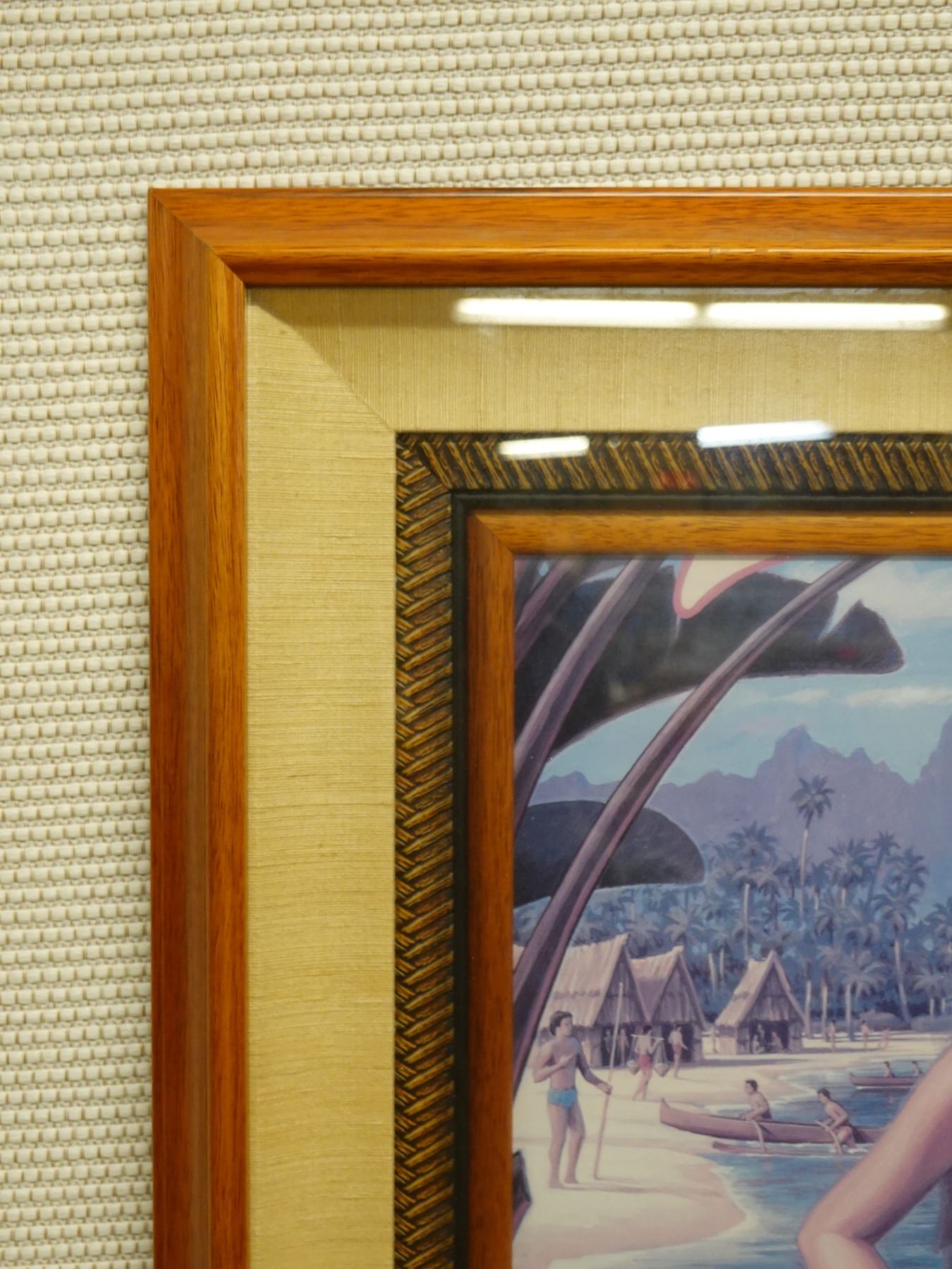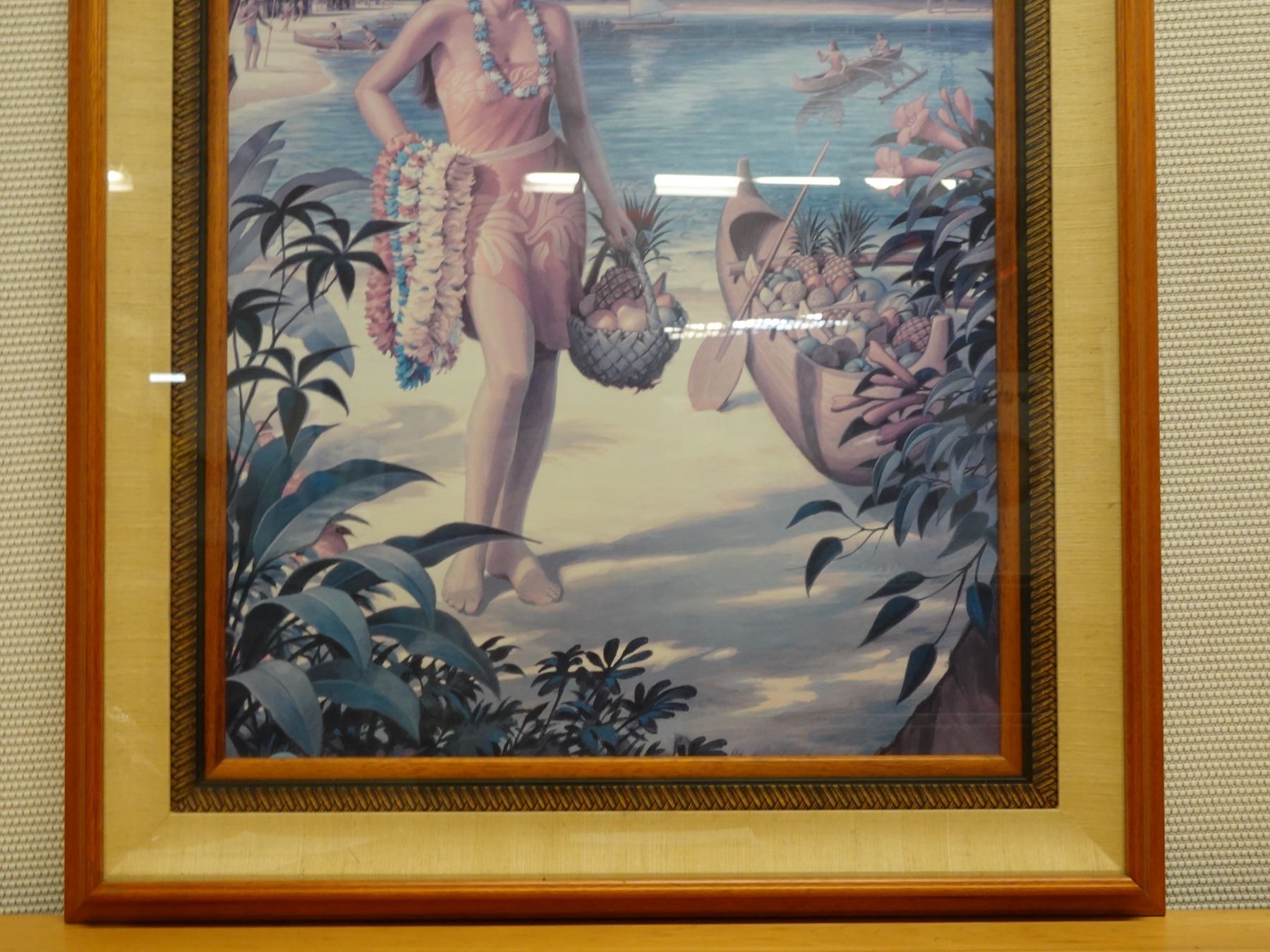 Vintage Lei Girl Poster, Koa Framed & Double Matted 32" x 39"