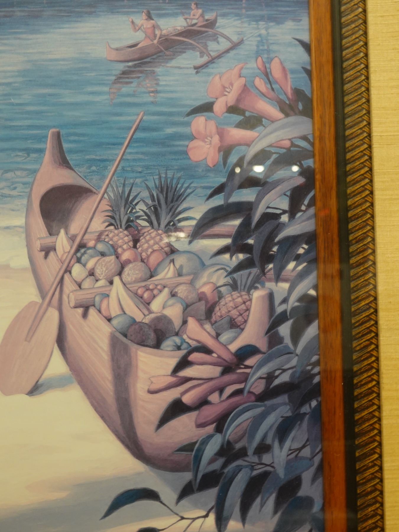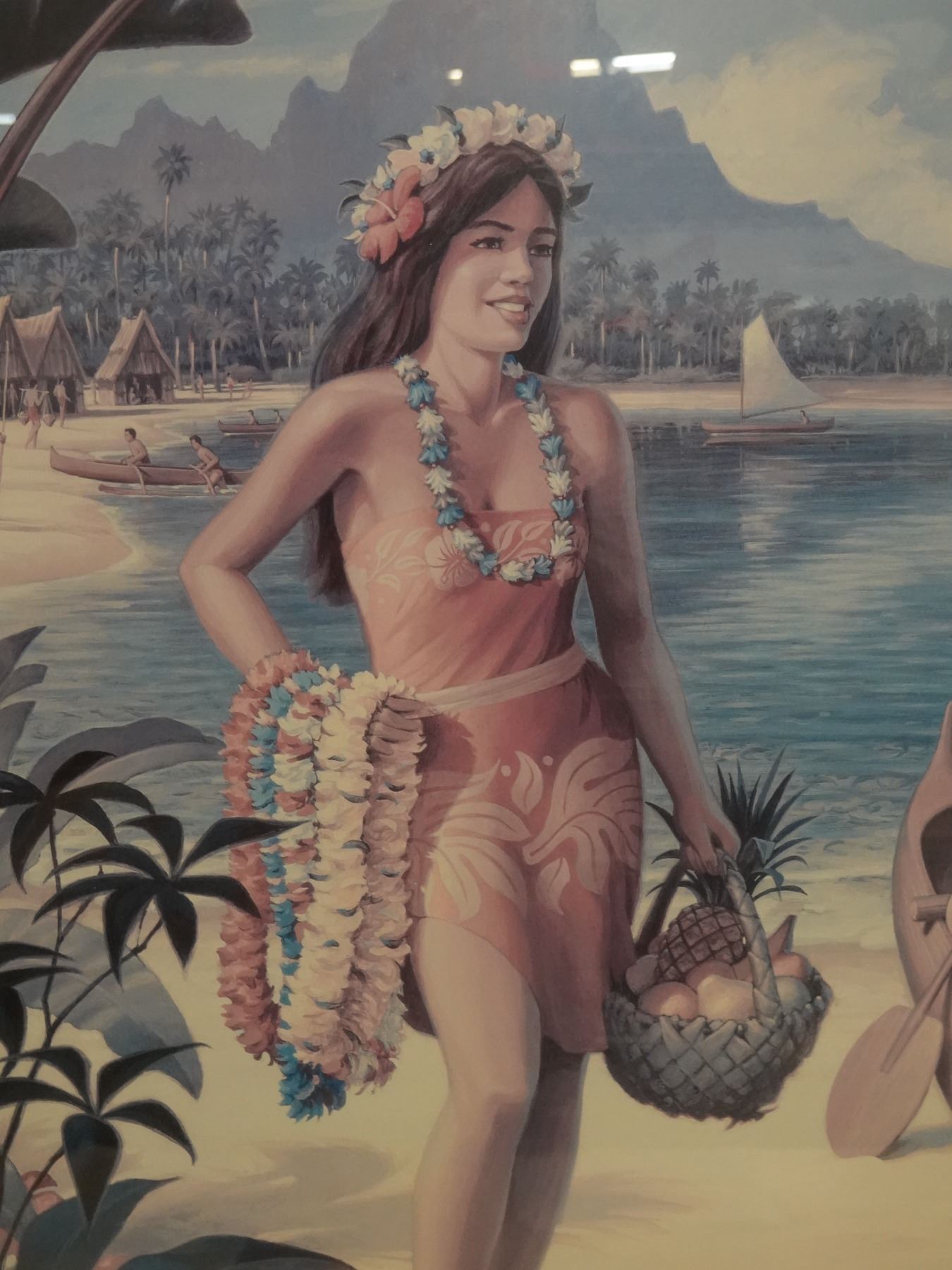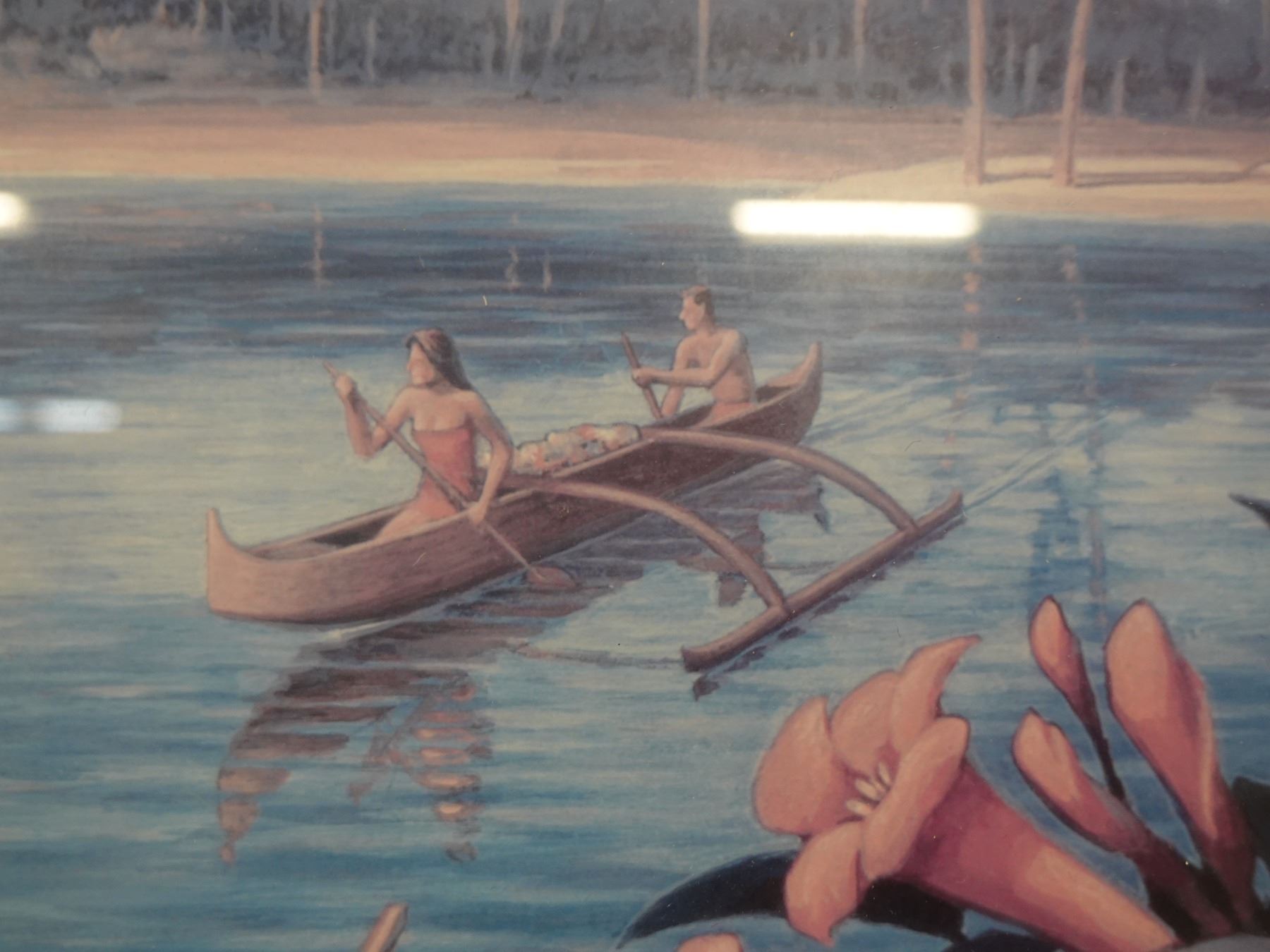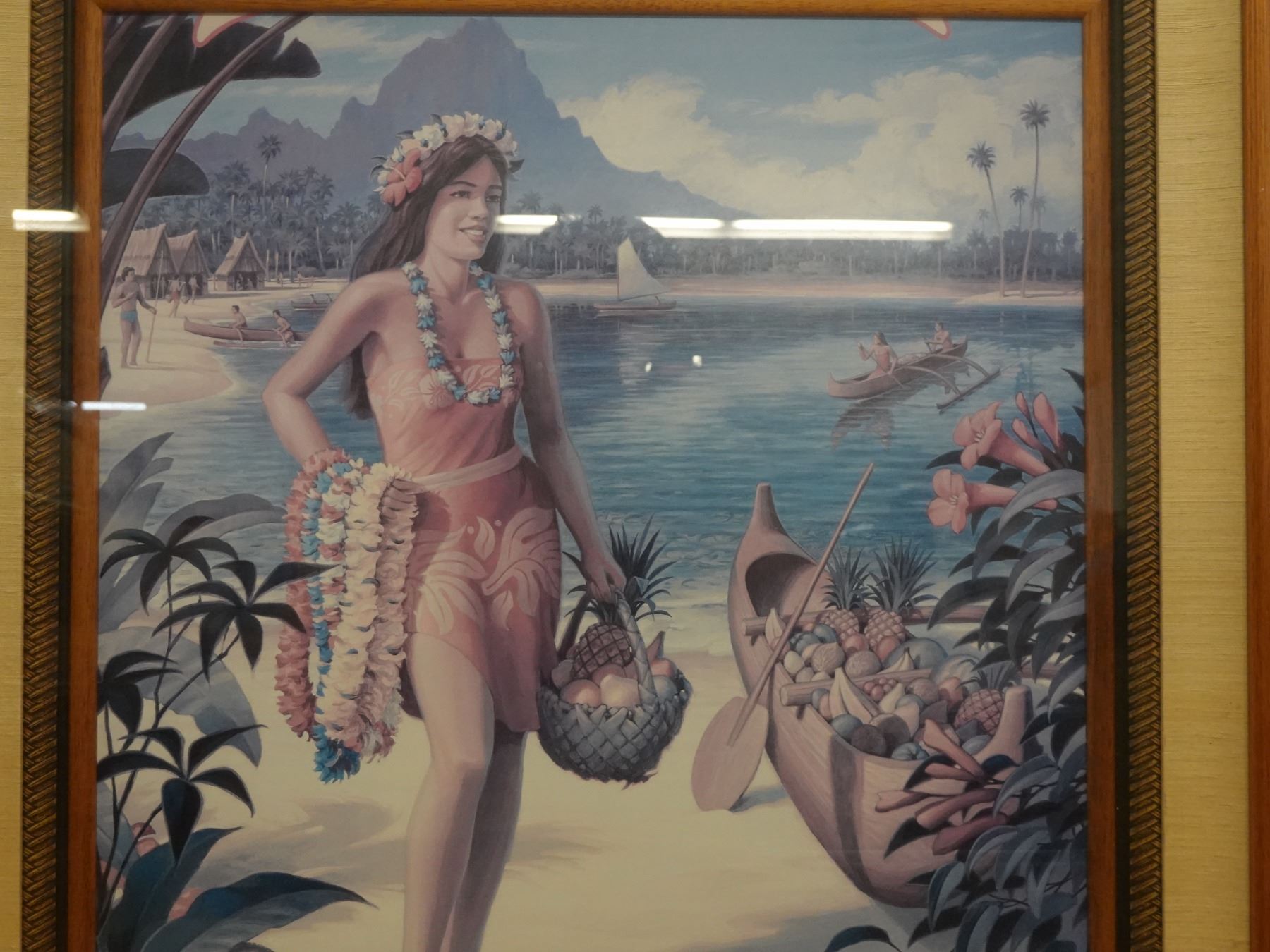 Vintage Lei Girl Poster, Koa Framed & Double Matted 32" x 39"
