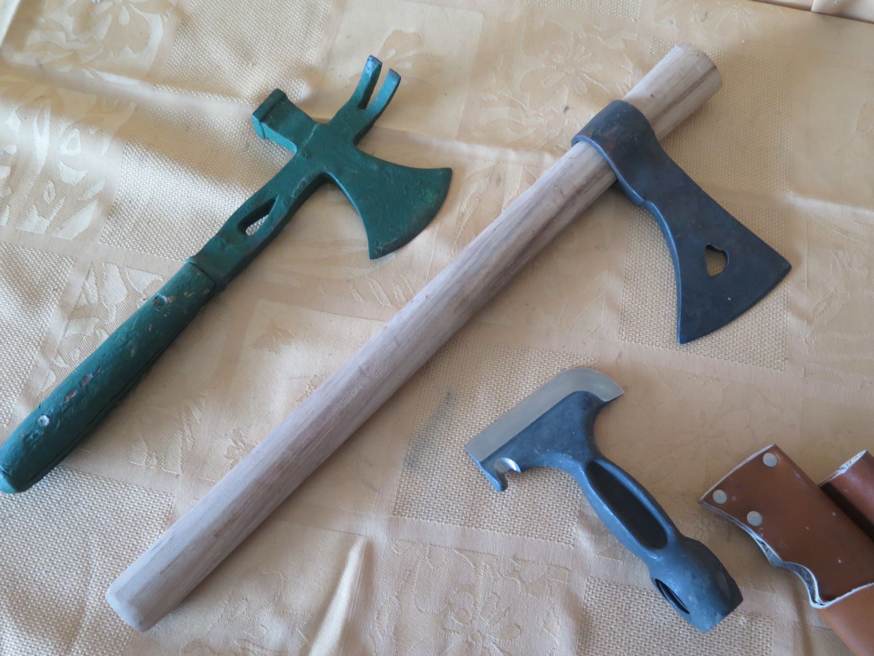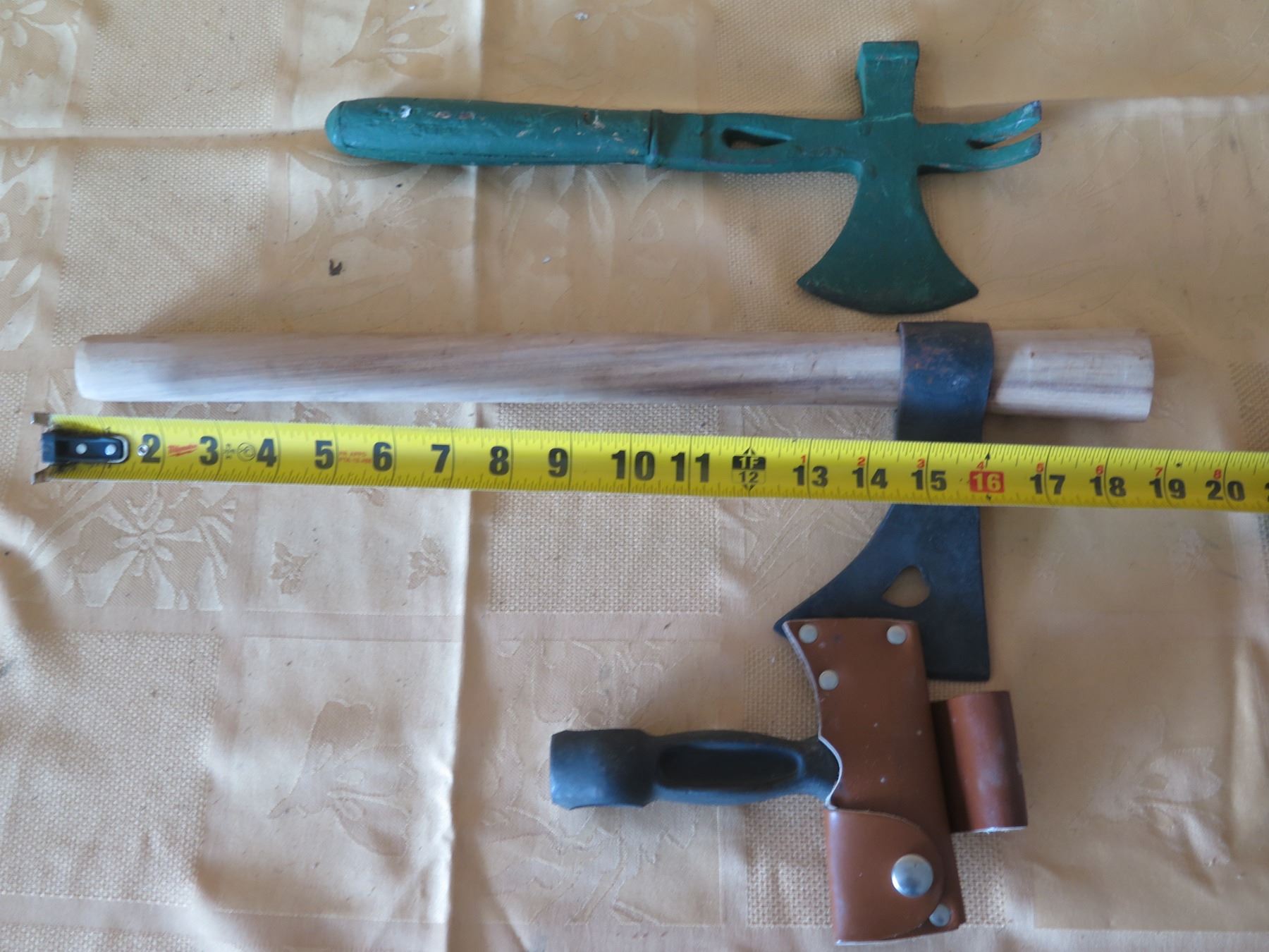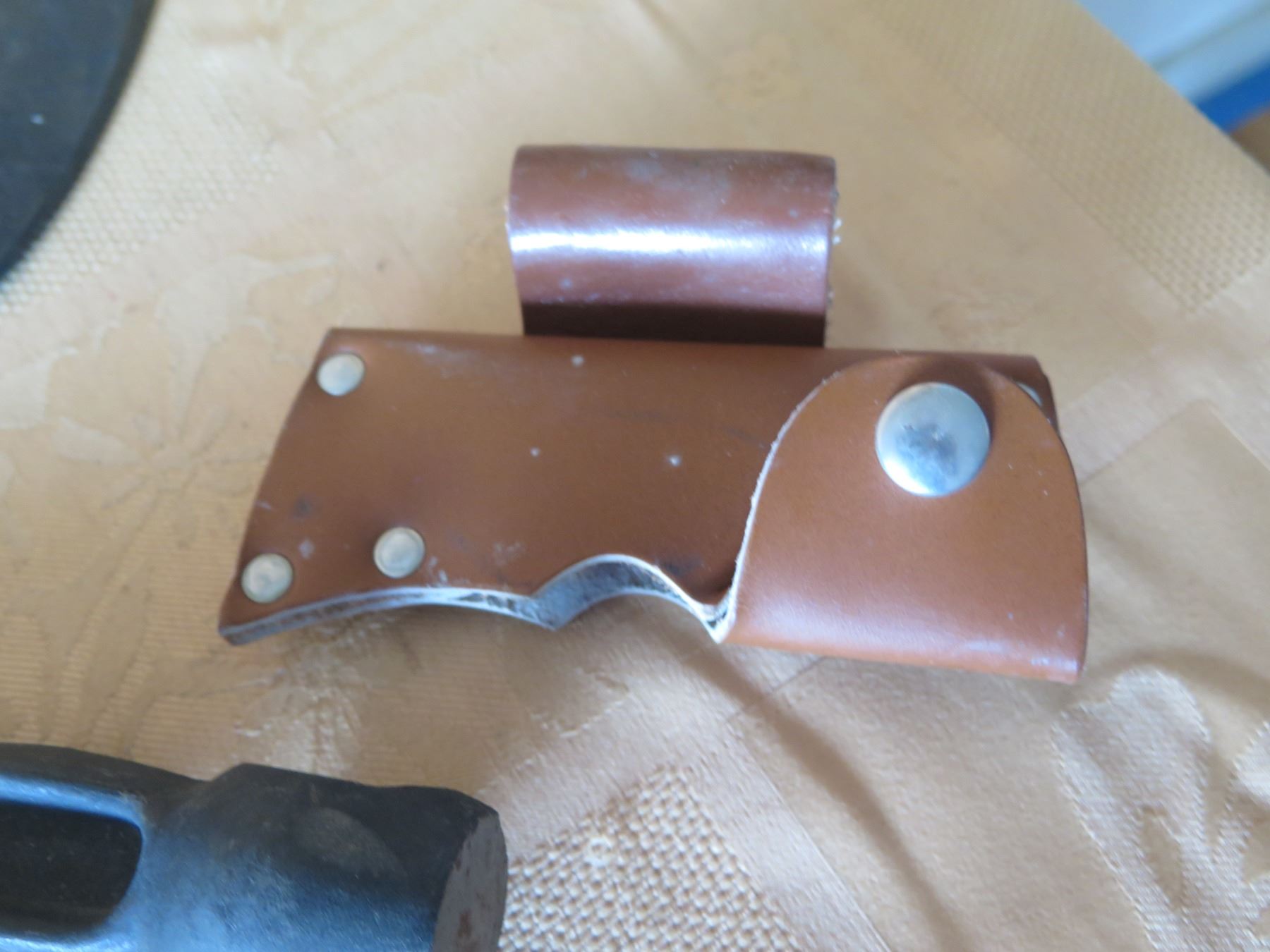 Vintage Metal Tomahawk w/ Nail Puller, Axe w/ Wood Handle 19"L & Blade w/ Sheath