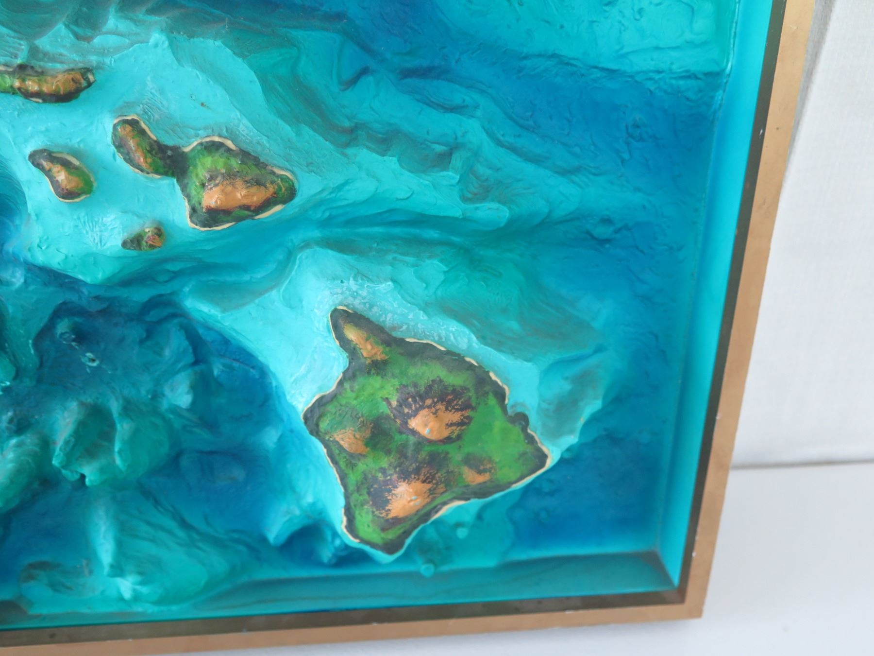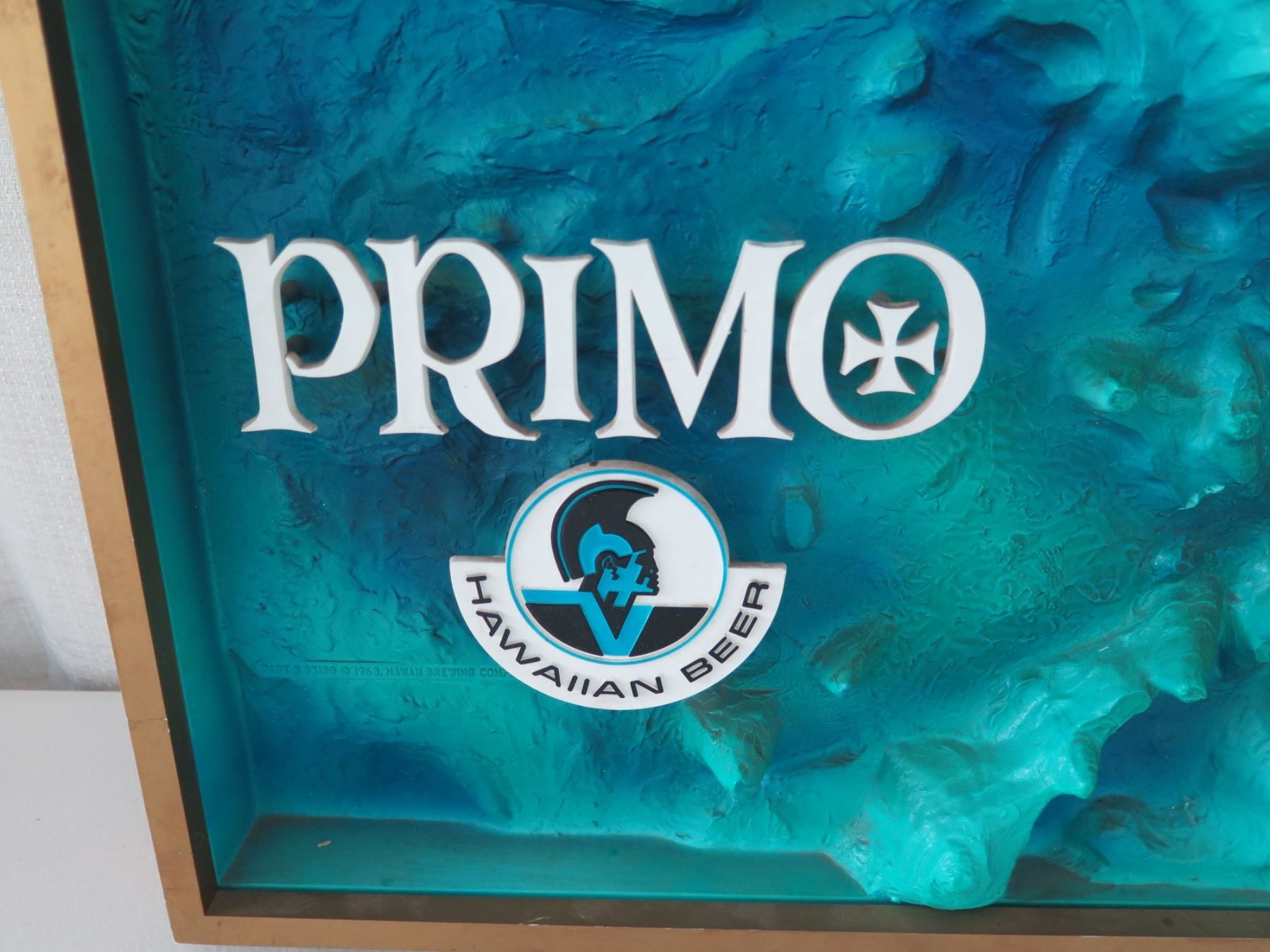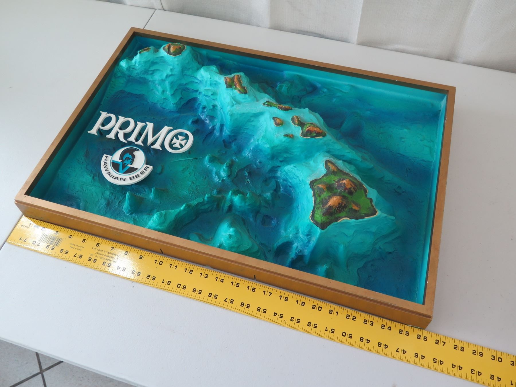 Vintage Primo Beer Framed Display, Raised Hawaiian Islands, 17"x26" (Minor Damage - one crack and one small hole)