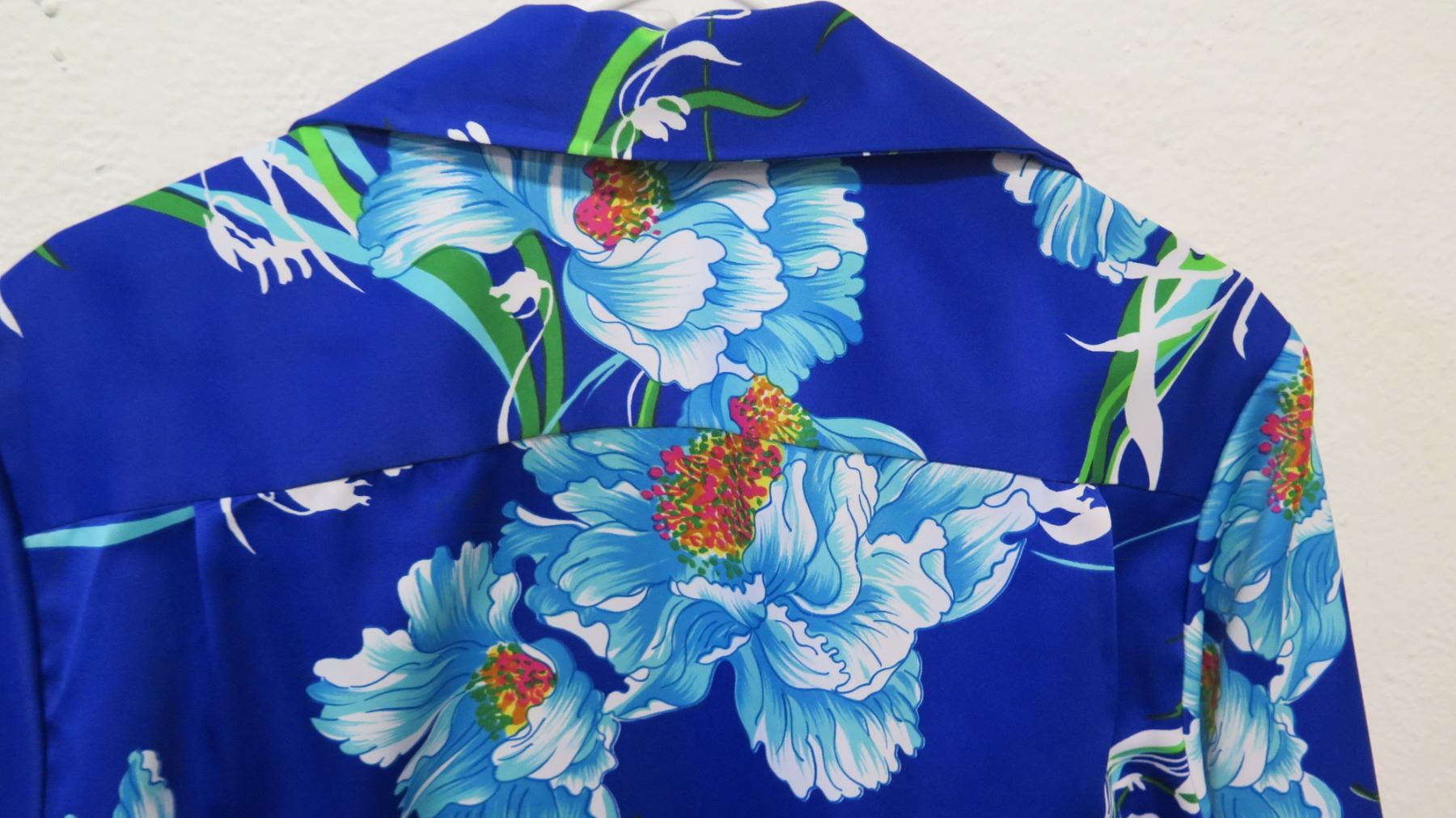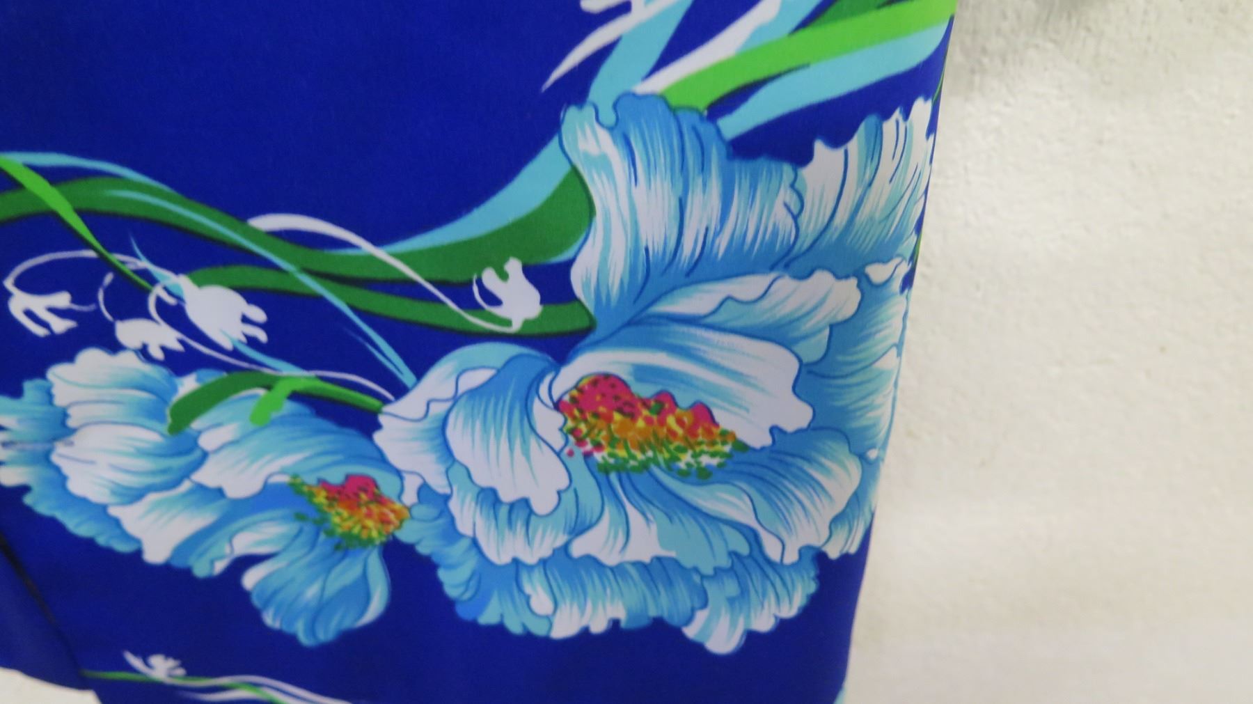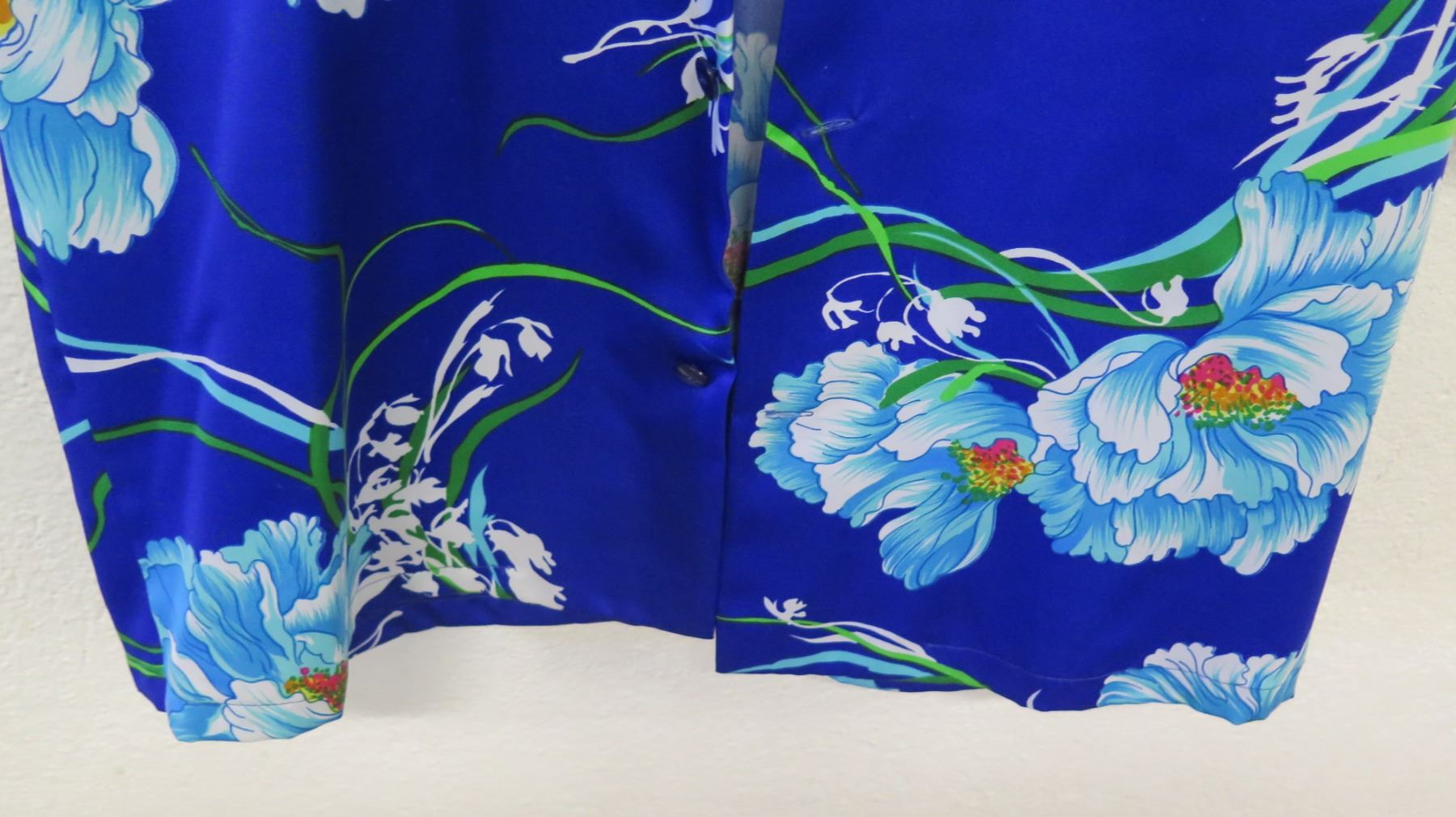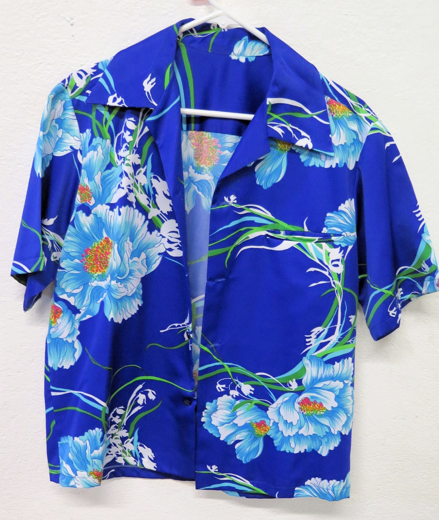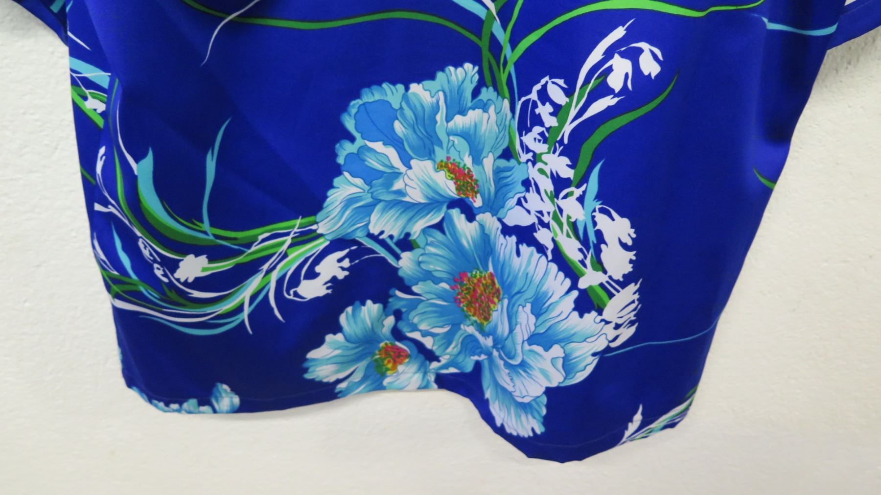 Vintage Shirt - Cobalt Blue Asian Inspired Floral Print, No Tags, Size Unknown