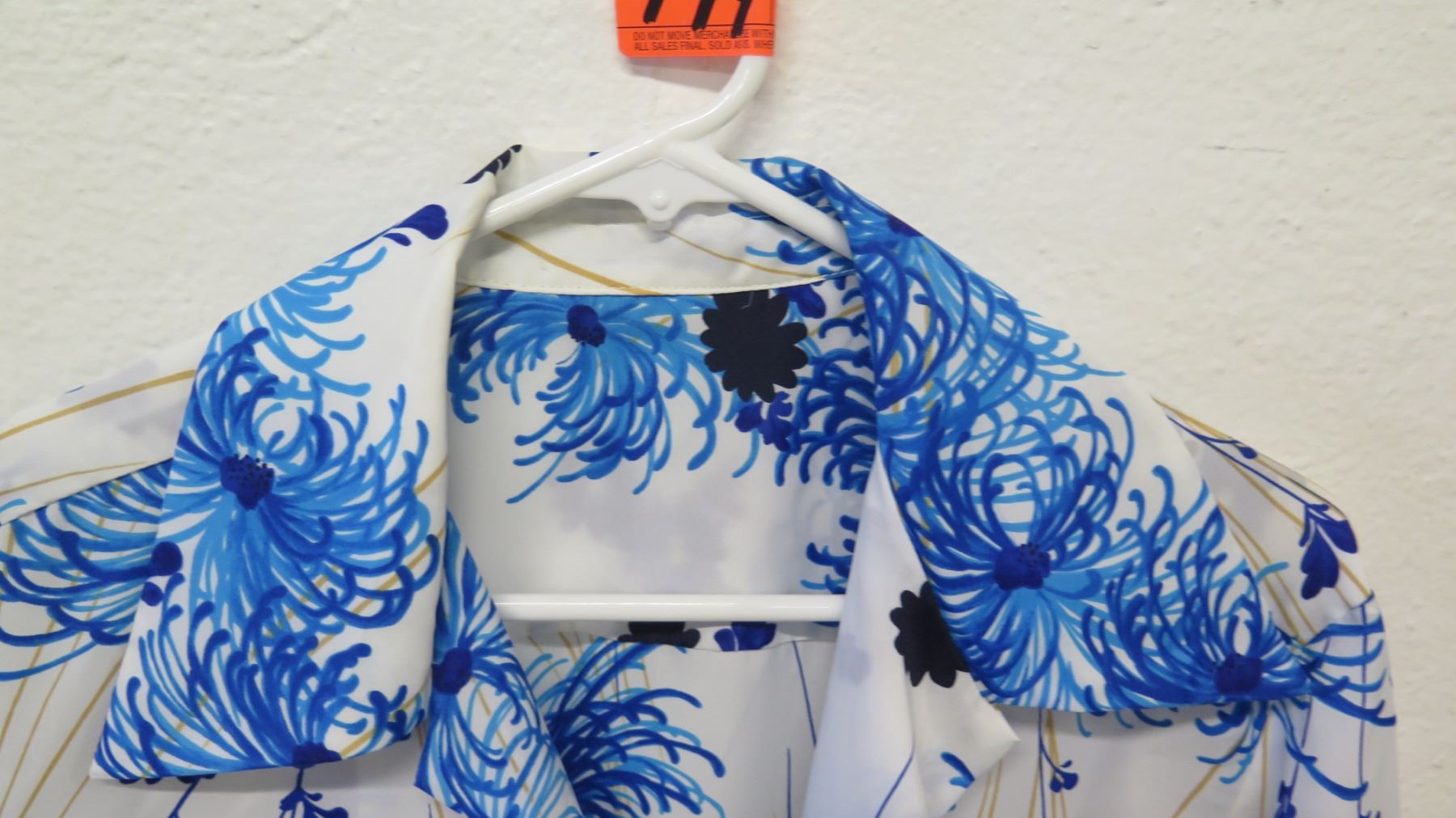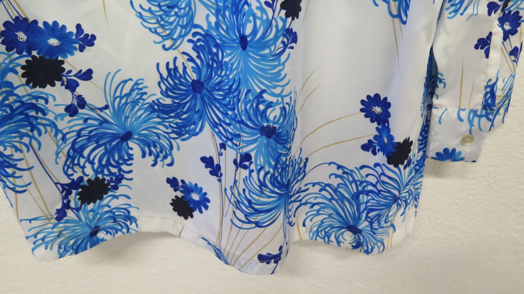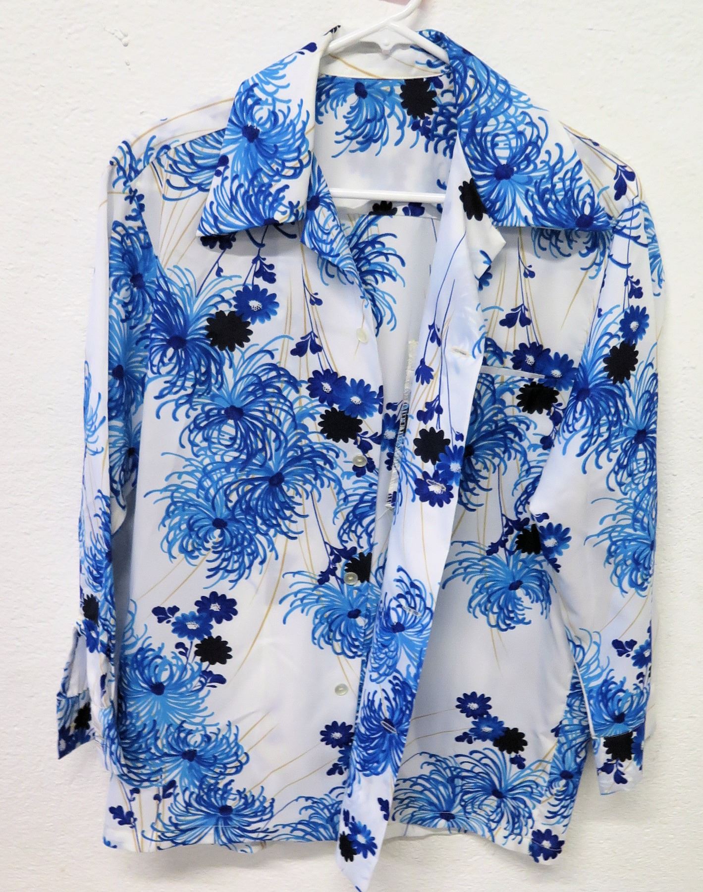 Vintage Shirt - Long Sleeve Blue White Floral Print, No Tags, Size Unknown