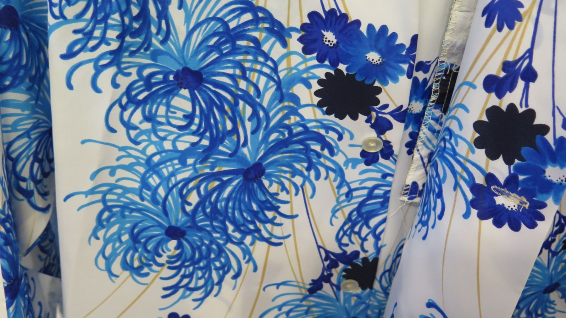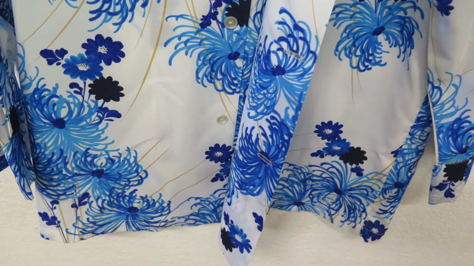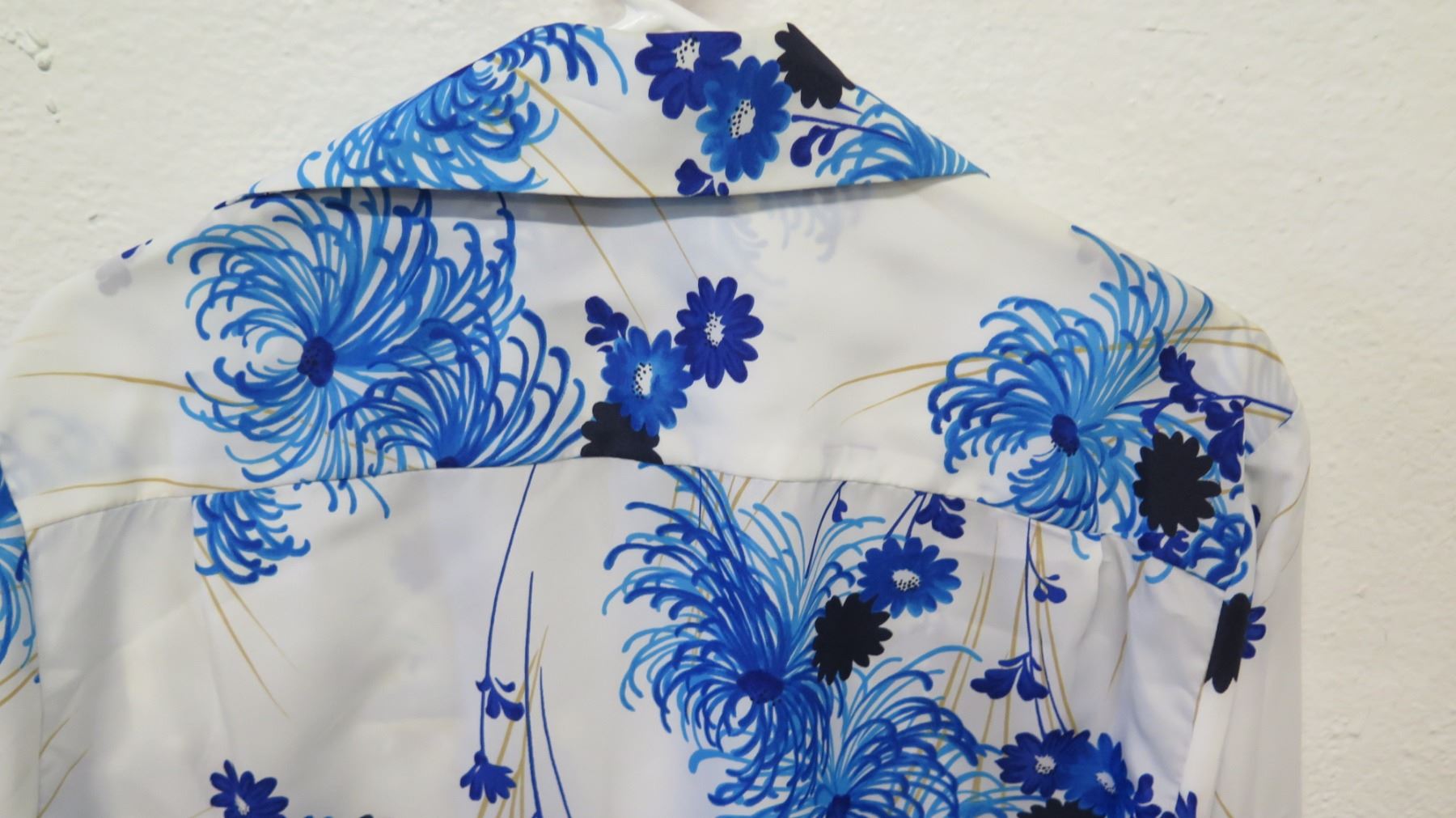 Vintage Shirt - Long Sleeve Blue White Floral Print, No Tags, Size Unknown