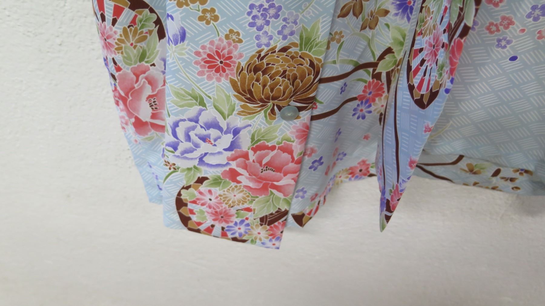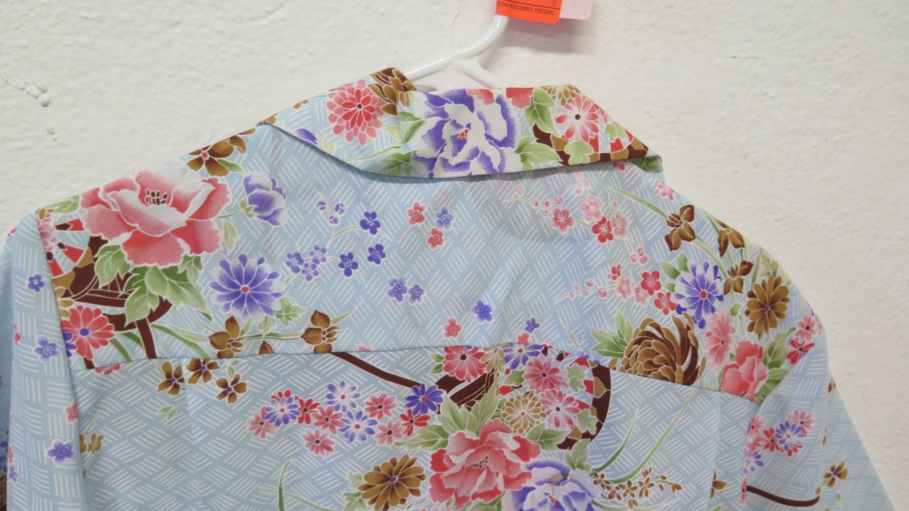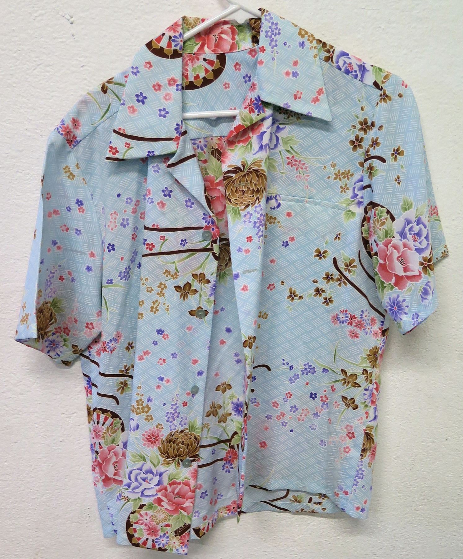 Vintage Shirt - Lt Blue Asian Inspired Floral Print, No Tags, Size Unknown