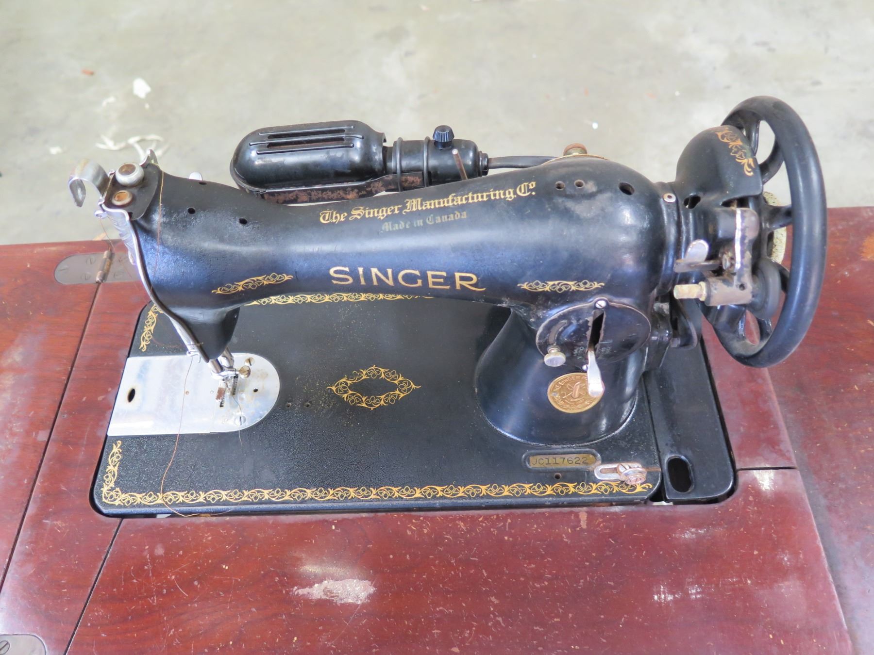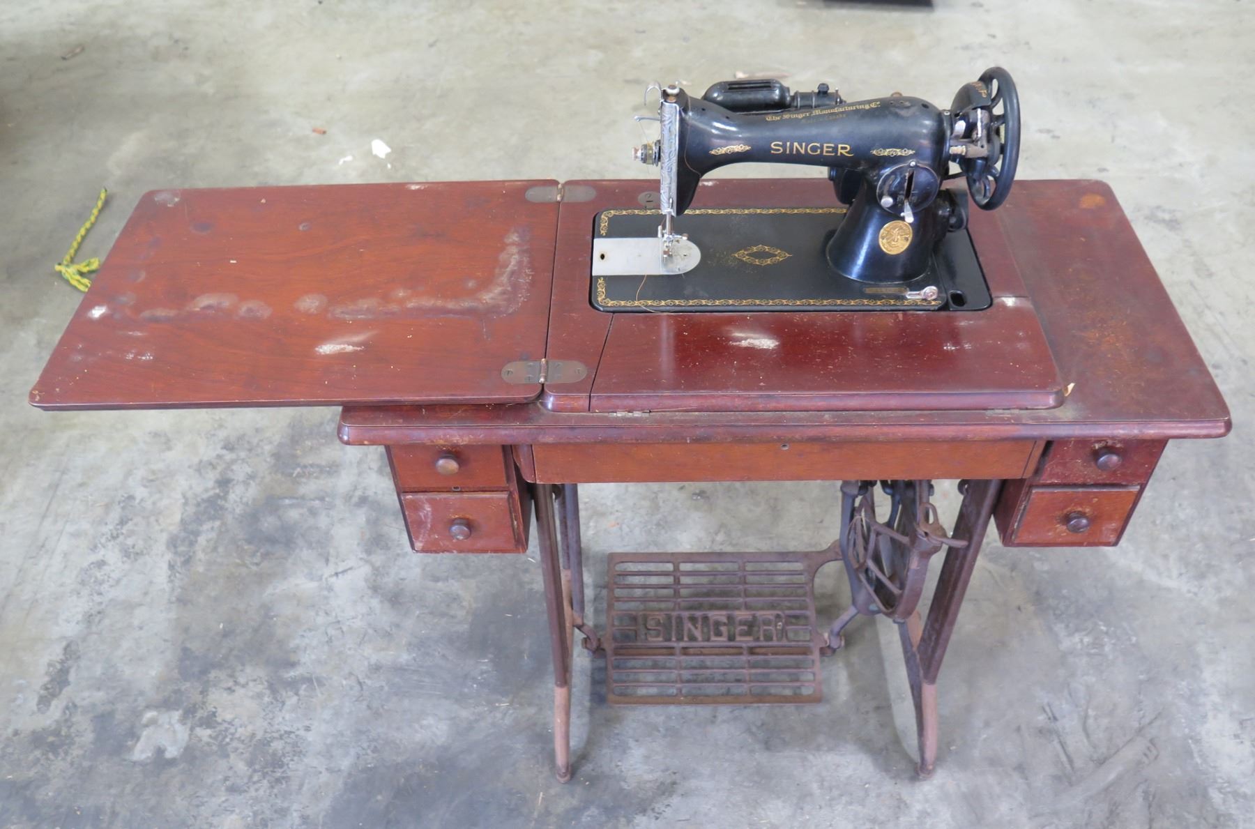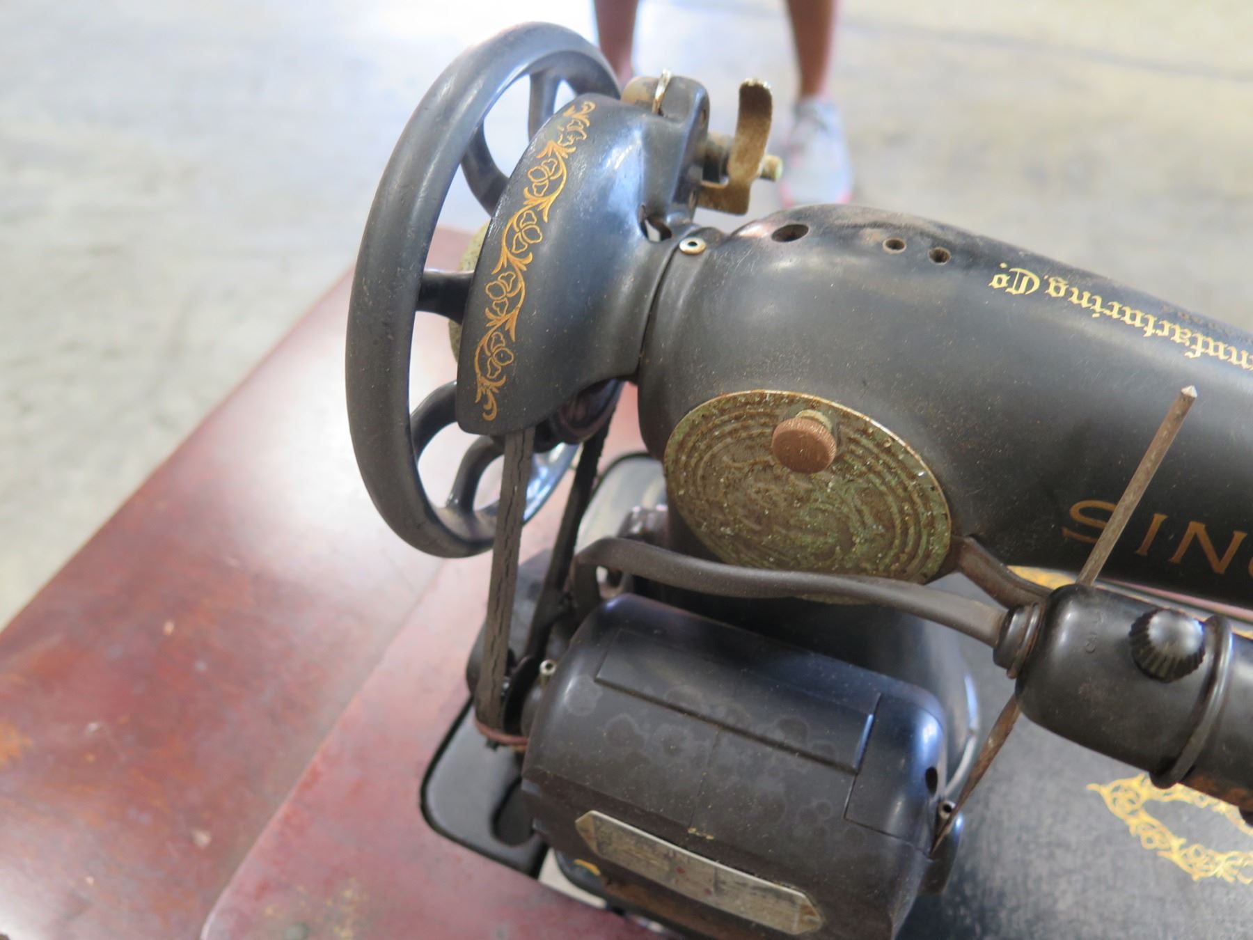 Vintage Singer Sewing Machine BA-3-8S in Wood & Metal Folding Cabinet Table