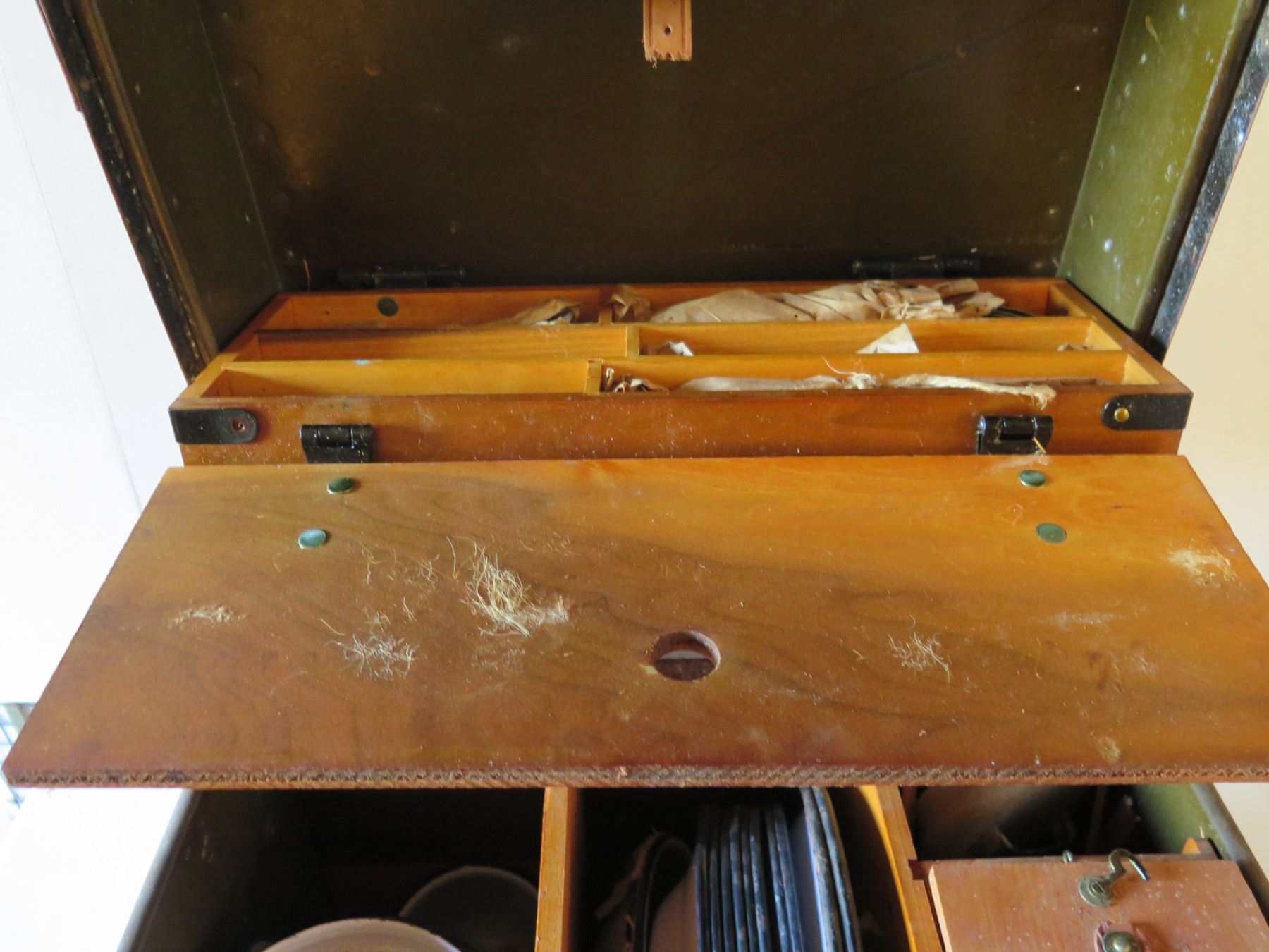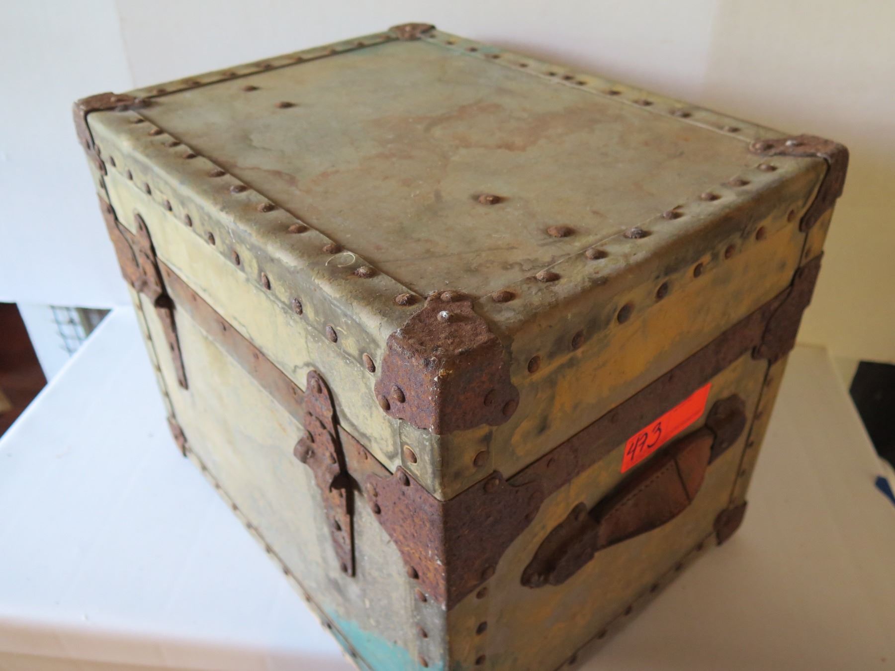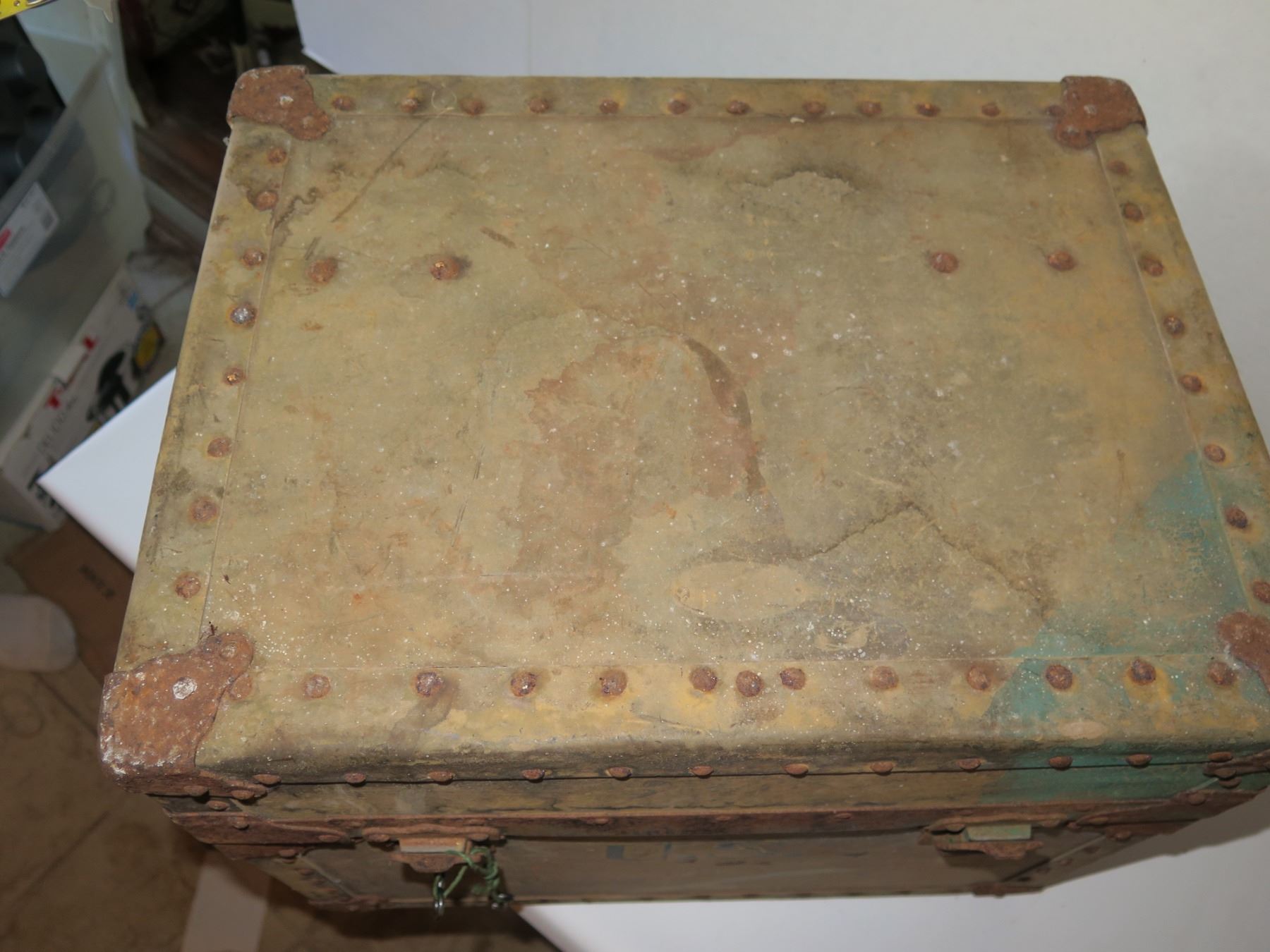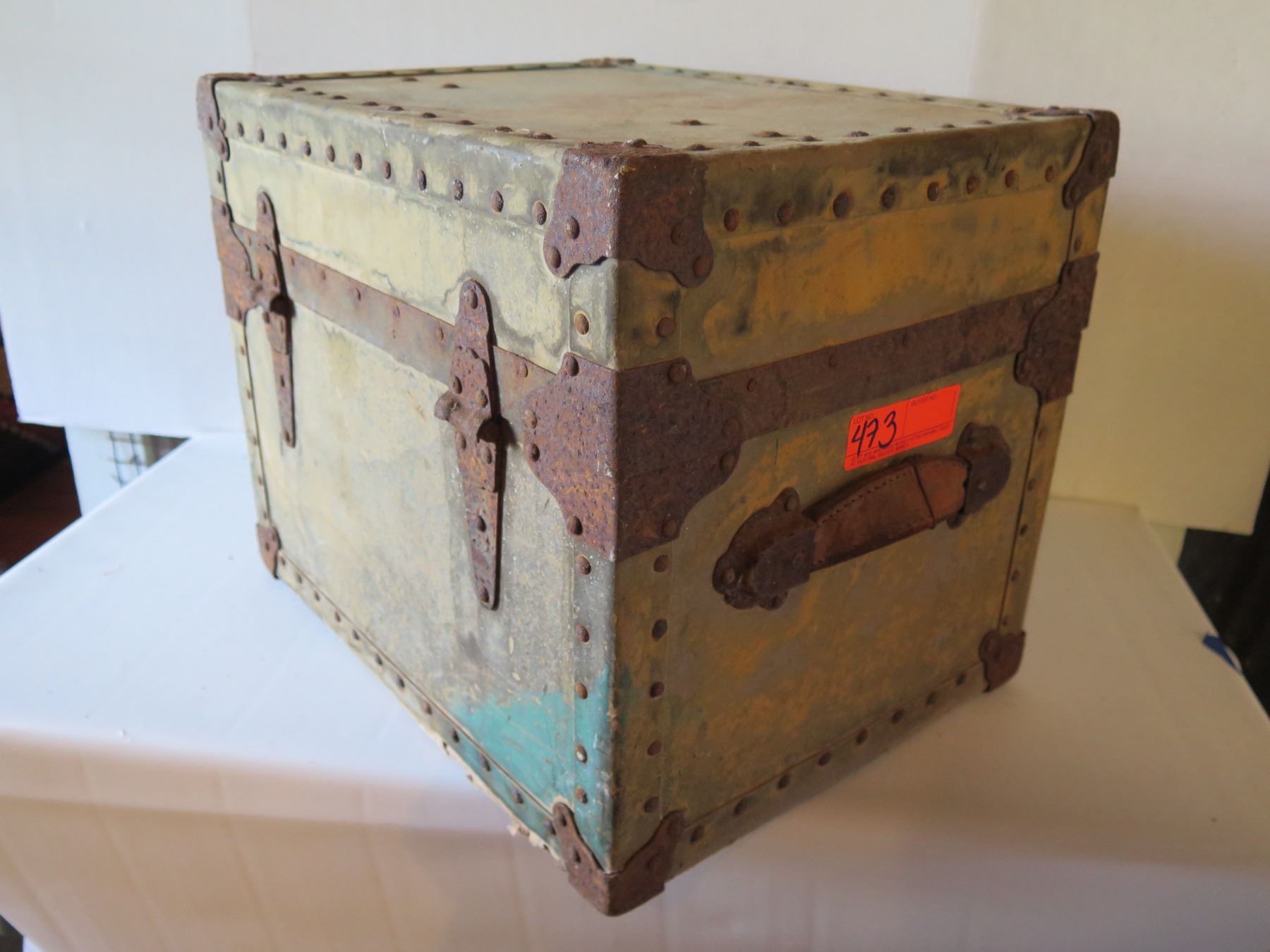 Vintage U.S. Trunk w/ Coffeepot, Dishes & Utensils 17.75"x 13.75"x 14.5"H