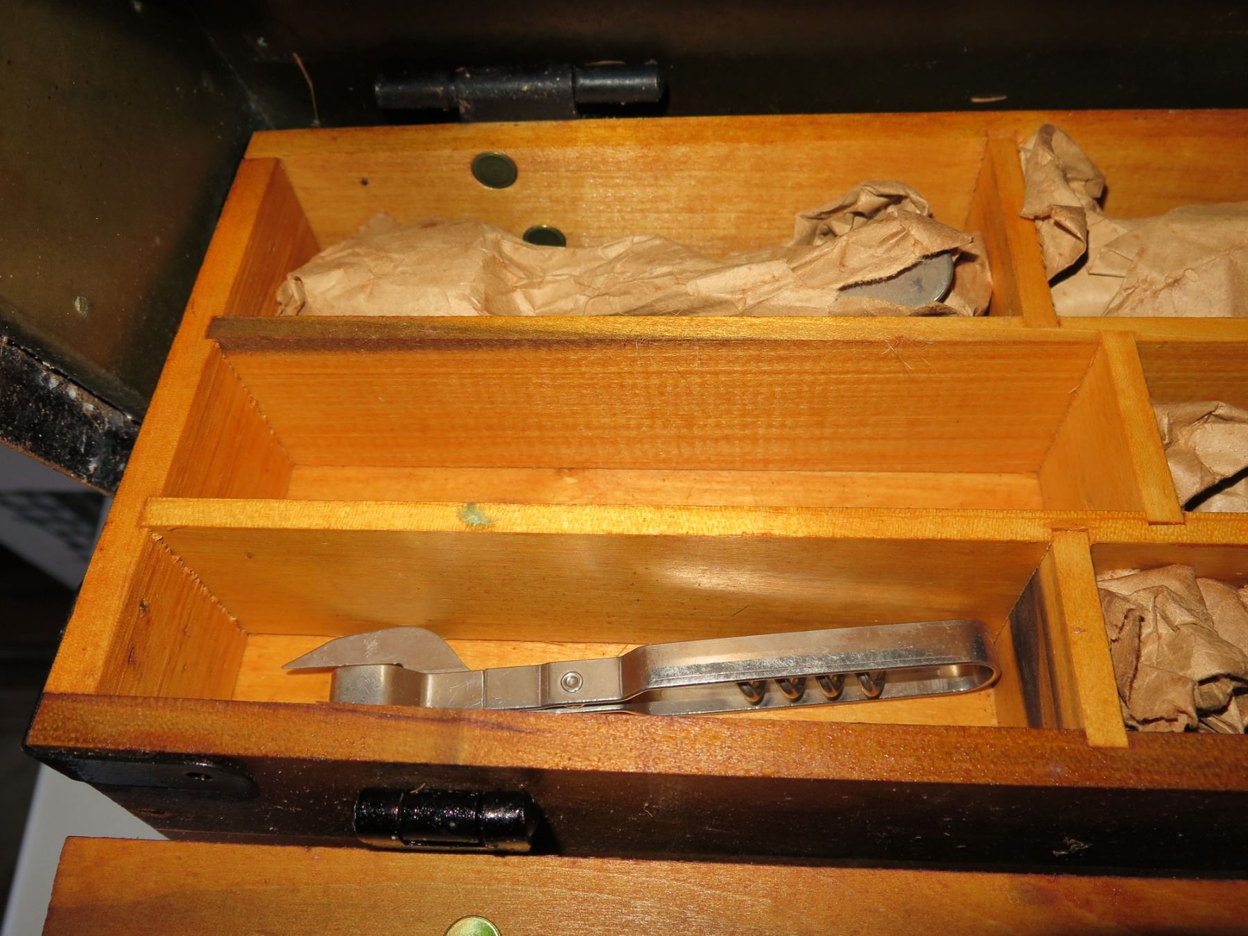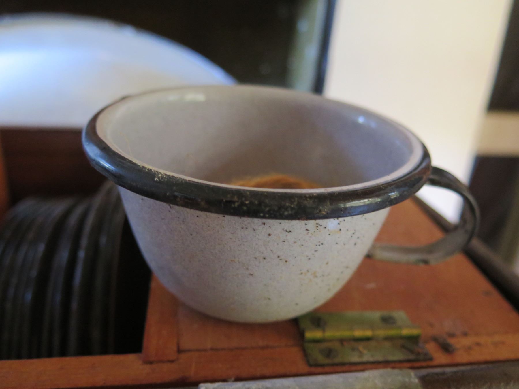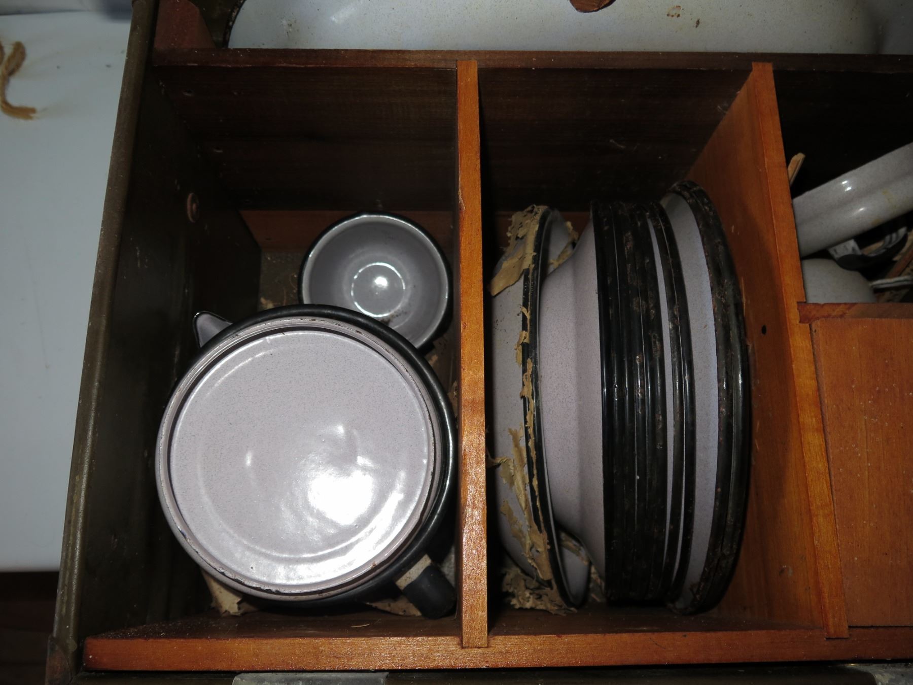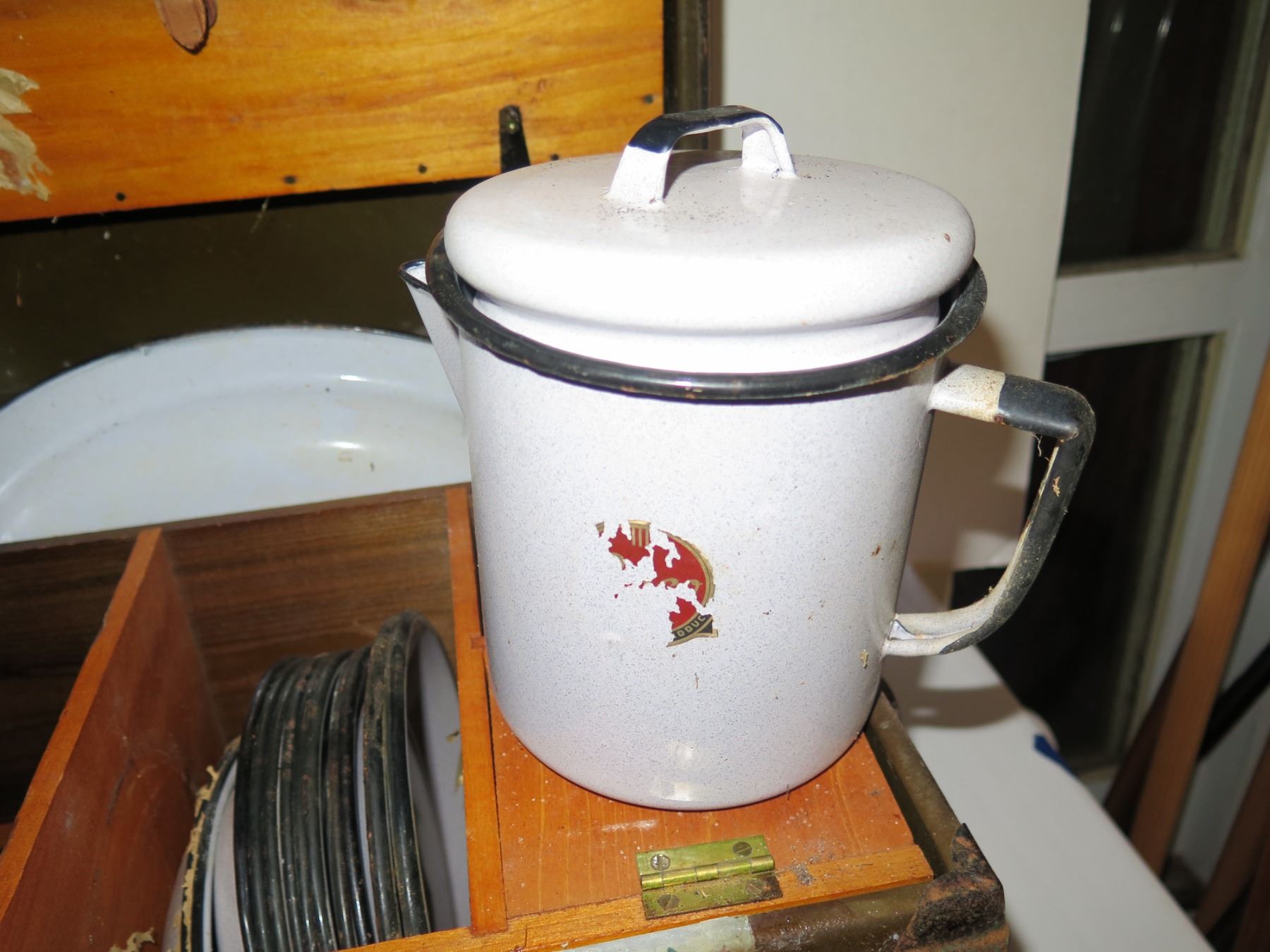 Vintage U.S. Trunk w/ Coffeepot, Dishes & Utensils 17.75"x 13.75"x 14.5"H
