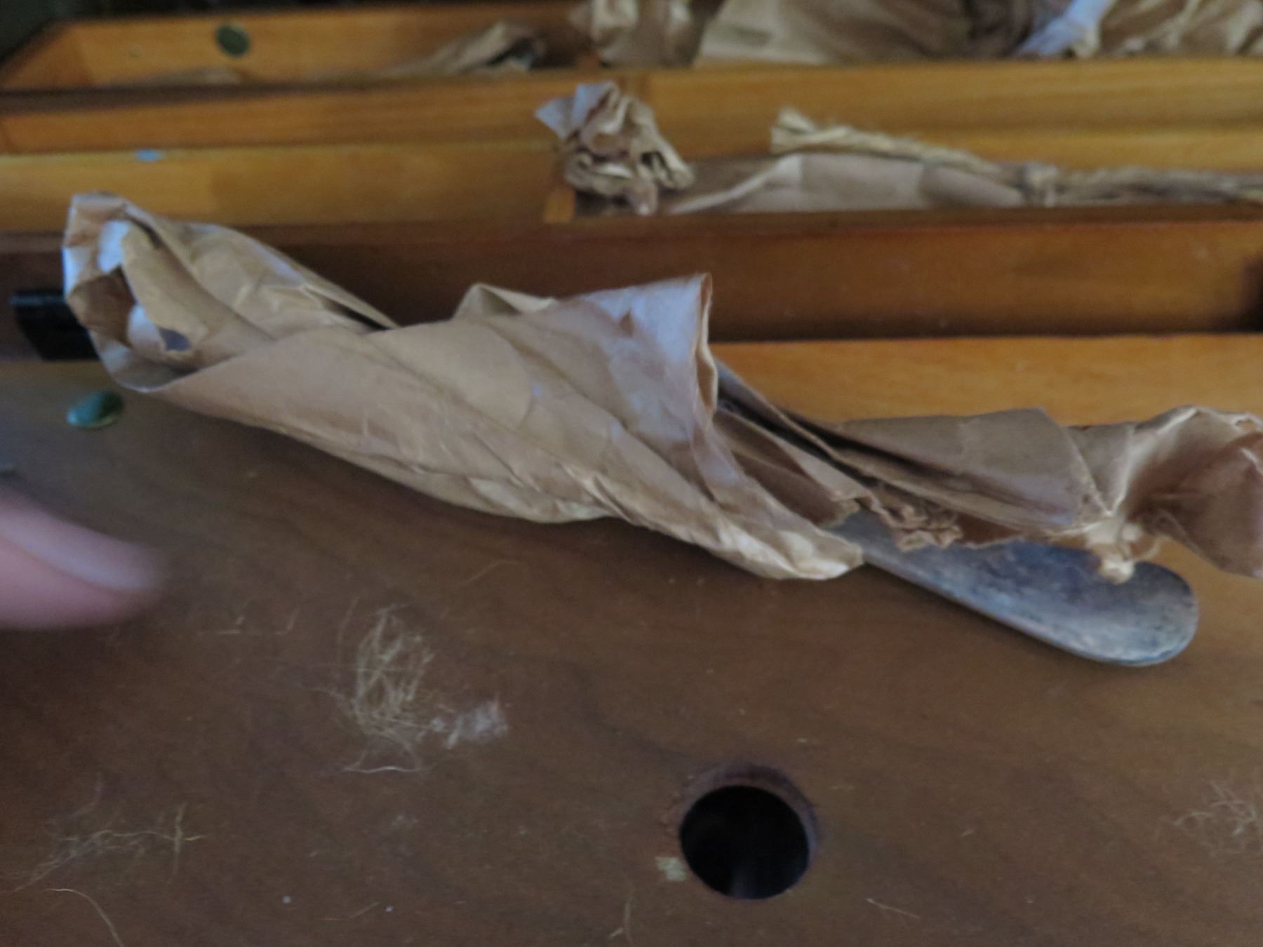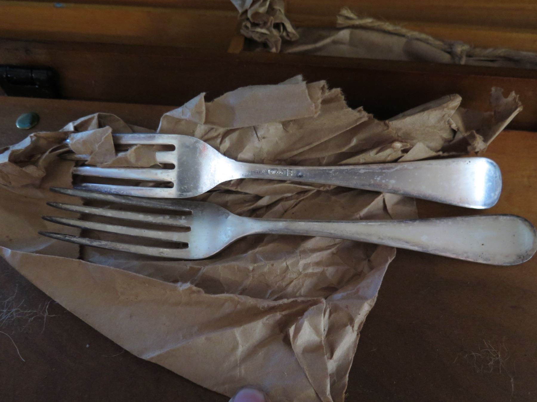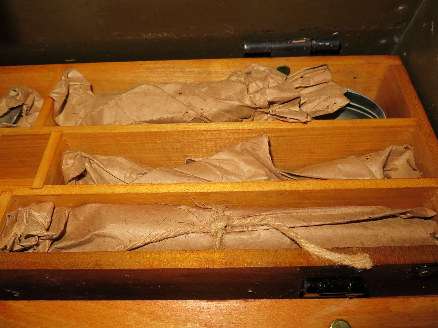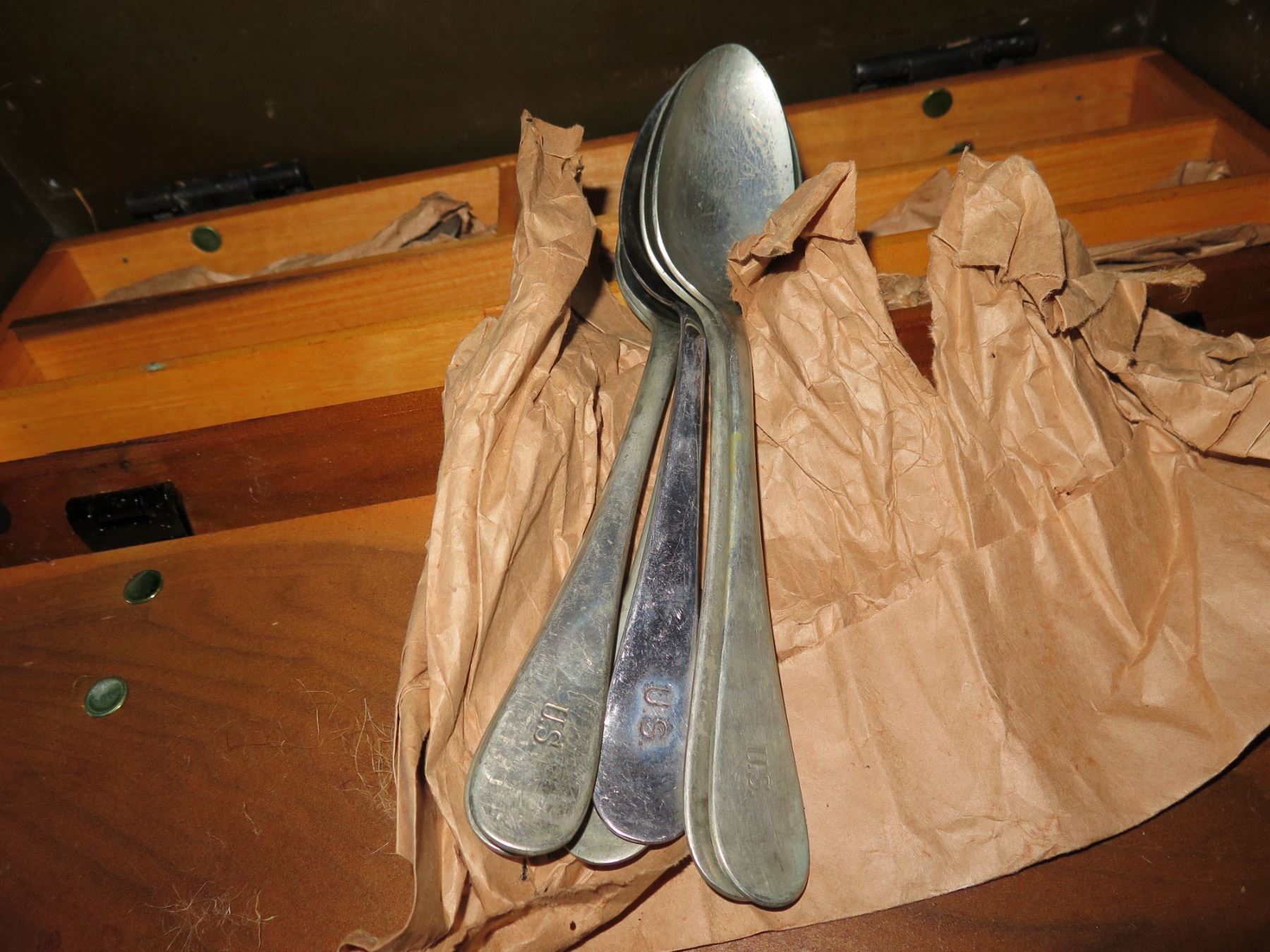 Vintage U.S. Trunk w/ Coffeepot, Dishes & Utensils 17.75"x 13.75"x 14.5"H