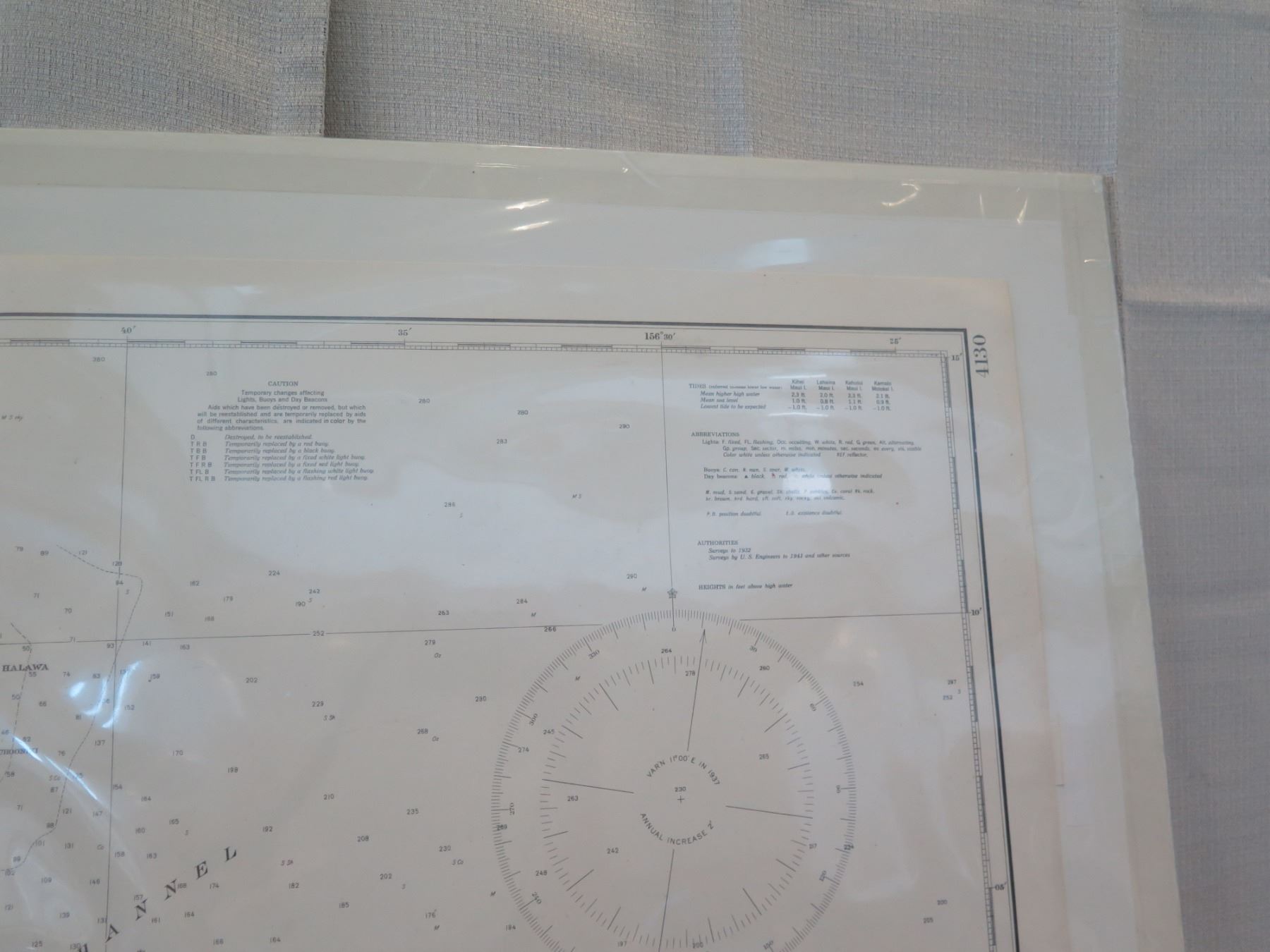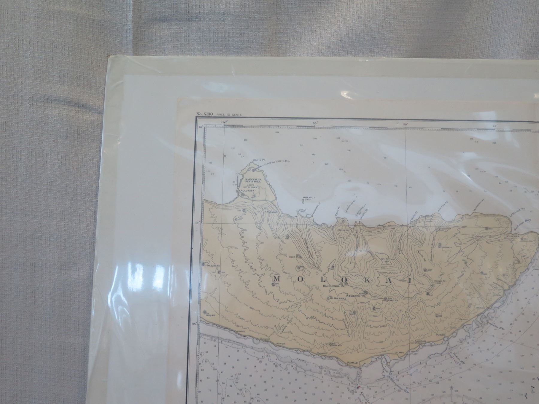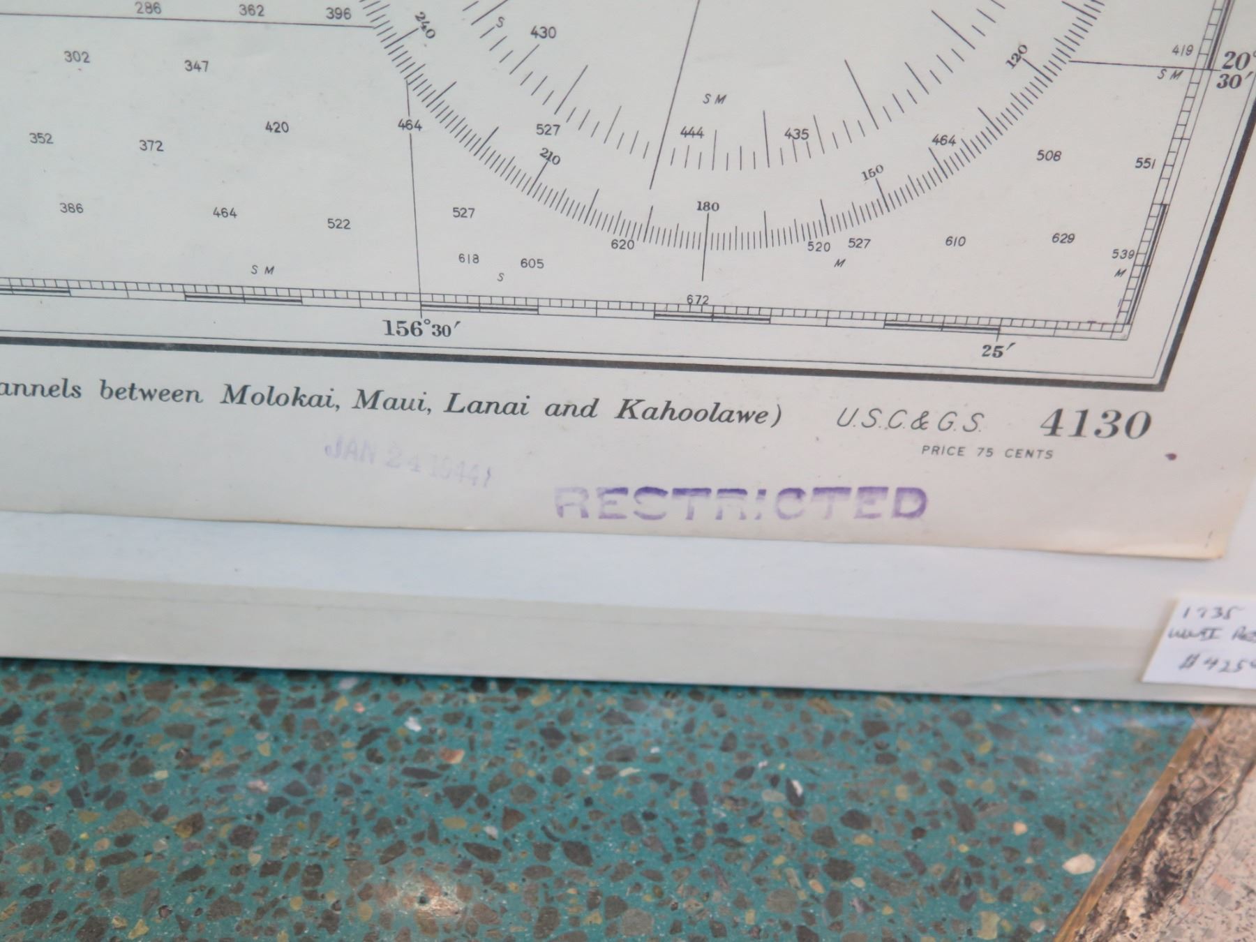Vintage WWII Era 1938 Molokai Channel Map, Stamped "Restricted" (poster board not included)