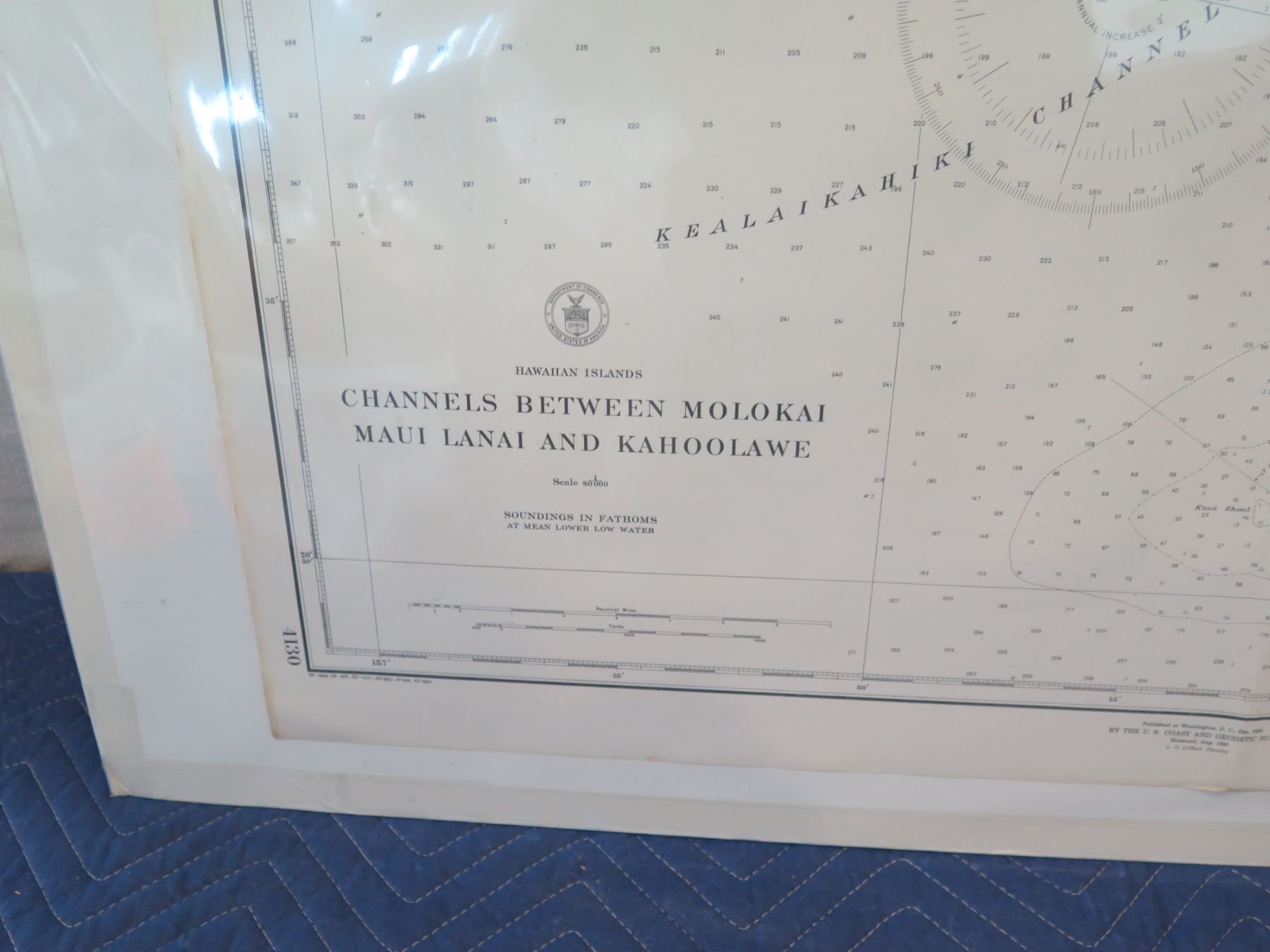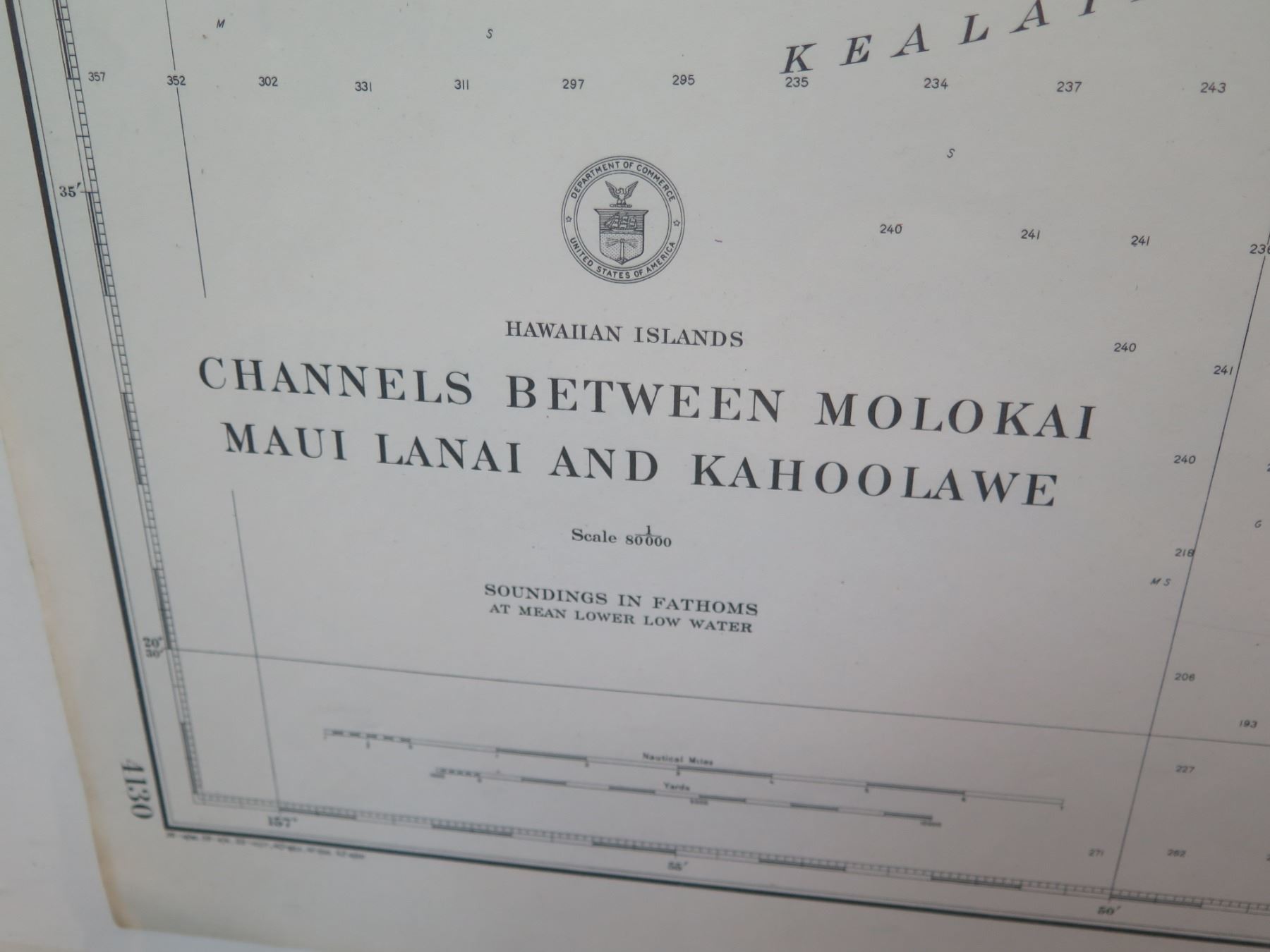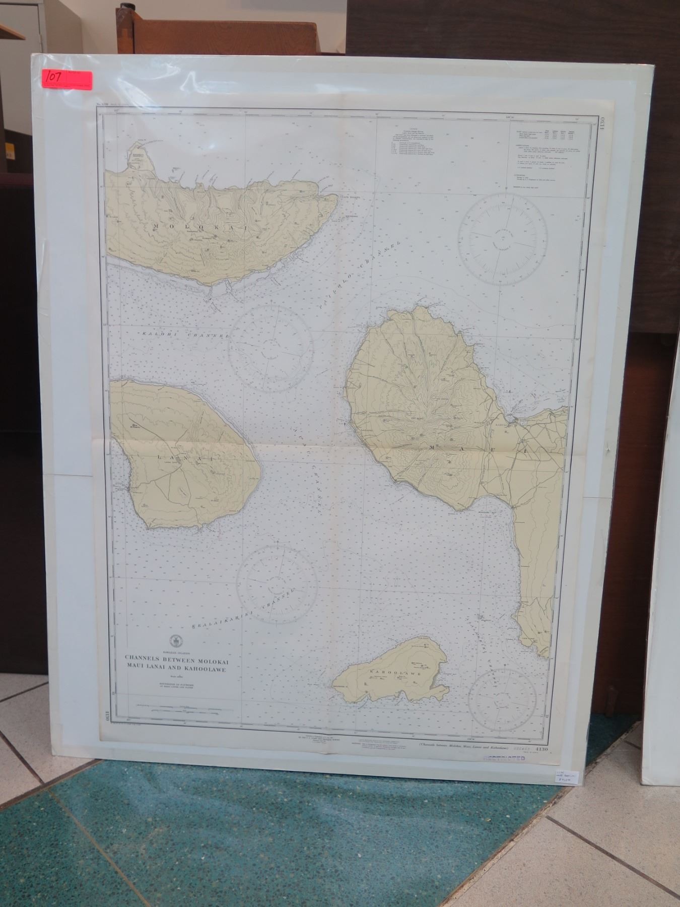 Vintage WWII Era 1938 Molokai Channel Map, Stamped "Restricted" (poster board not included)