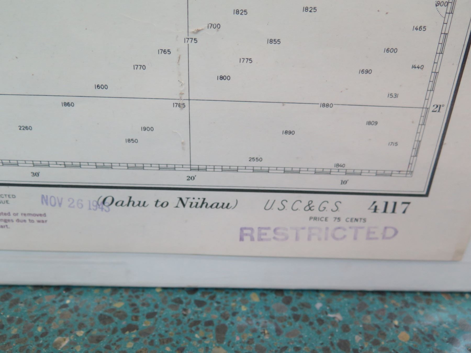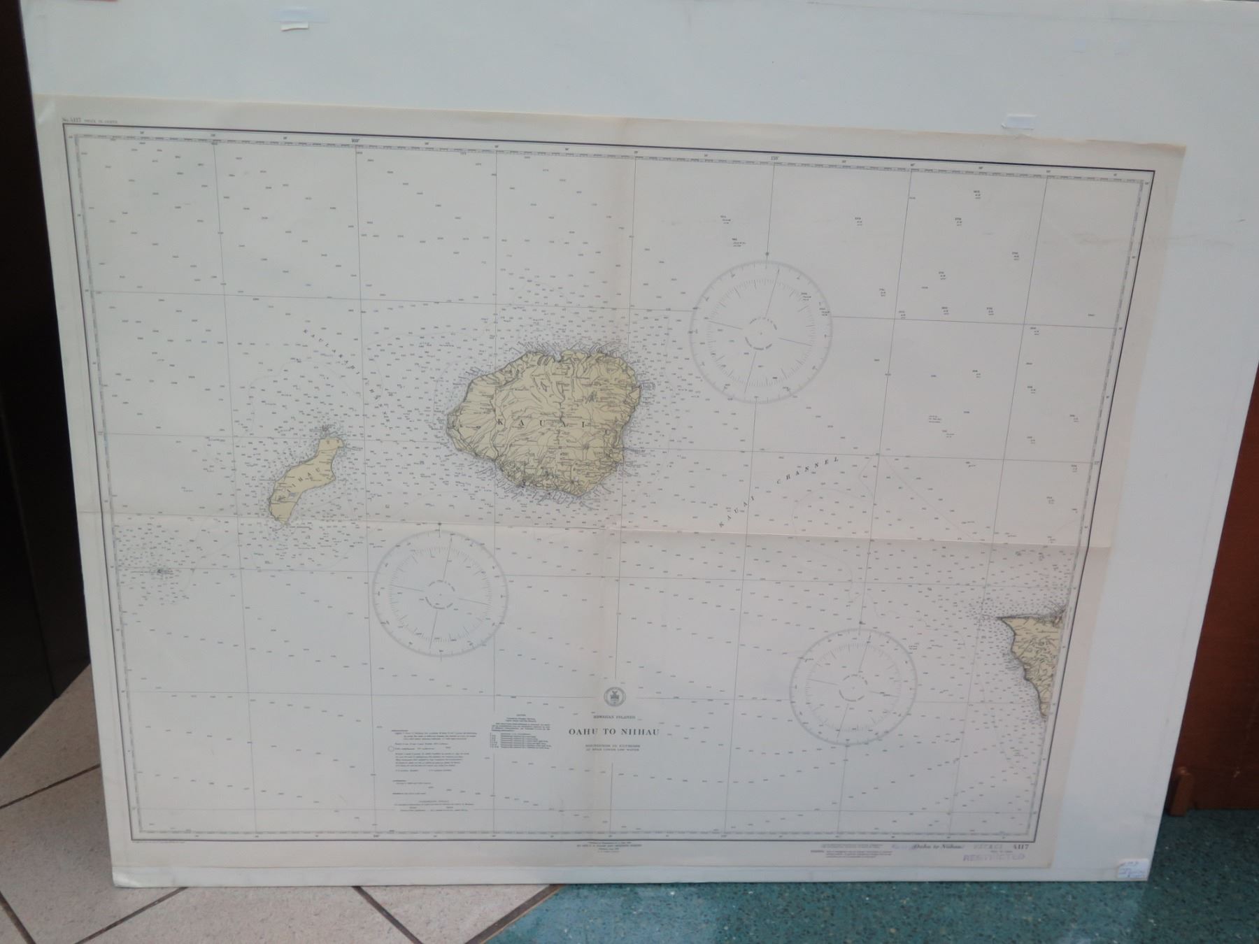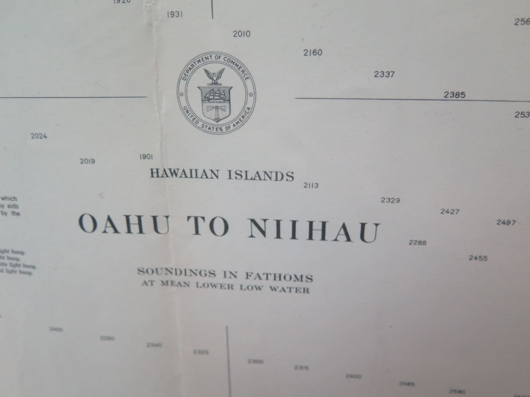 Vintage WWII Era 1939 Oahu to Niihau Map, Stamped "Restricted" (poster board not included)