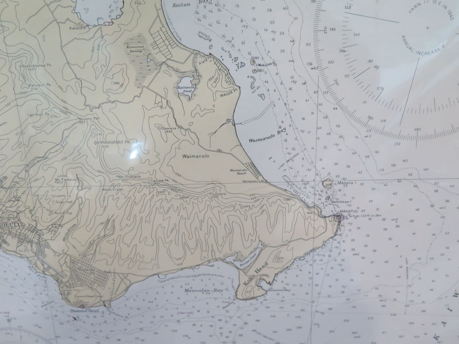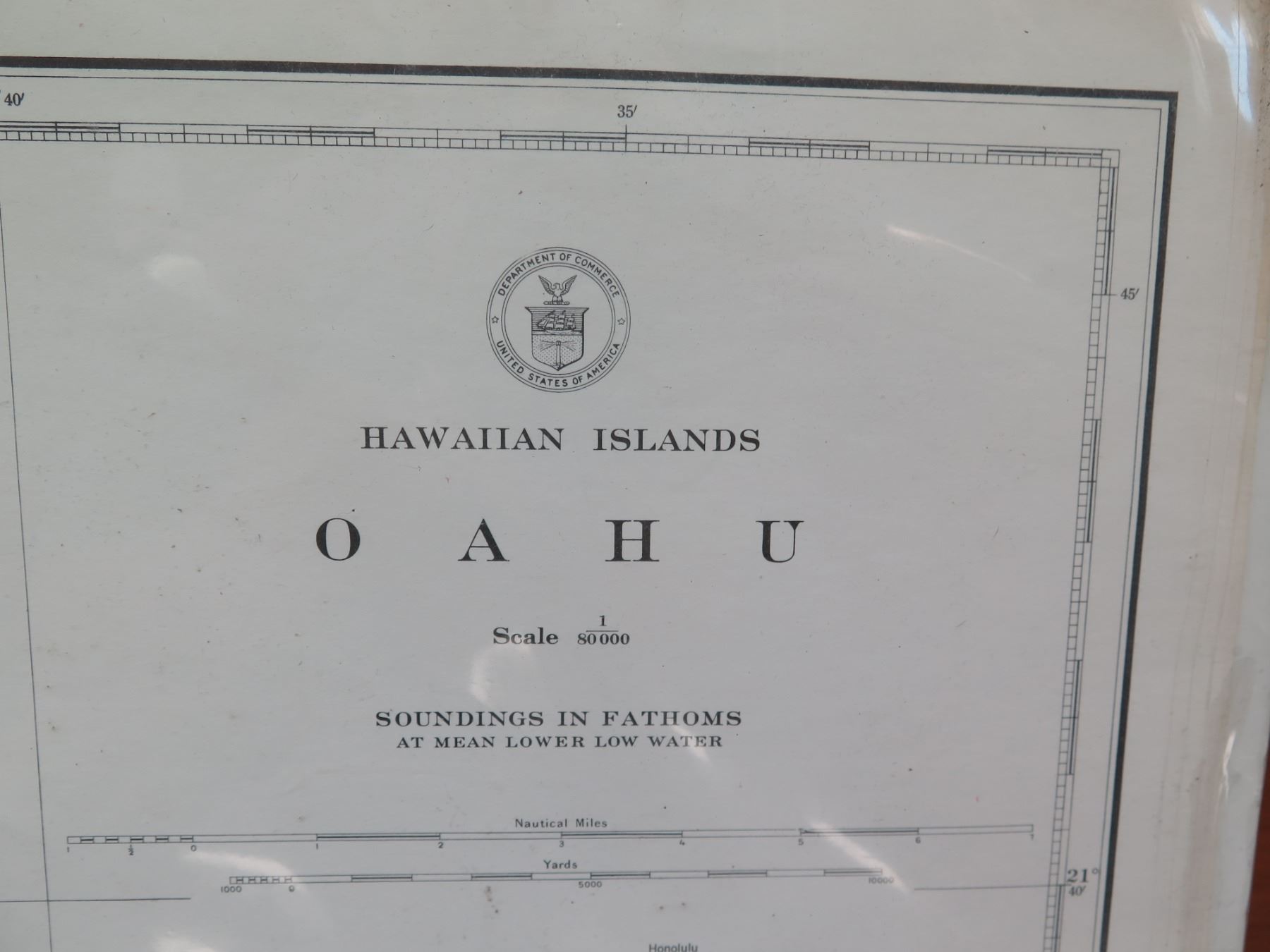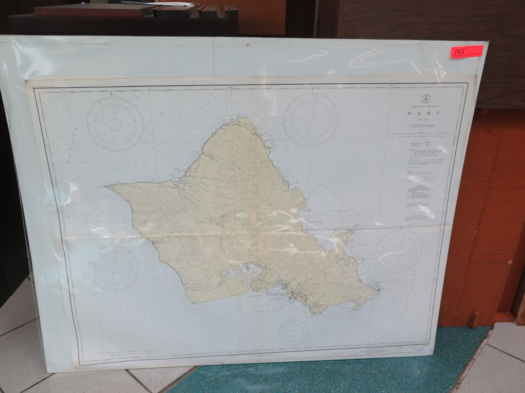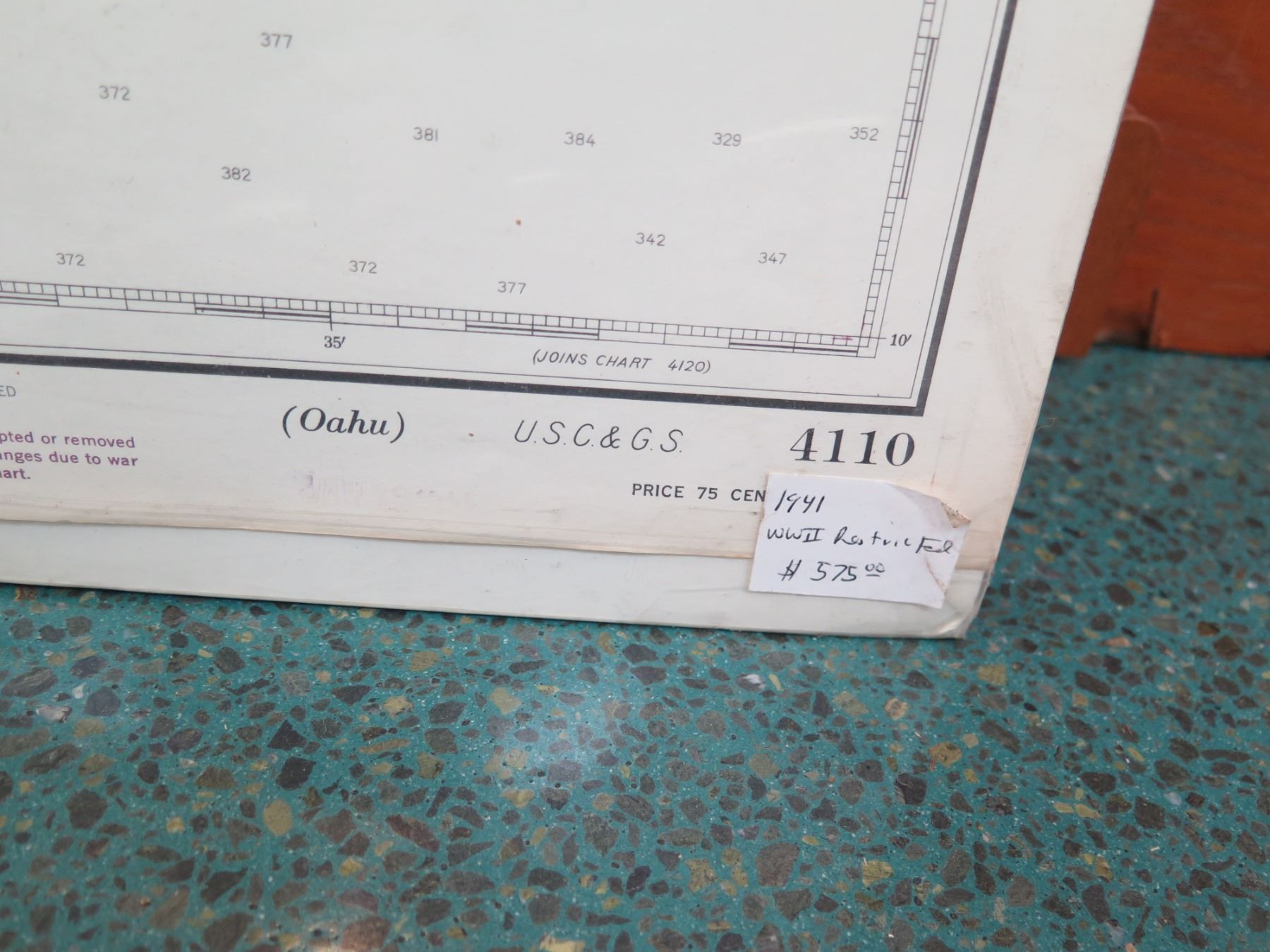 Vintage WWII Era 1941 Oahu Map, Stamped "Restricted" (poster board not included)