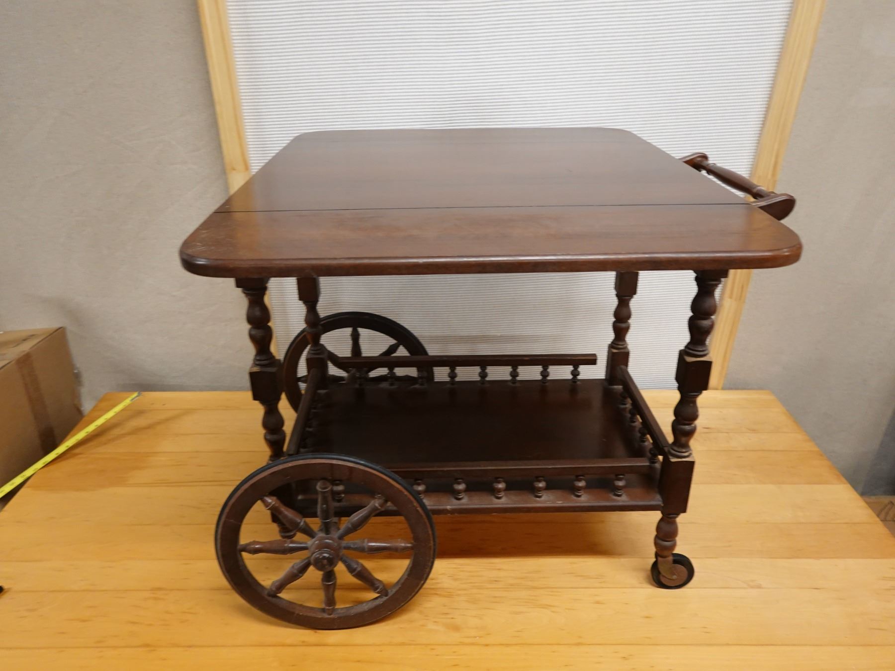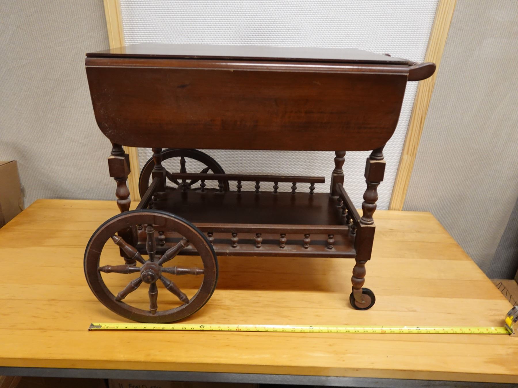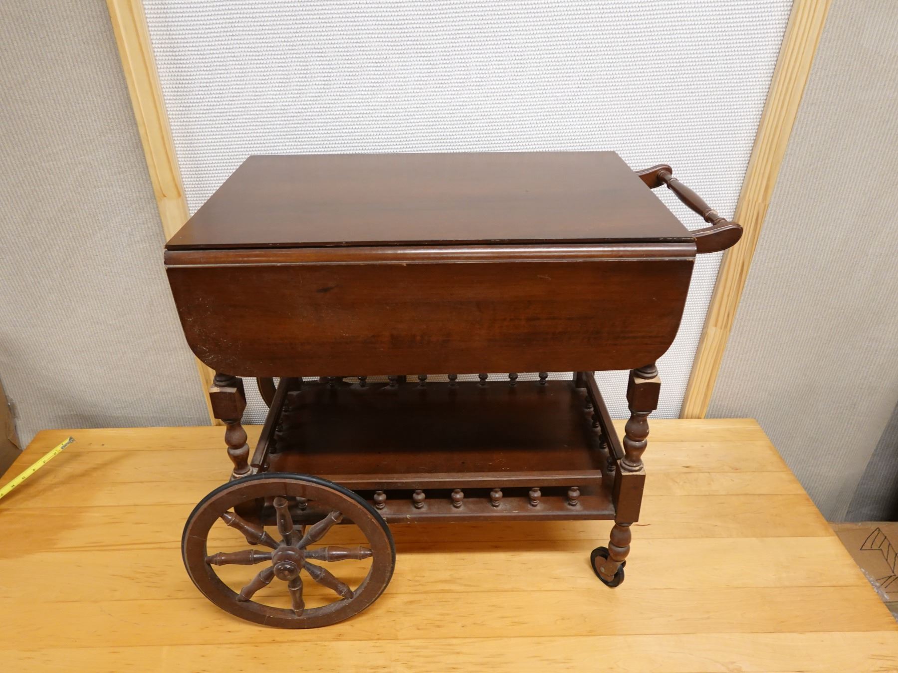 Vintage Wooden Drop-Leaf Tea Cart on Wheels w/ Undershelf 32" x 19" (folded - leaf is 10" each) x 28"H