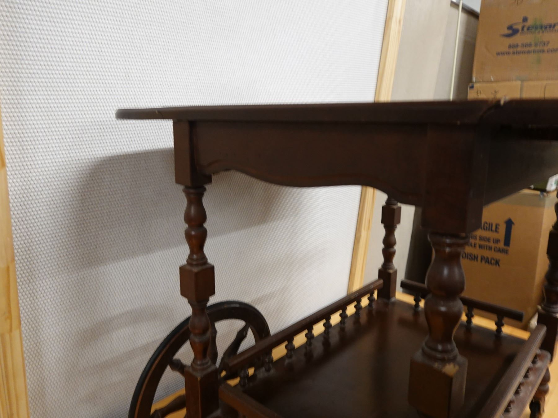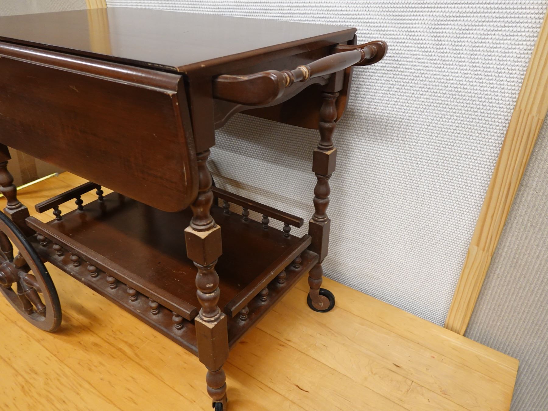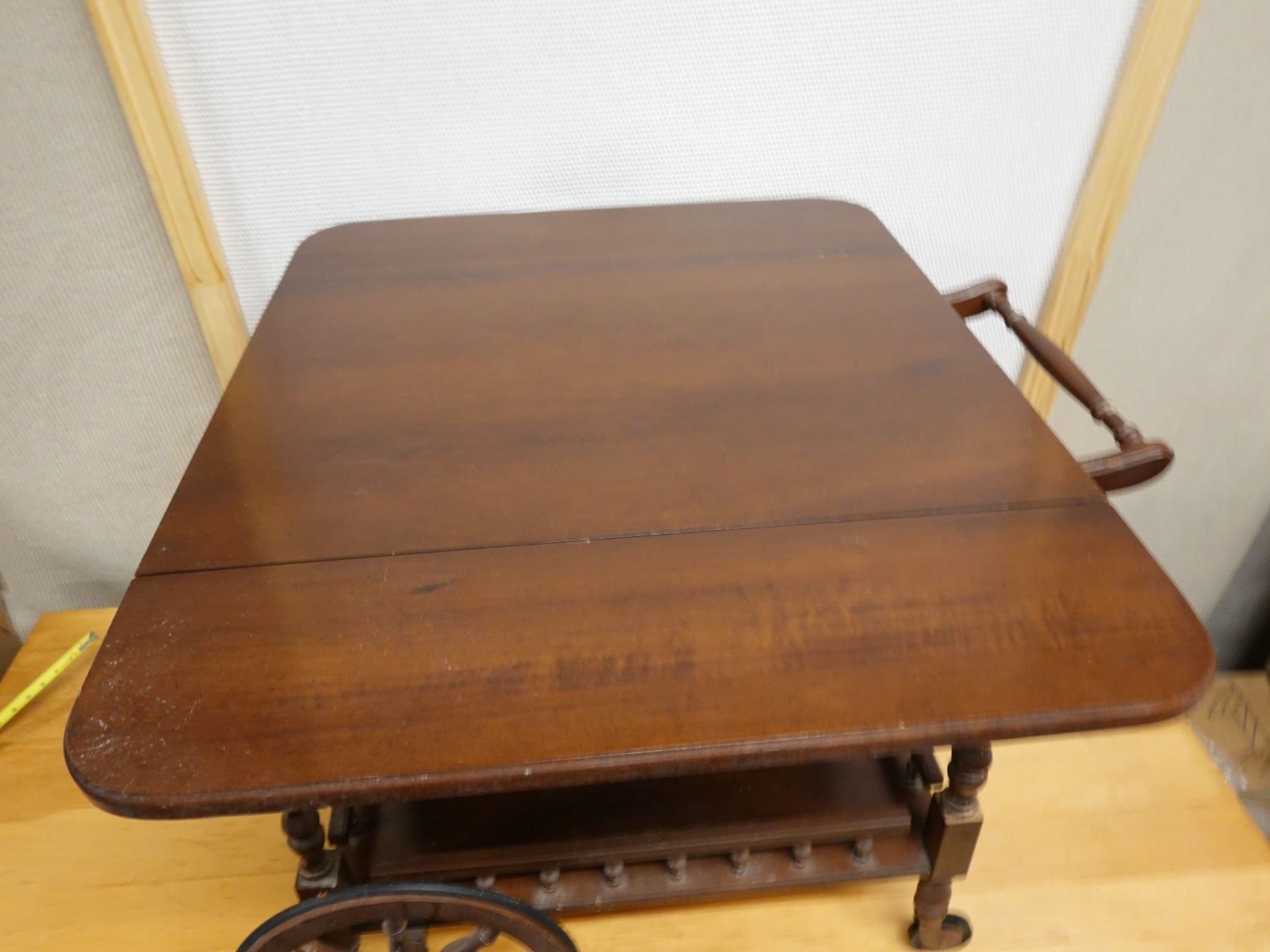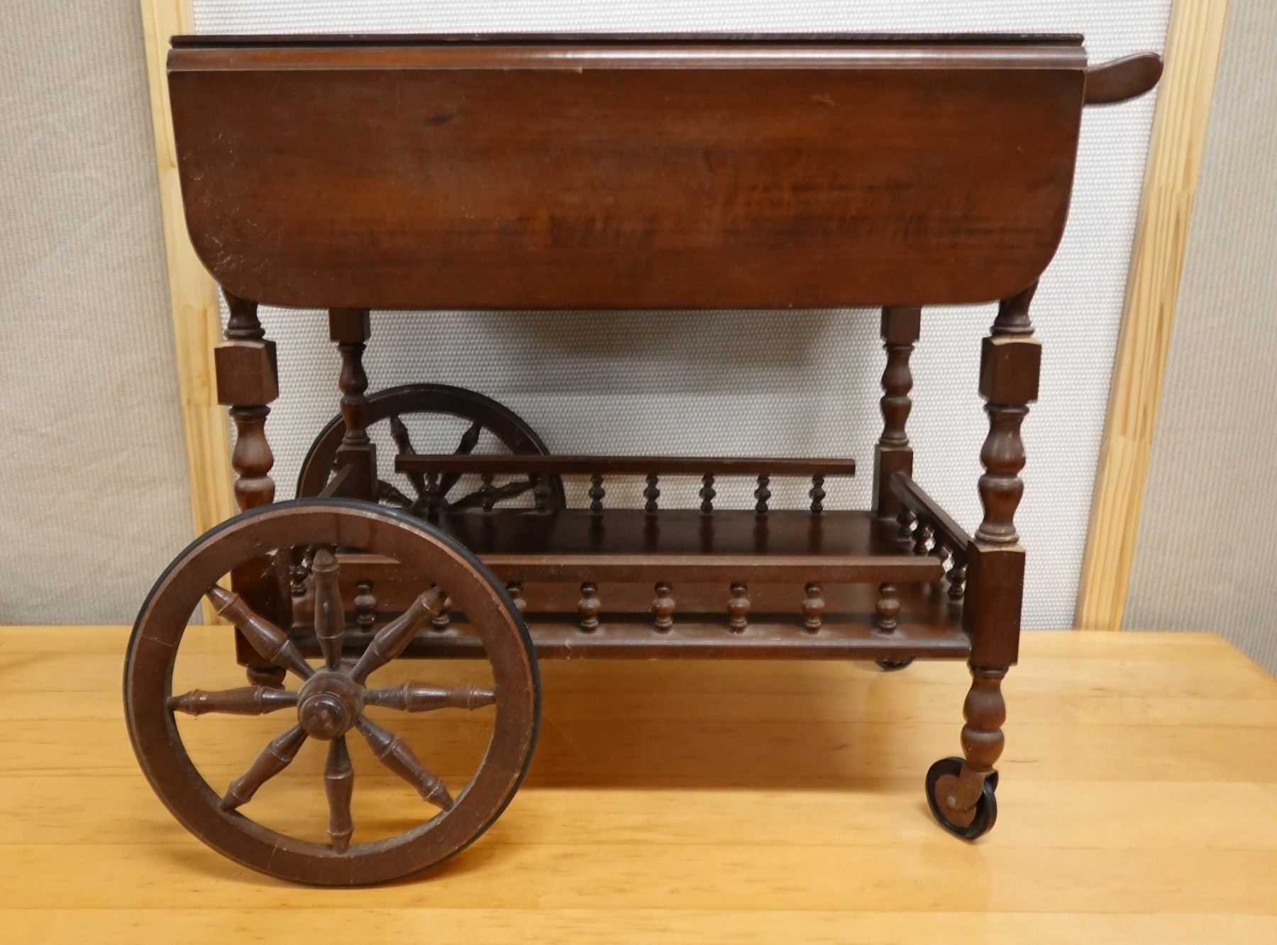 Vintage Wooden Drop-Leaf Tea Cart on Wheels w/ Undershelf 32" x 19" (folded - leaf is 10" each) x 28"H