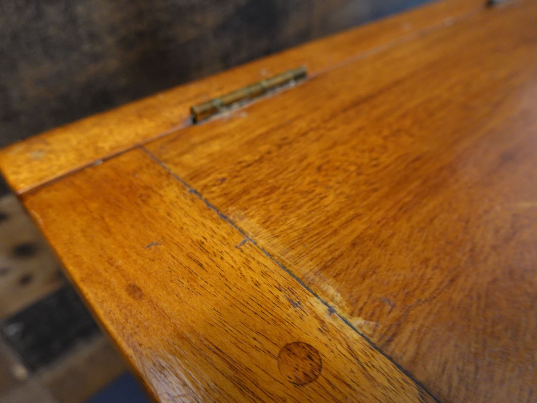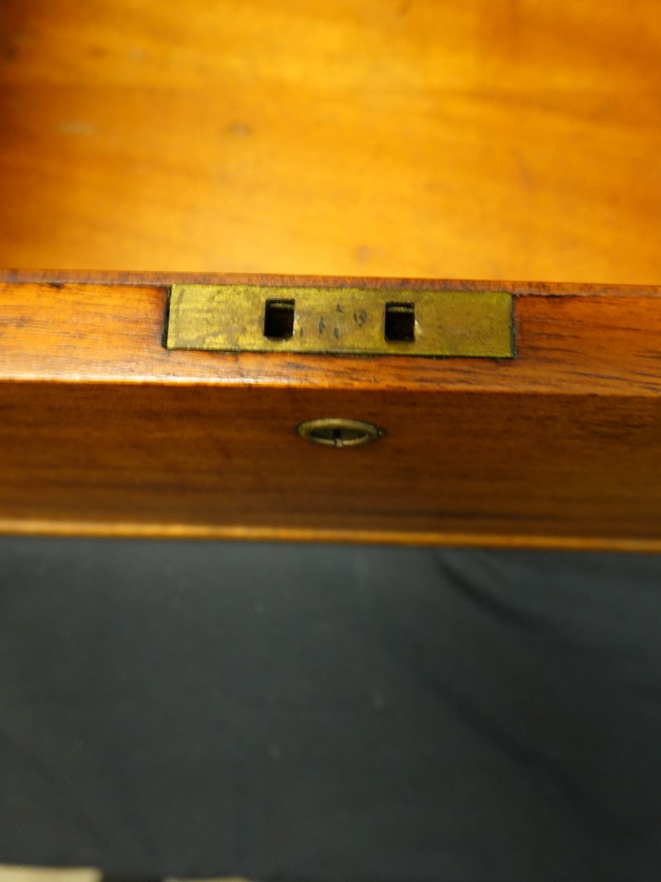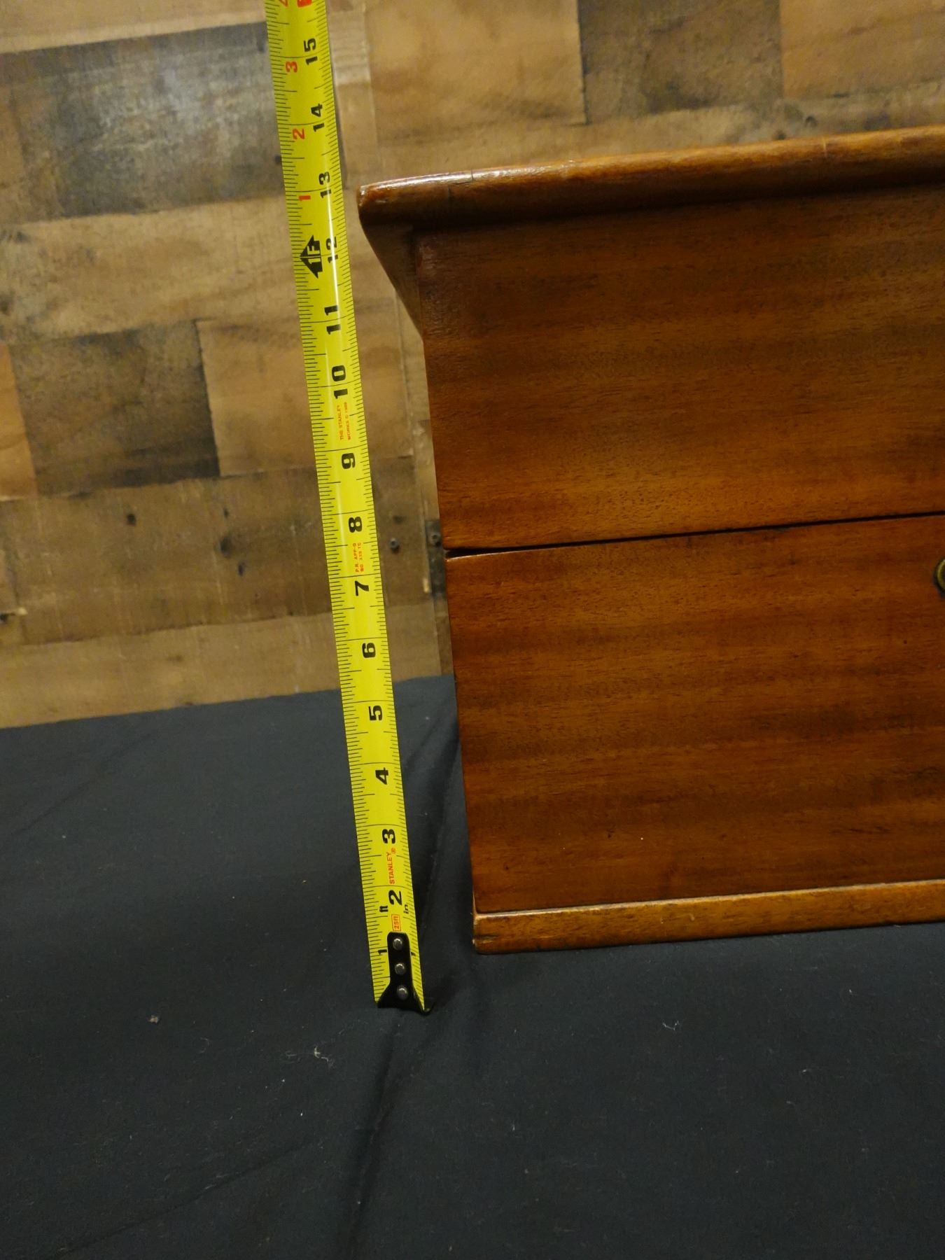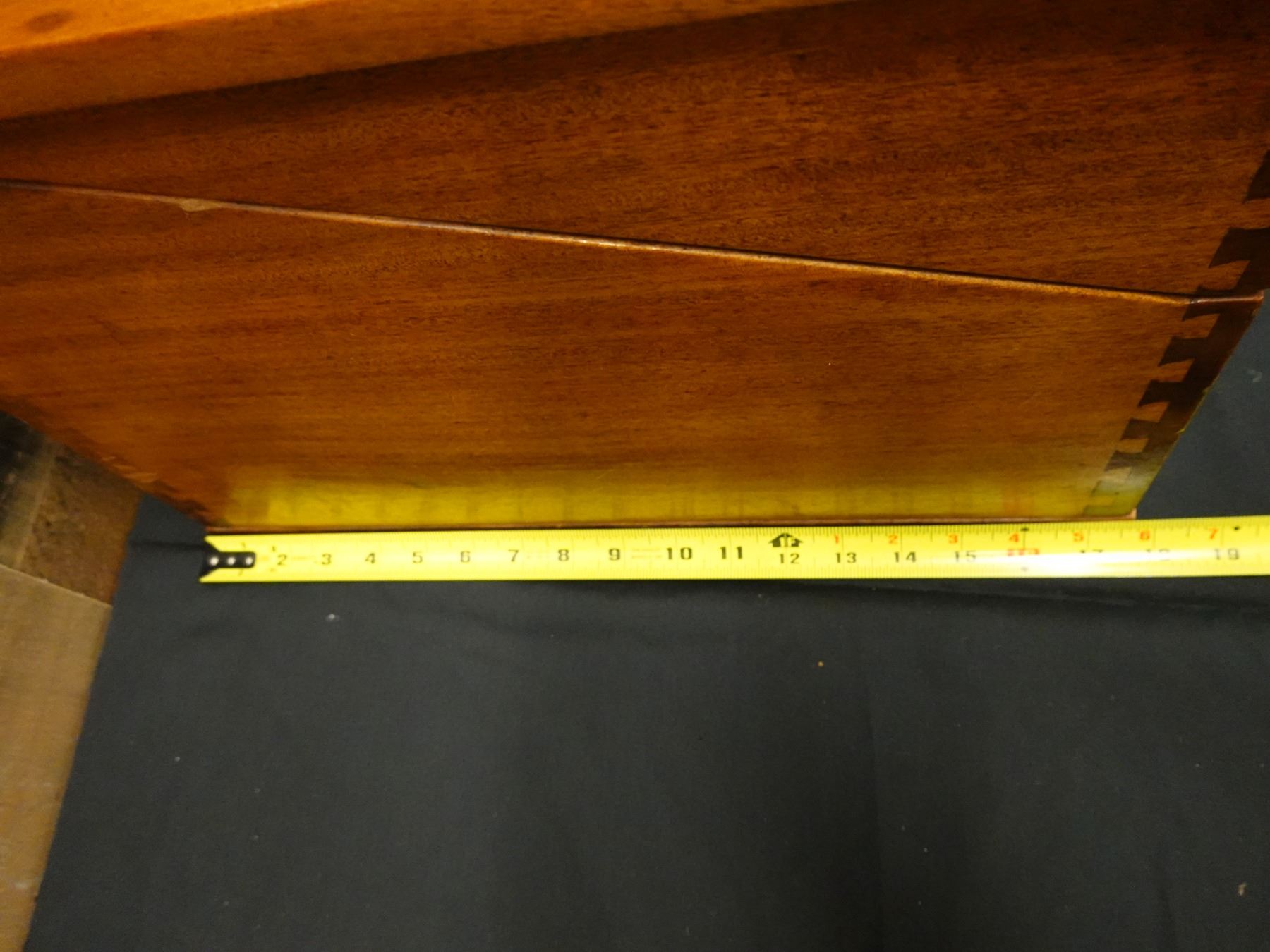 Seller reports this interesting box was supposedly meant to house a large ship's compass. The wood is luminous and finely joined.