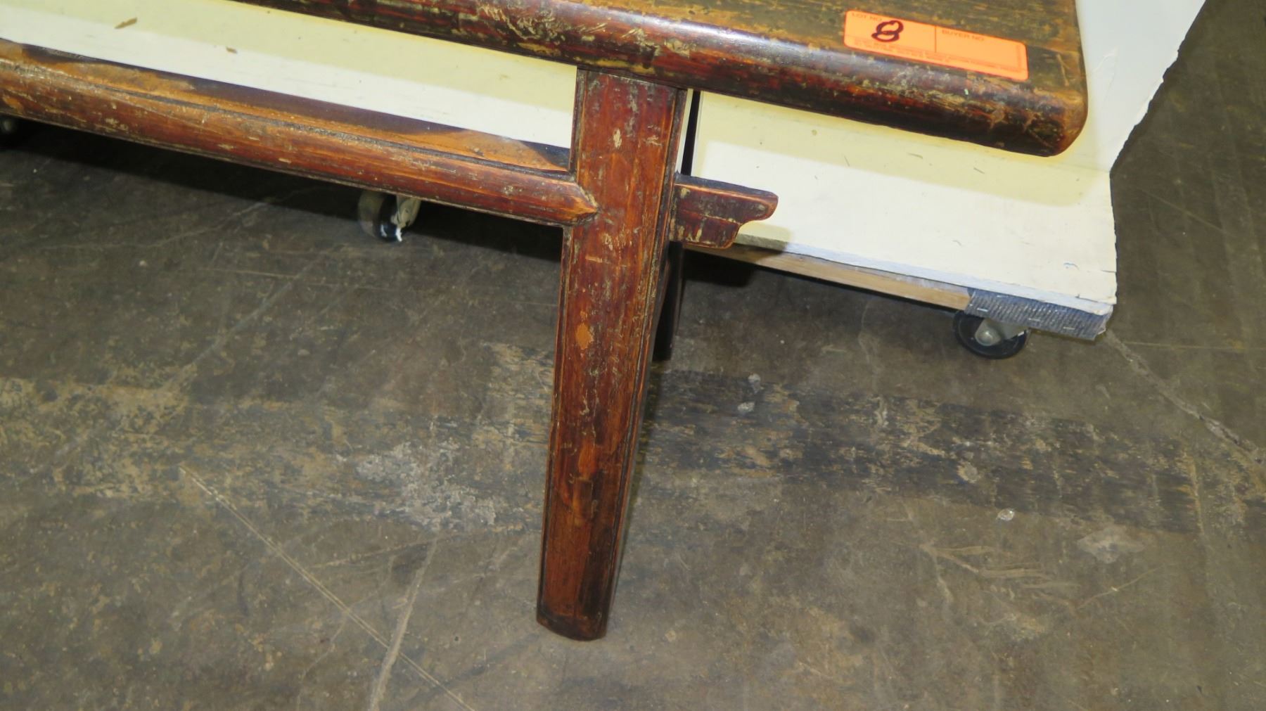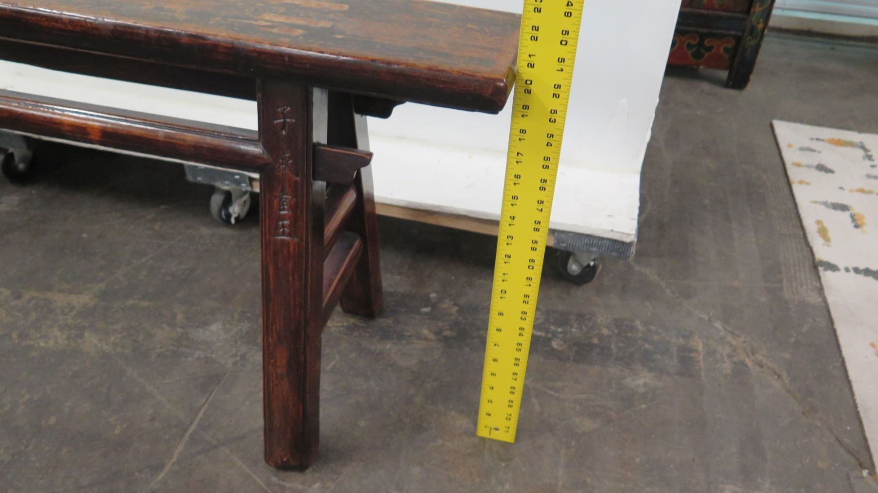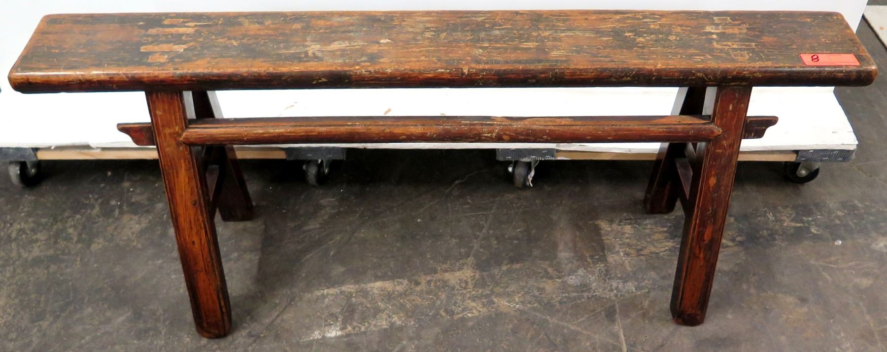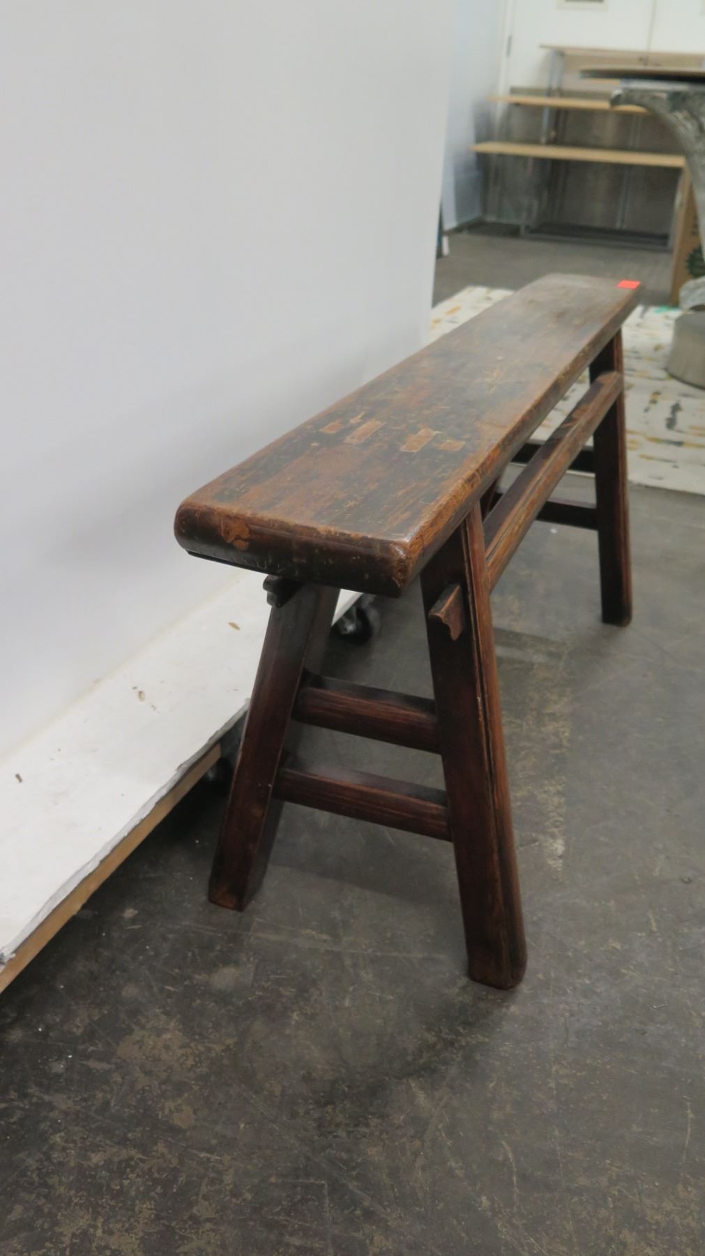 Vintage Wooden Sawhorse Bench w/ Oriental Markings on Legs 50" L, 21" H