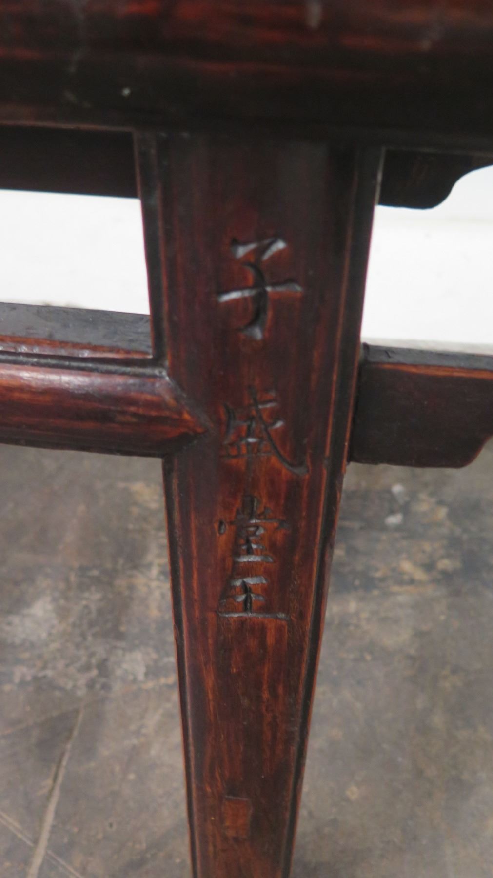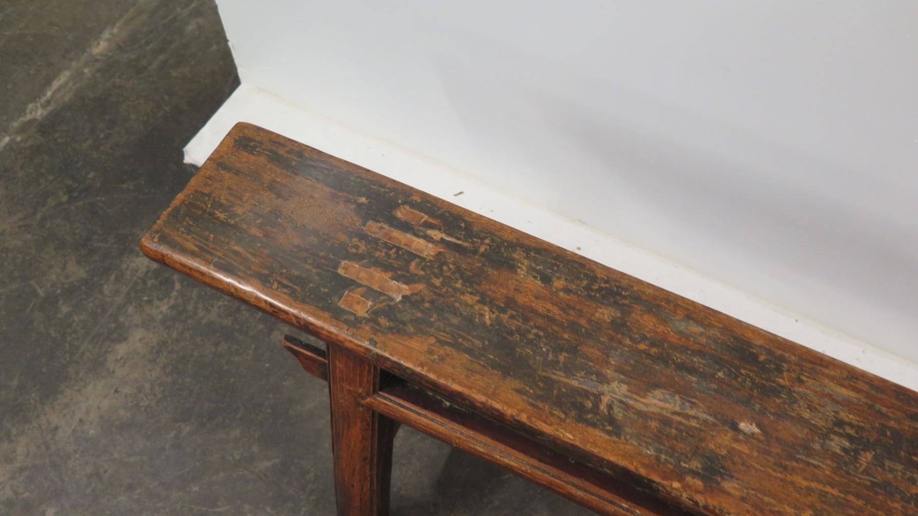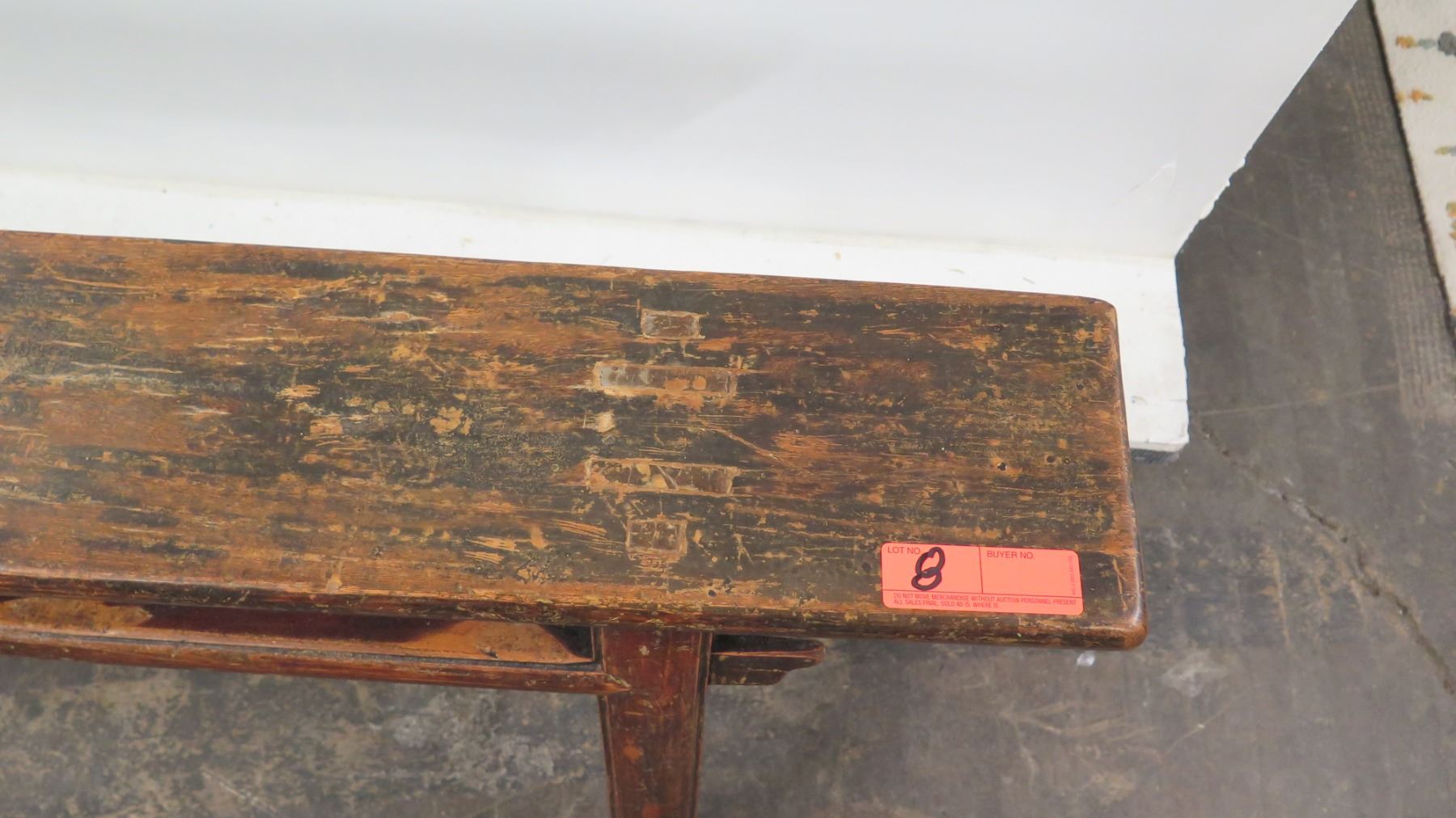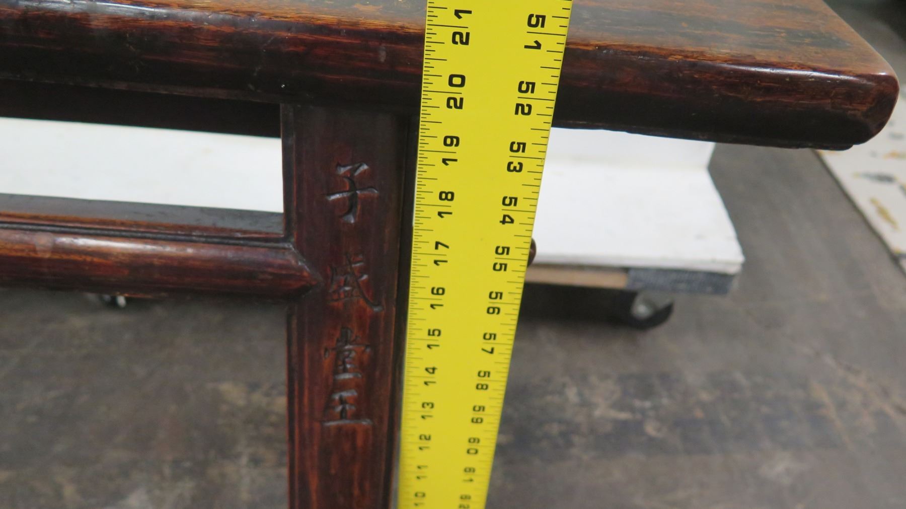 Vintage Wooden Sawhorse Bench w/ Oriental Markings on Legs 50" L, 21" H