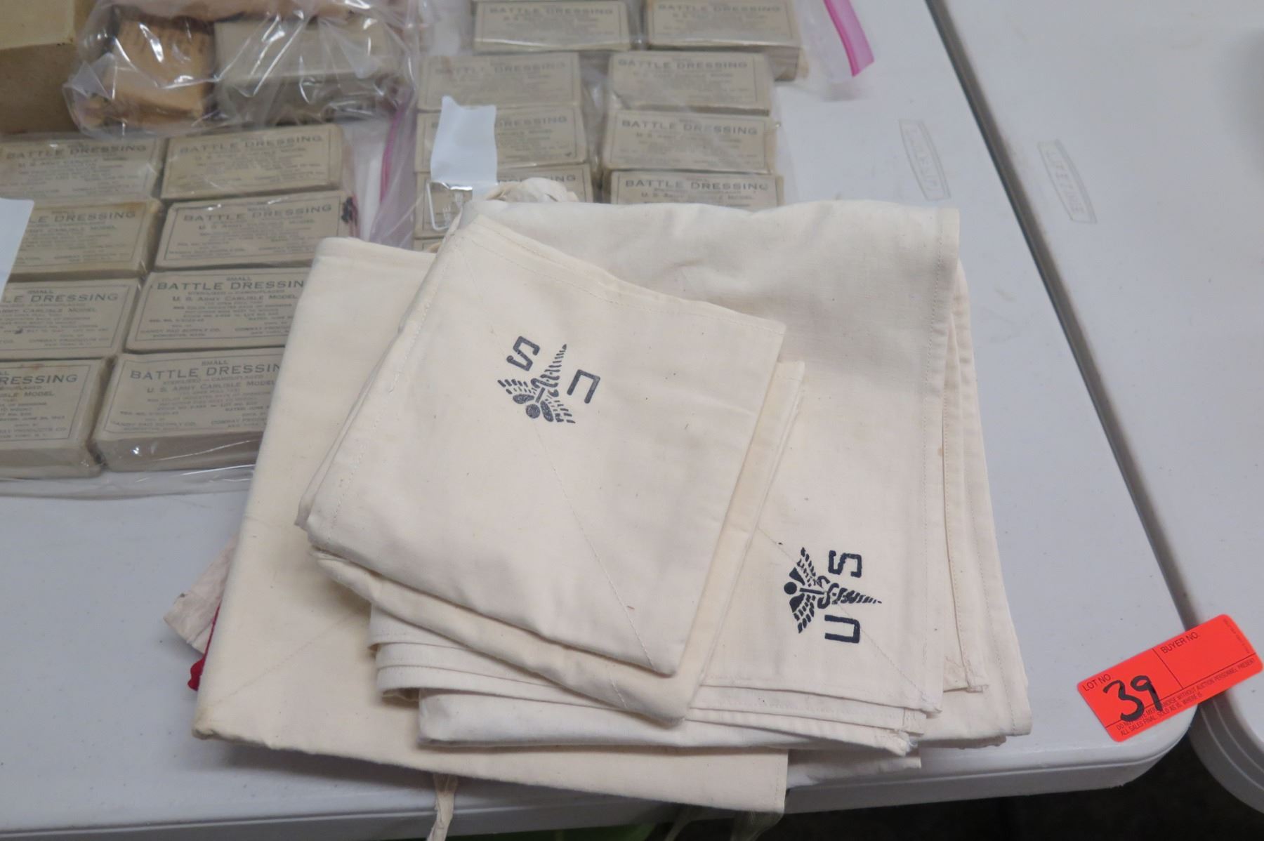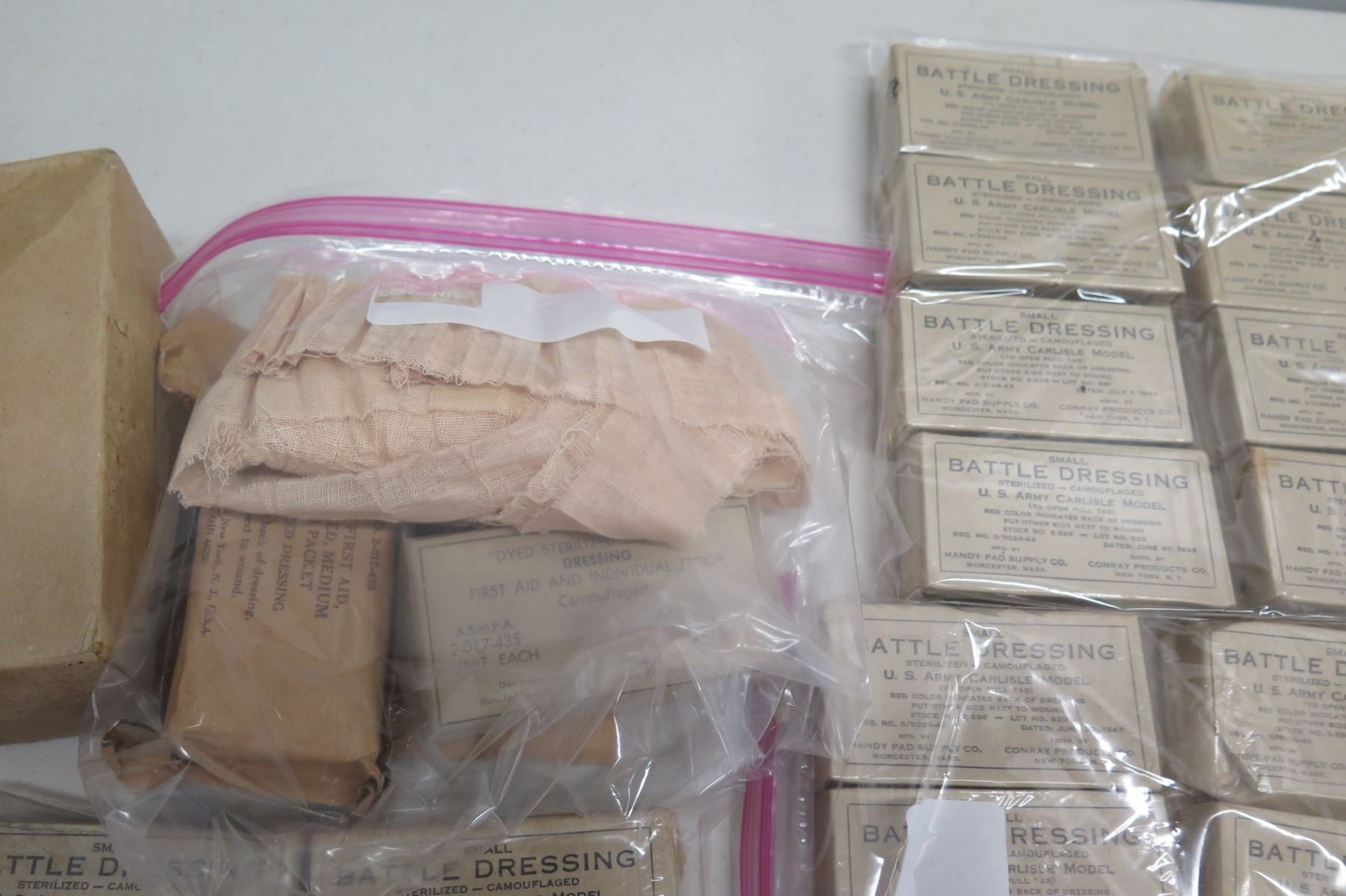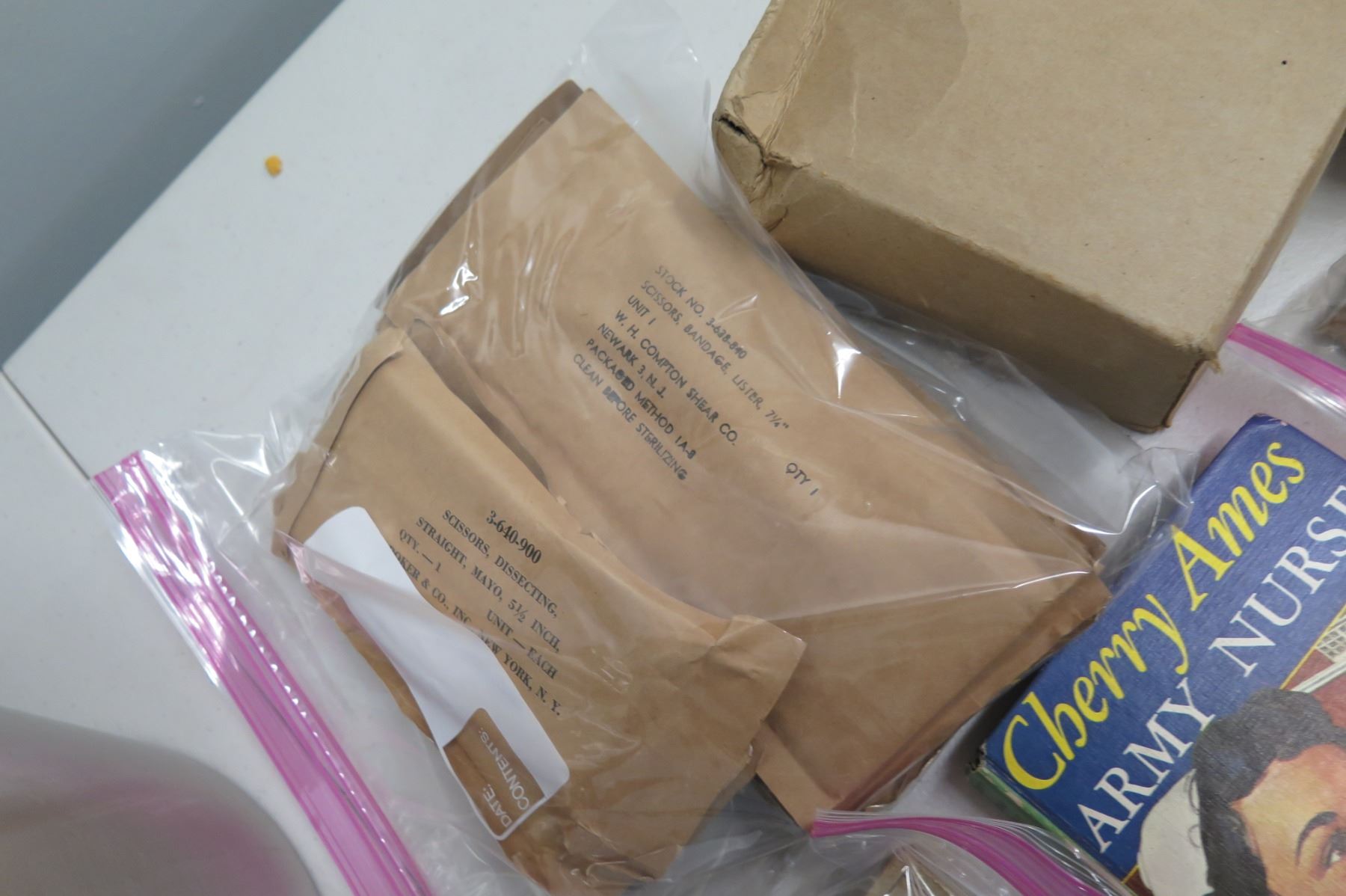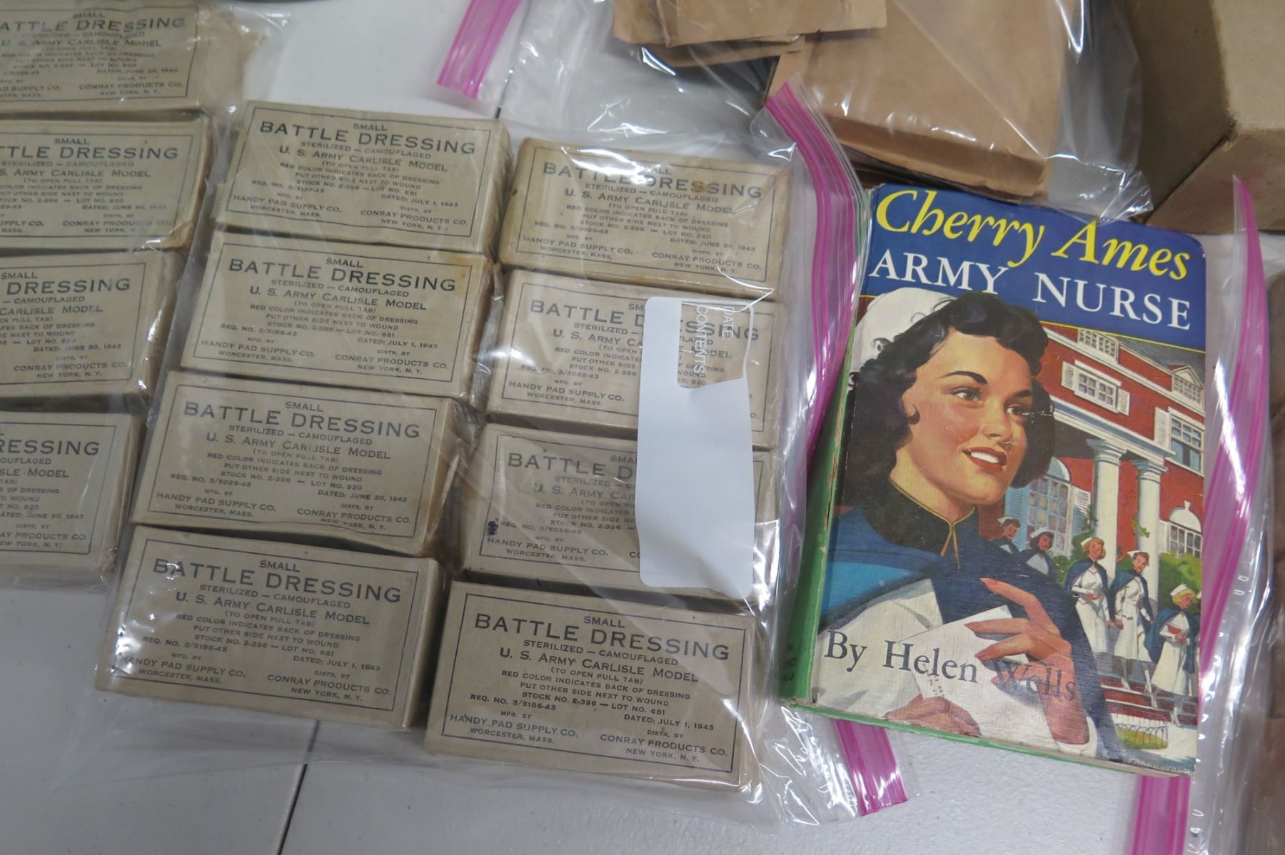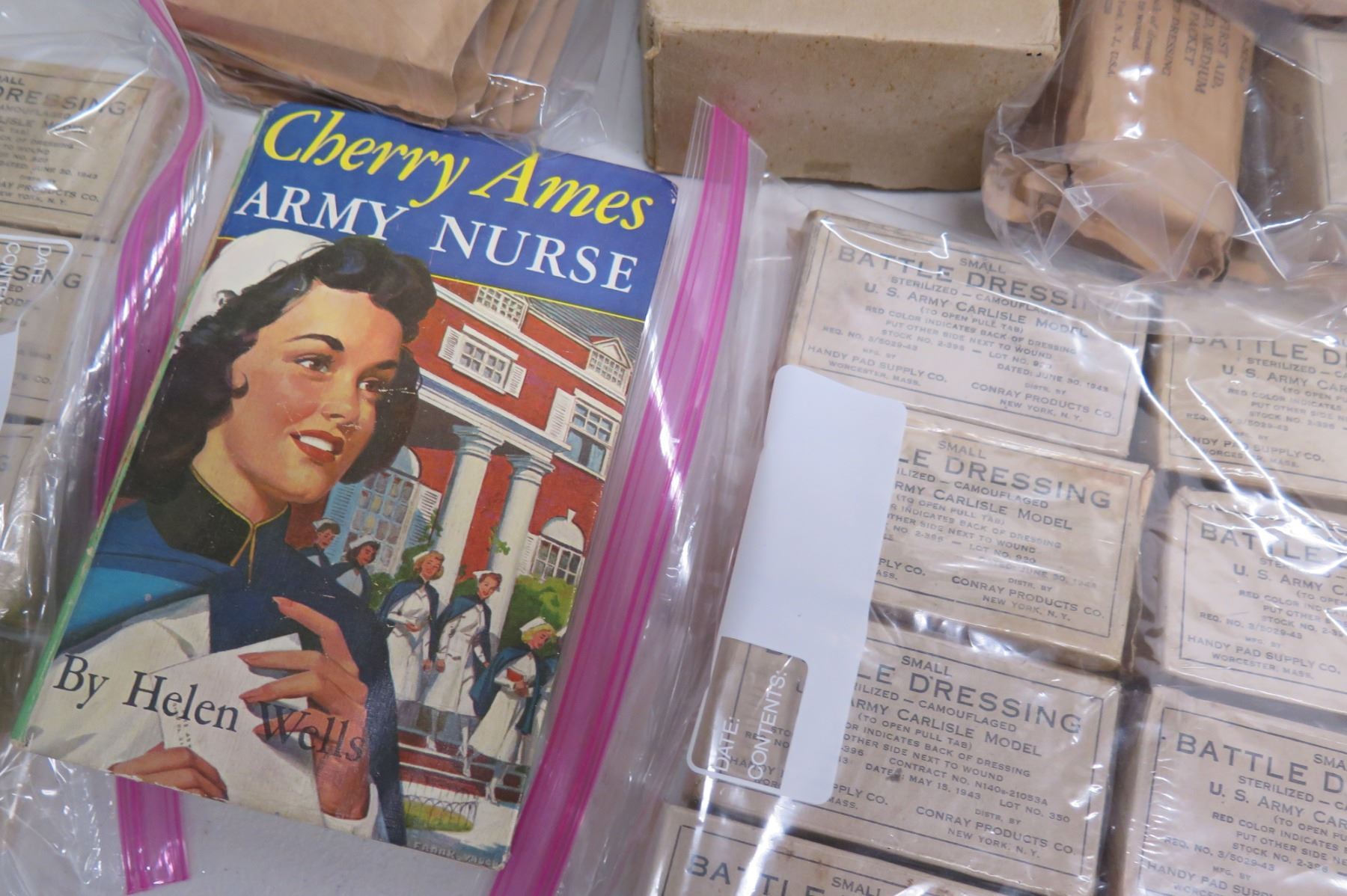 WWII Medical Supplies - Stainless Bucket, Red Cross Bag, Book & Supplies