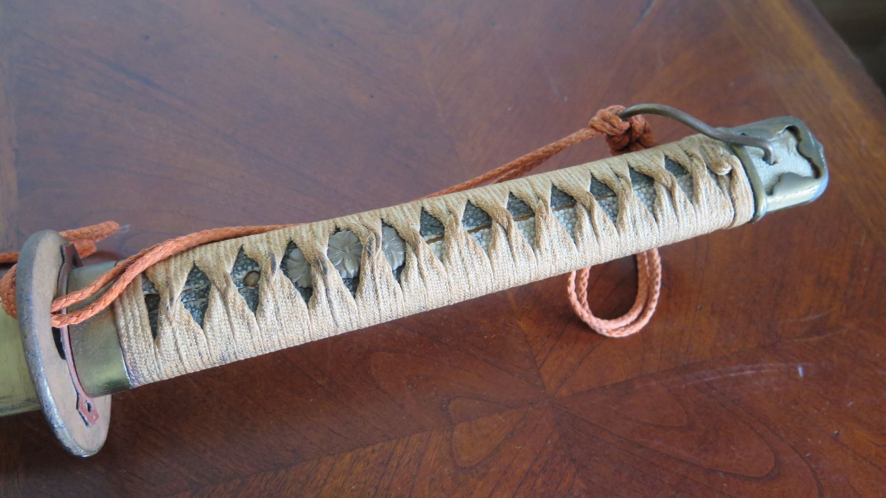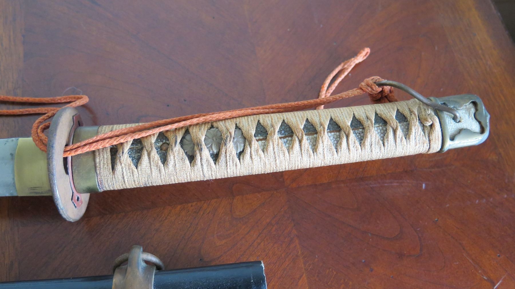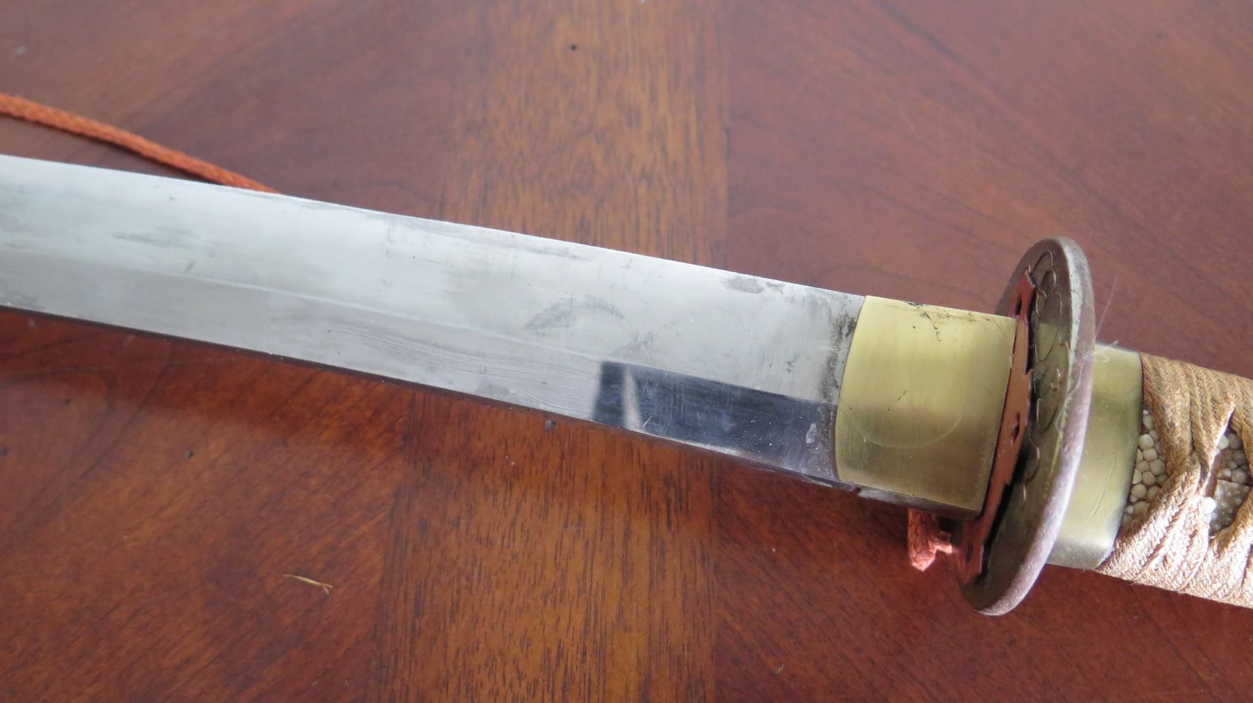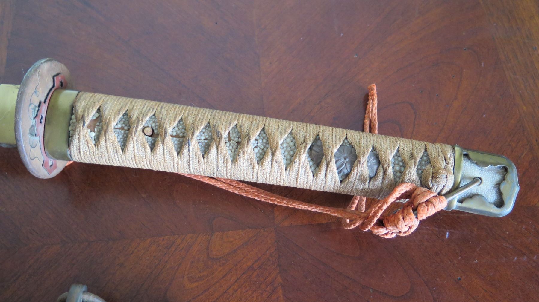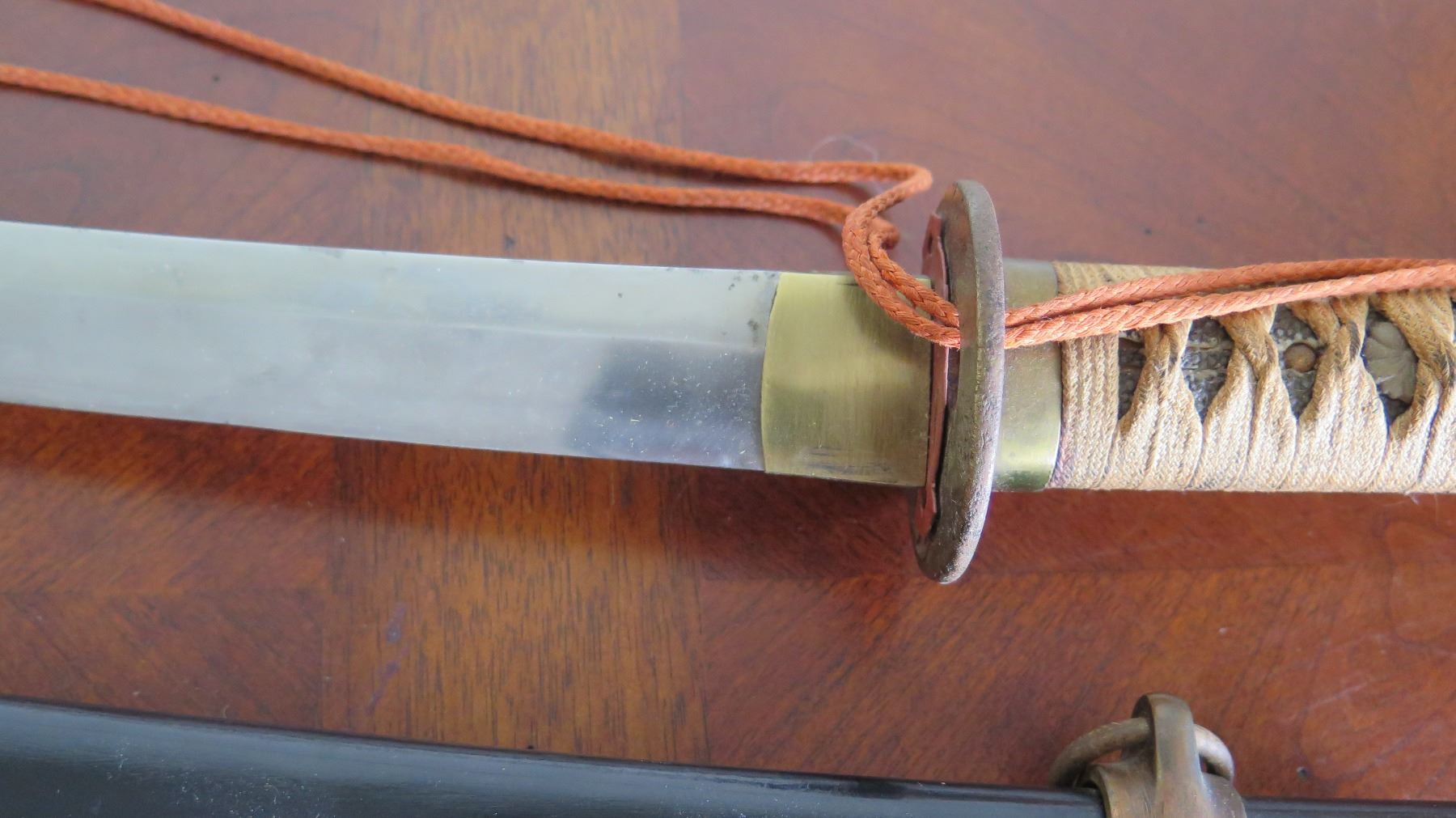 WWII Vintage Samurai Sword, Late or Post-War Fittings, Unsigned, Blade Good Condition. Handle wrapped backwards for military use.