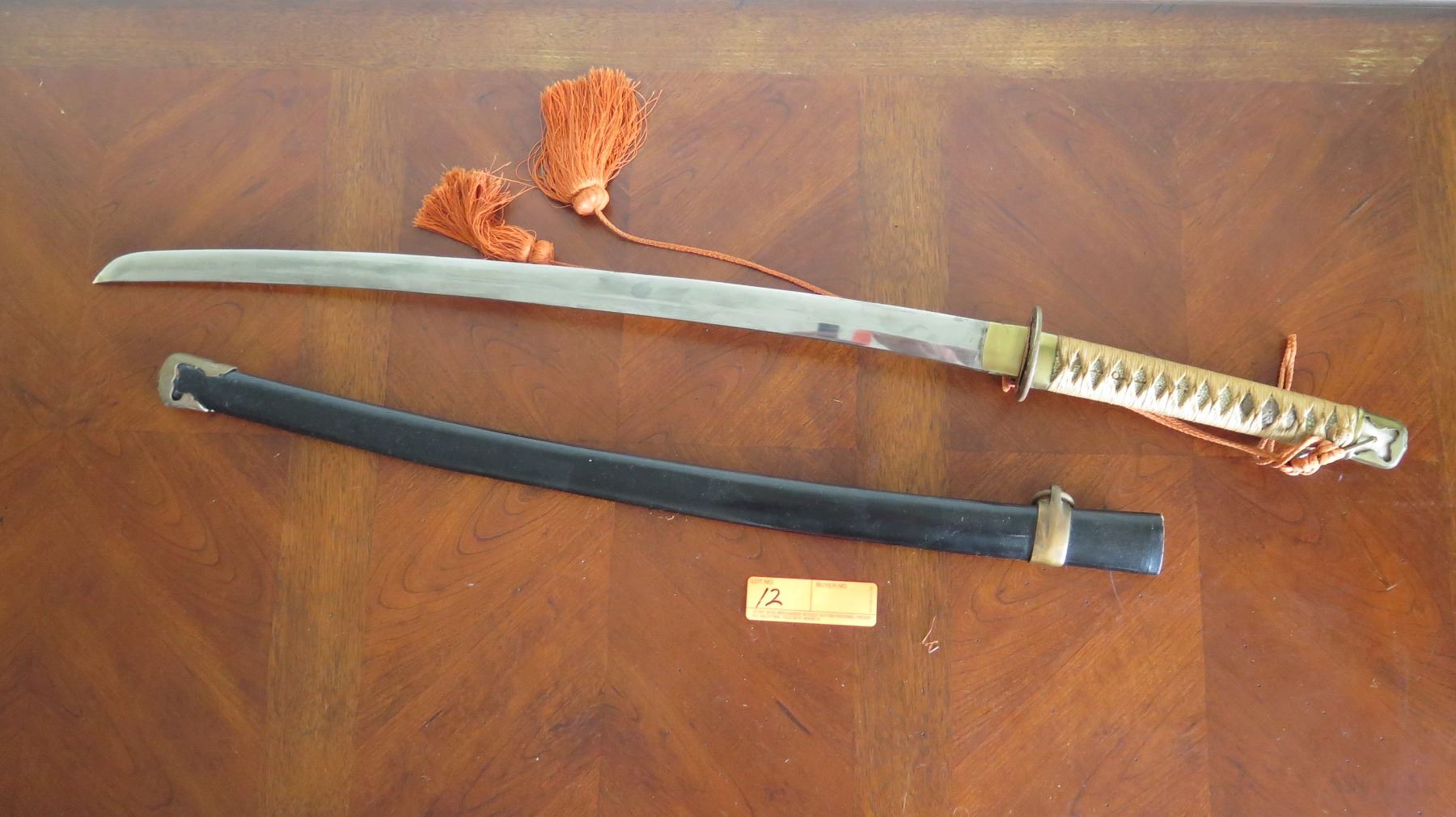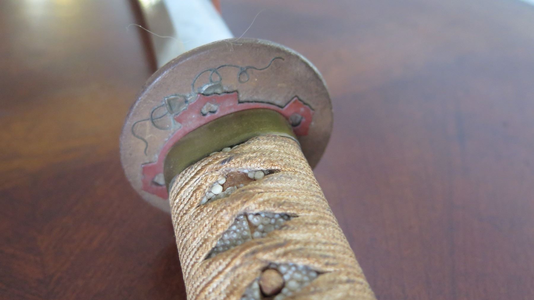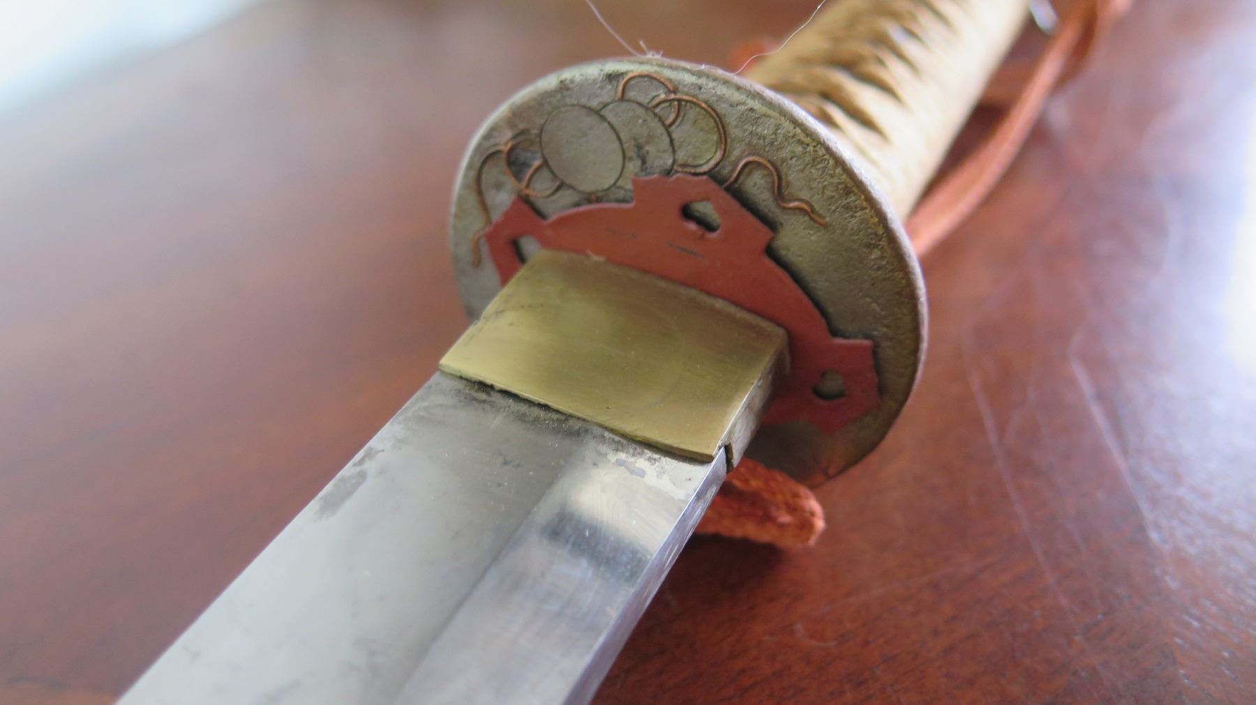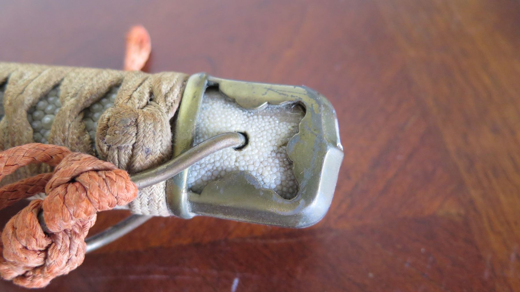 WWII Vintage Samurai Sword, Late or Post-War Fittings, Unsigned, Blade Good Condition. Handle wrapped backwards for military use.