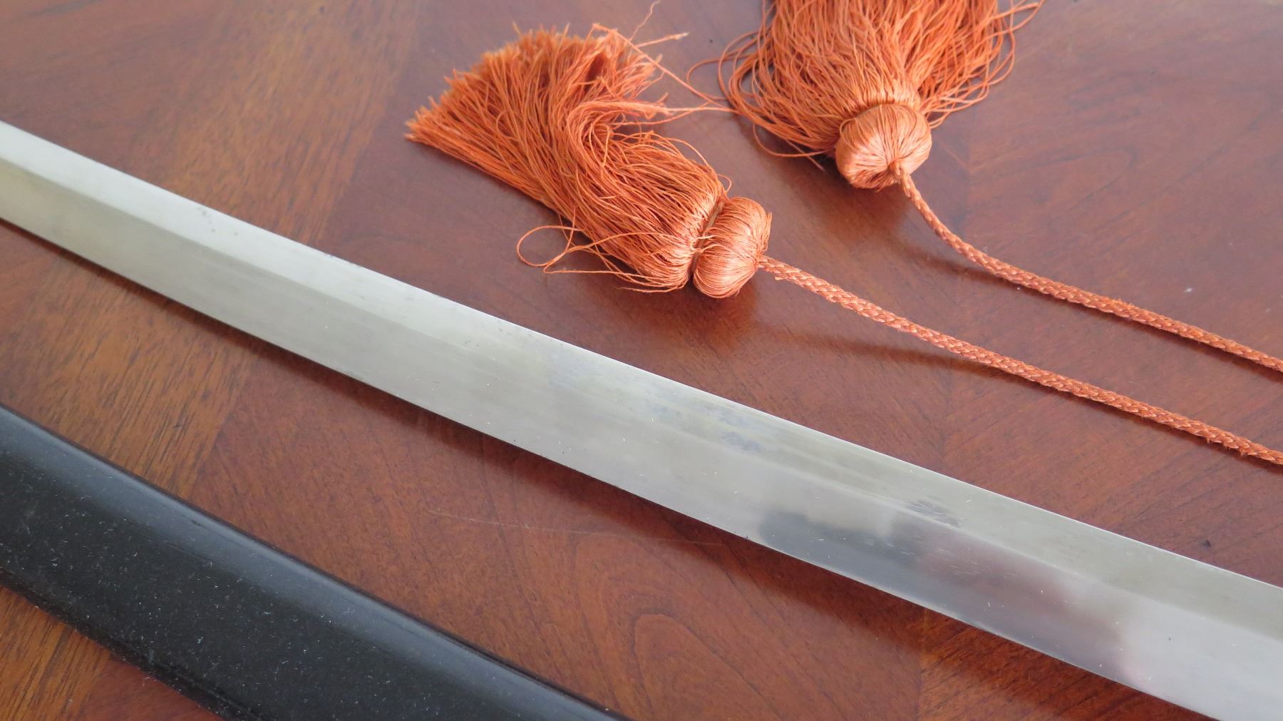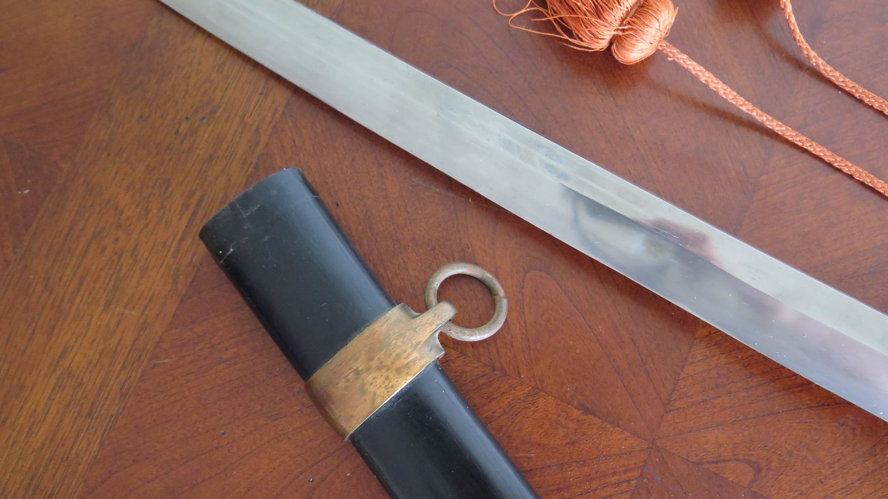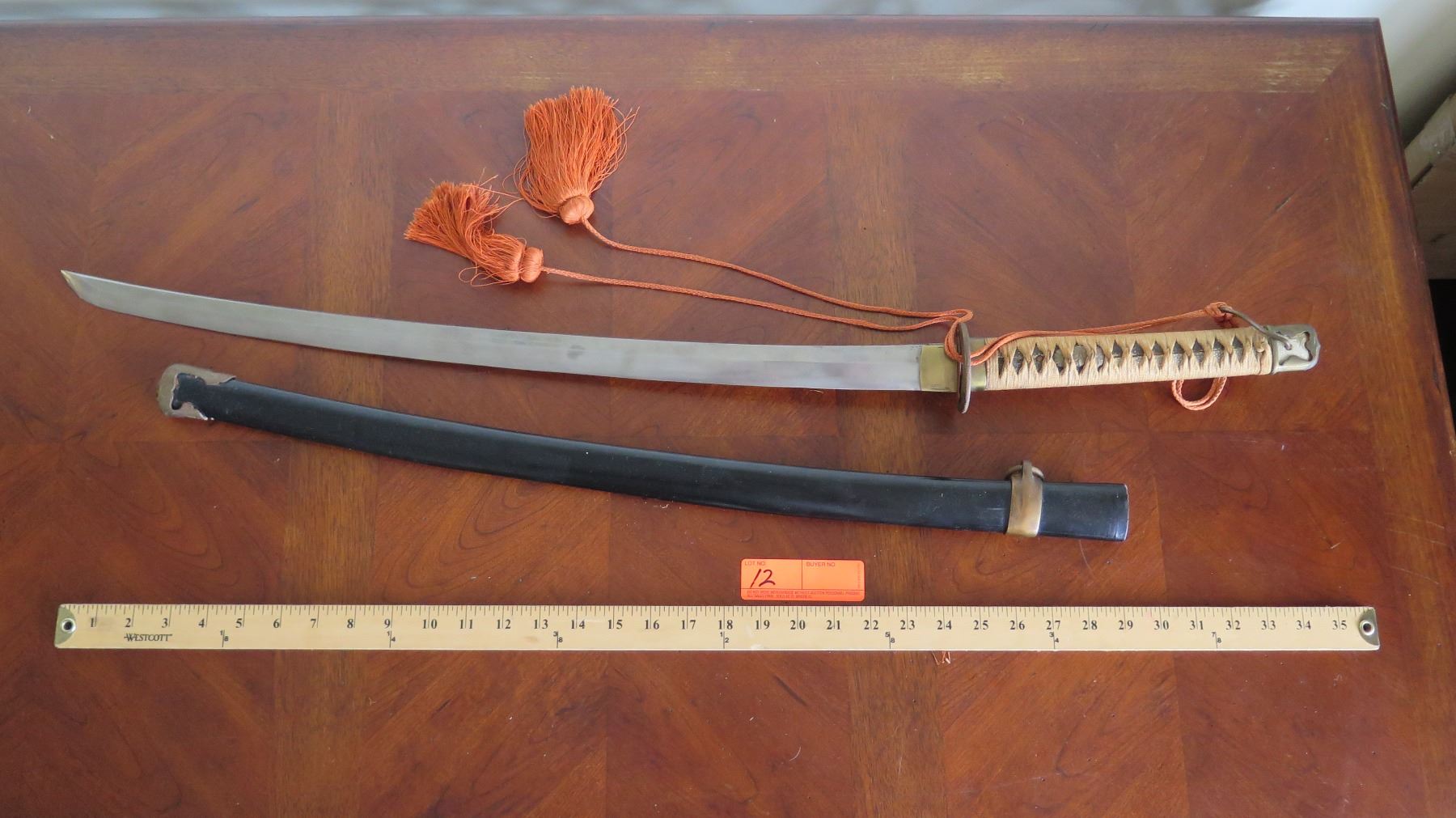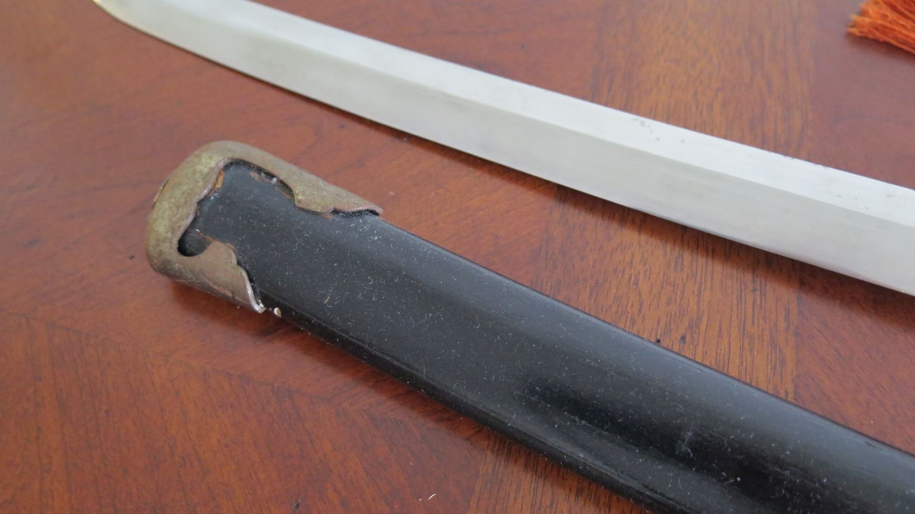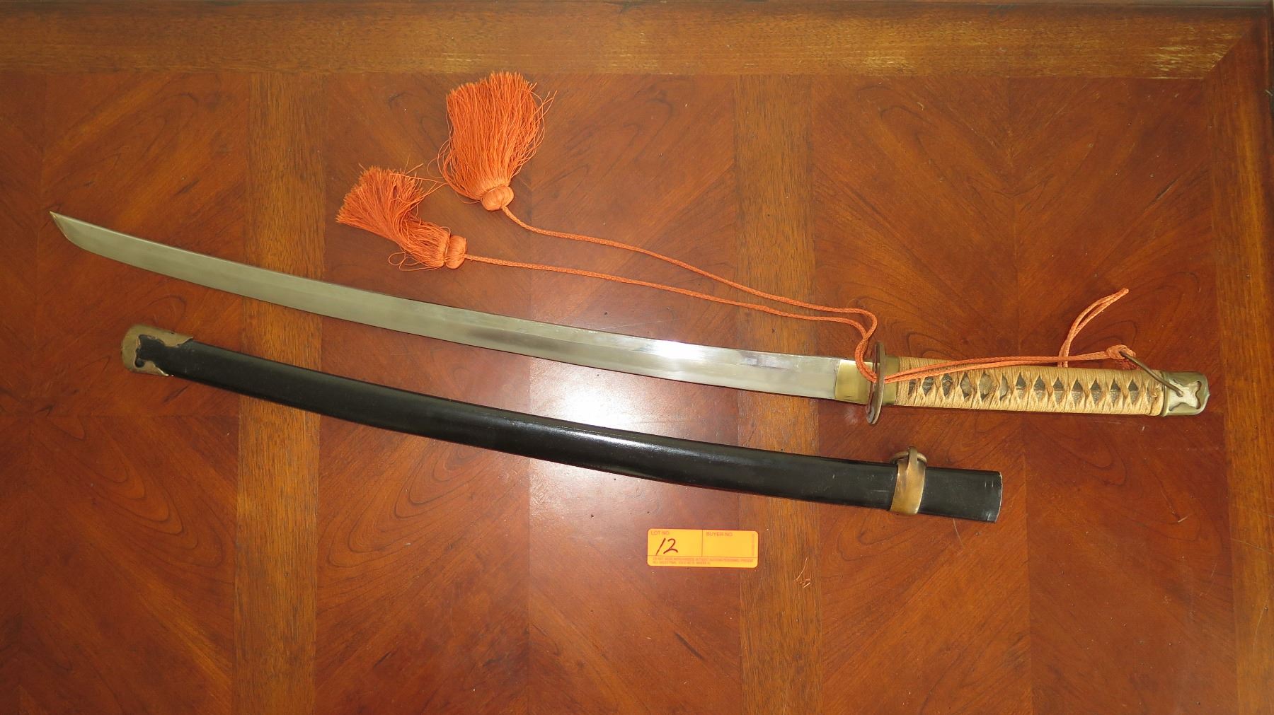 WWII Vintage Samurai Sword, Late or Post-War Fittings, Unsigned, Blade Good Condition. Handle wrapped backwards for military use.