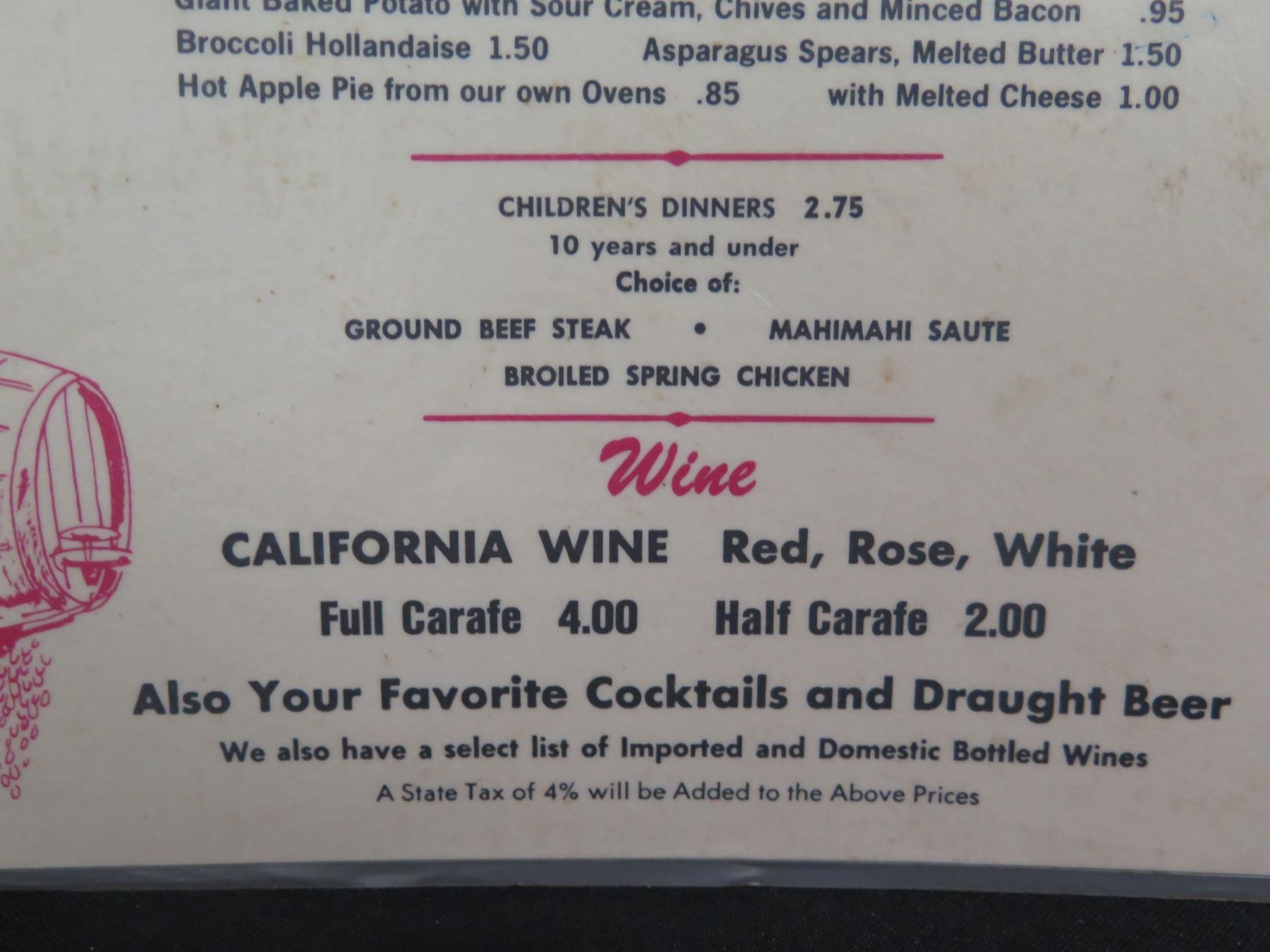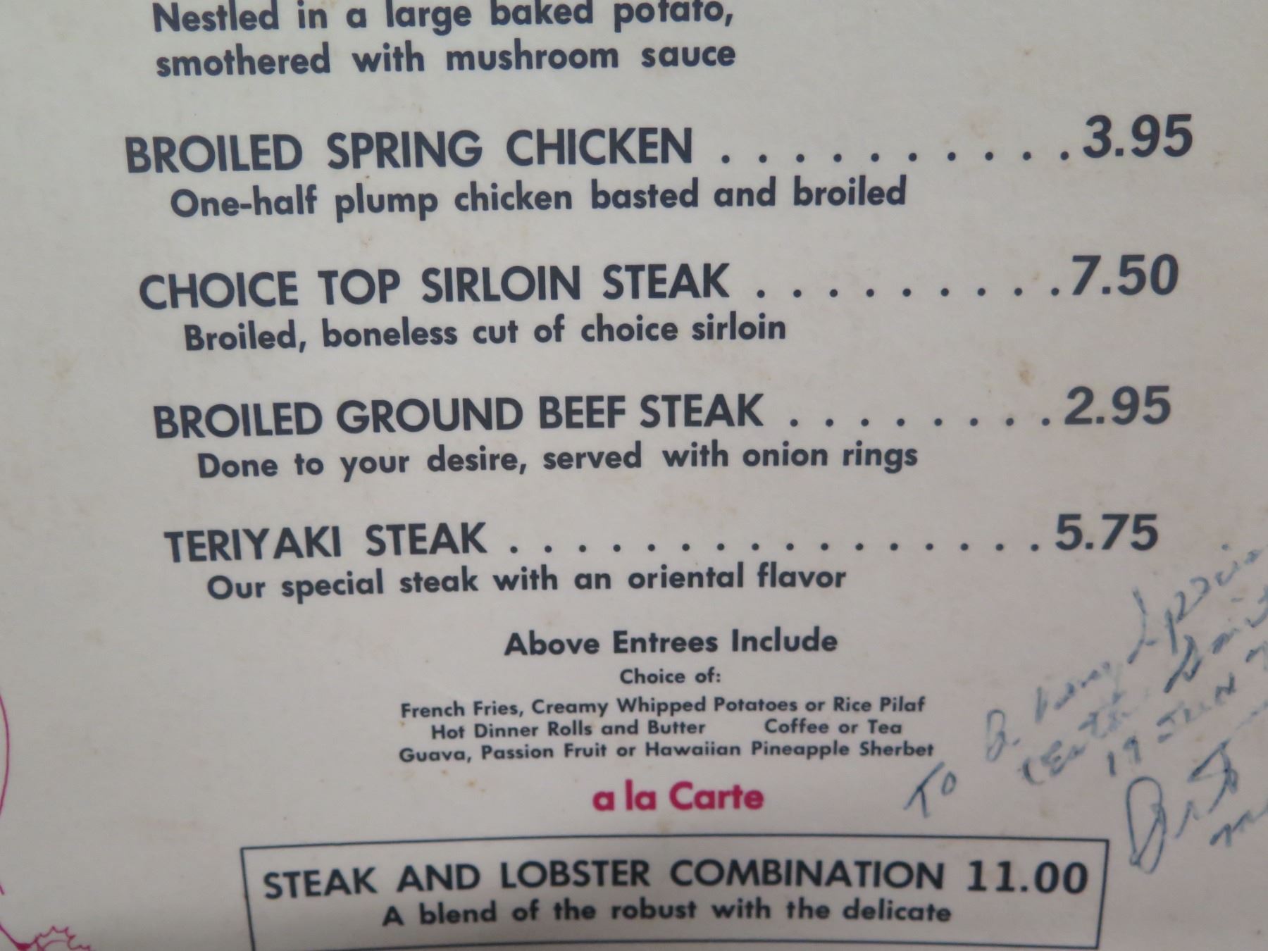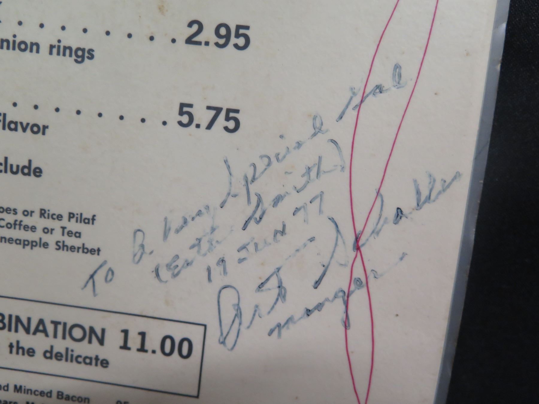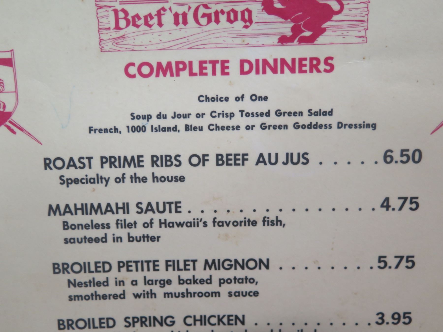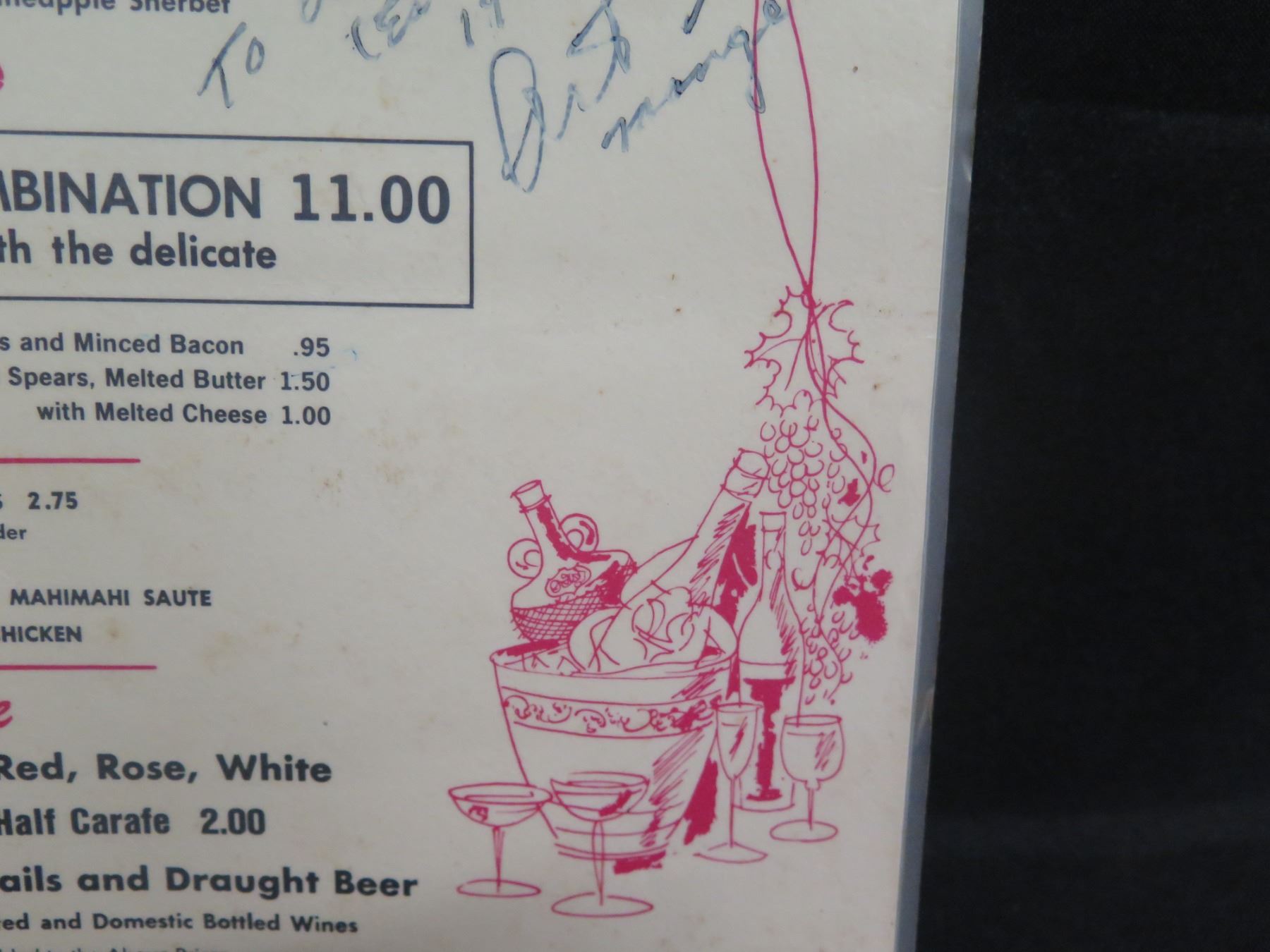 Waikiki Beef & Grog Complete Dinner Menu, Signed, 12"x17"