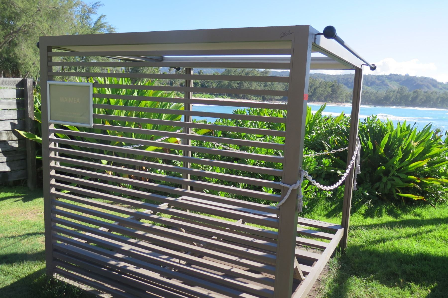 'Waimea" Slatted Mini Cabana w/ Sliding Top Shade Panels 79" x 79" x 77" (metal or aluminum)