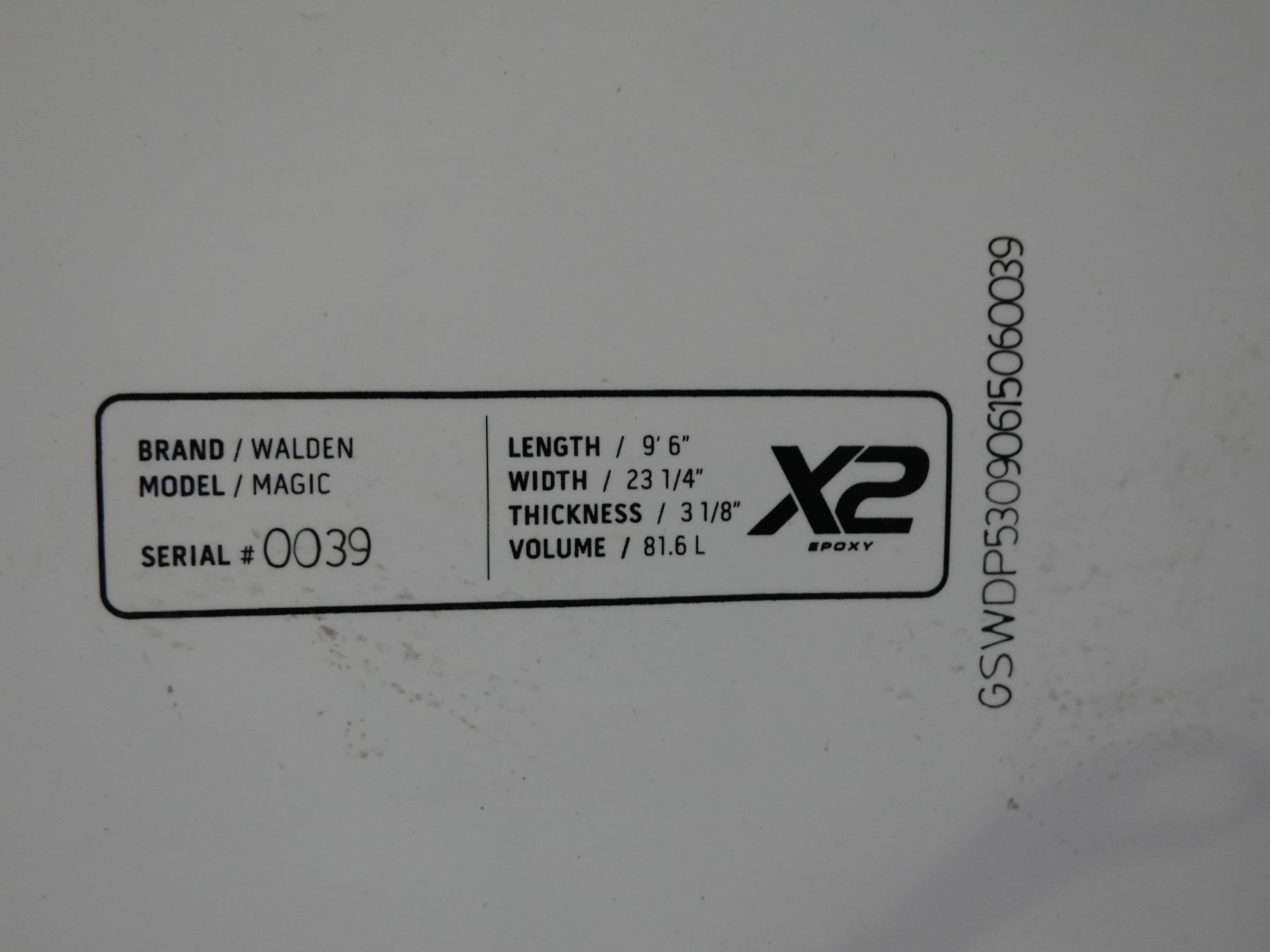 Walden Performance Surfboards Magic Model Gravity Surfboard by Steve Walden 9'6" x 23.25" x approx. 3 1/8" thick.
