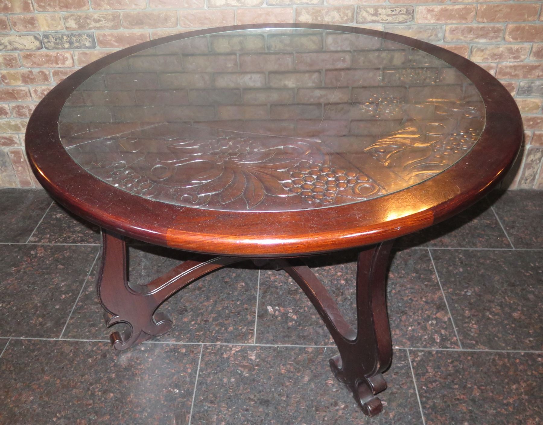 Warisan Round Carved Wooden Table 48 dia, 28 H