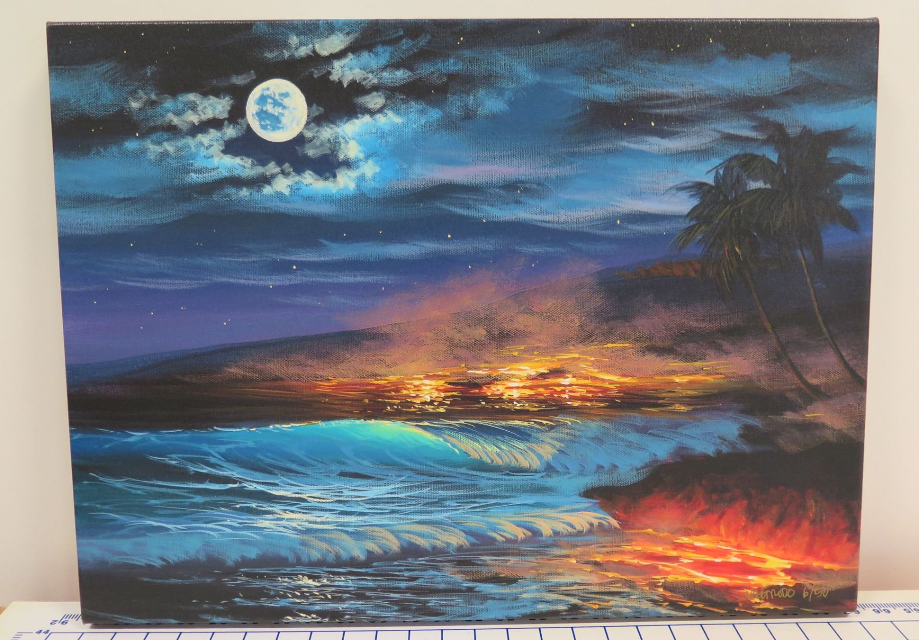 Waves, Moon & Fire Ltd. Edition Canvas Giclee #6/50 by Walfrido Garcia 18" x 24" (retail $975). Has artist's original signature.