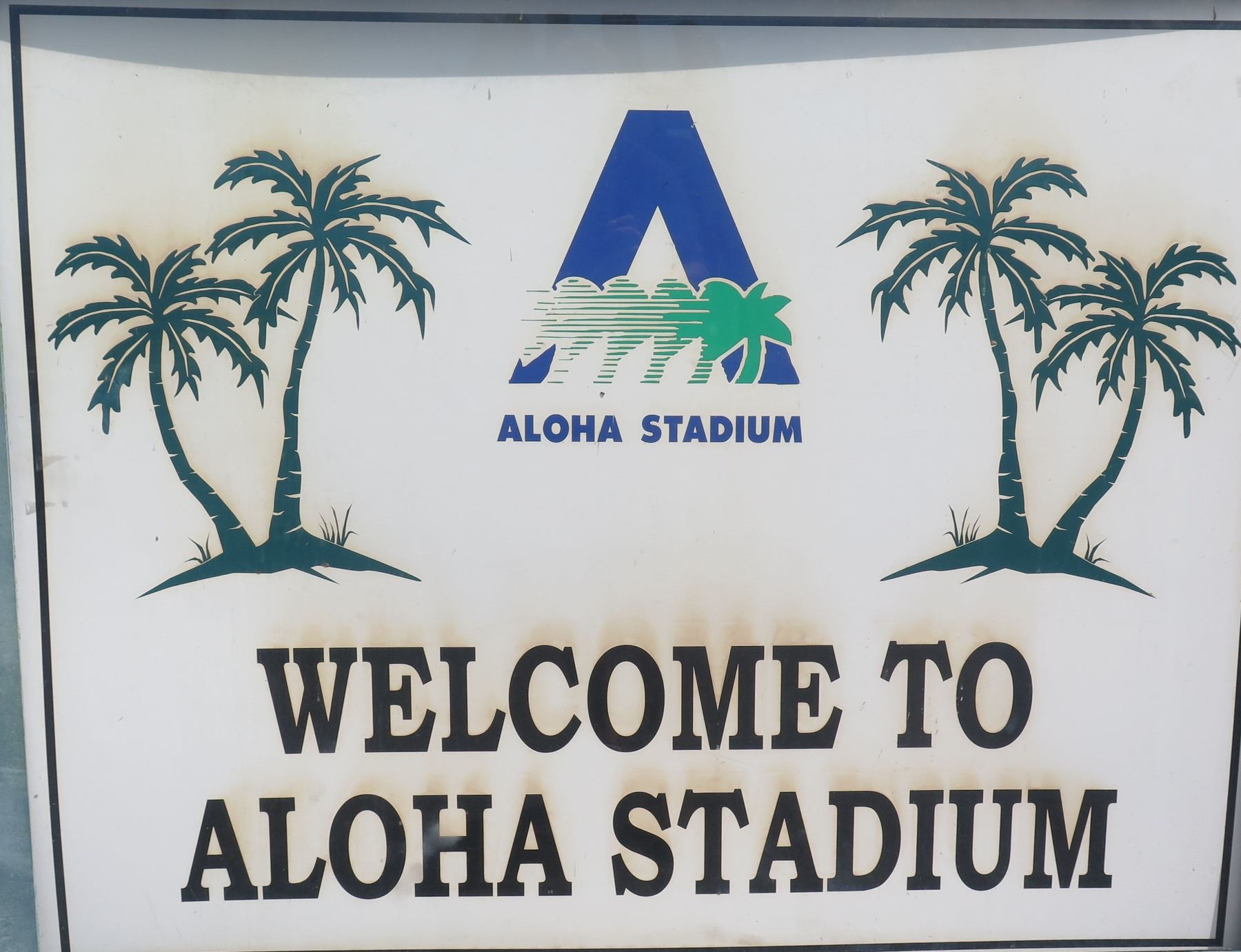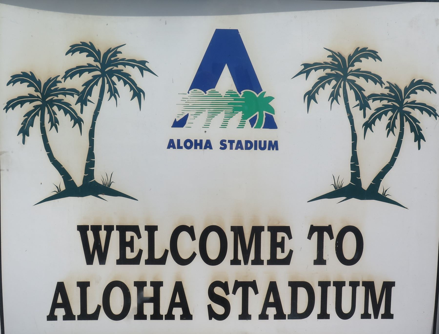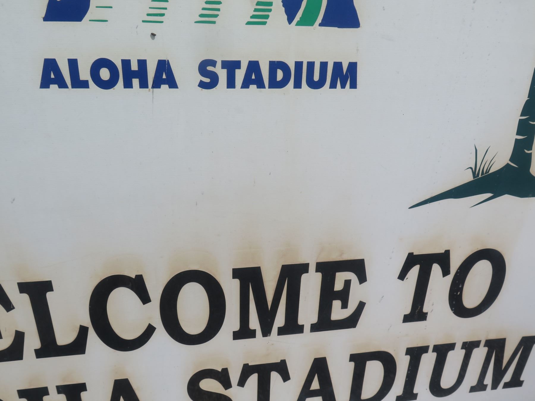 Welcome to Aloha Stadium Sign, 58"x48". Note: Signs will be removed if hanging prior to pick up