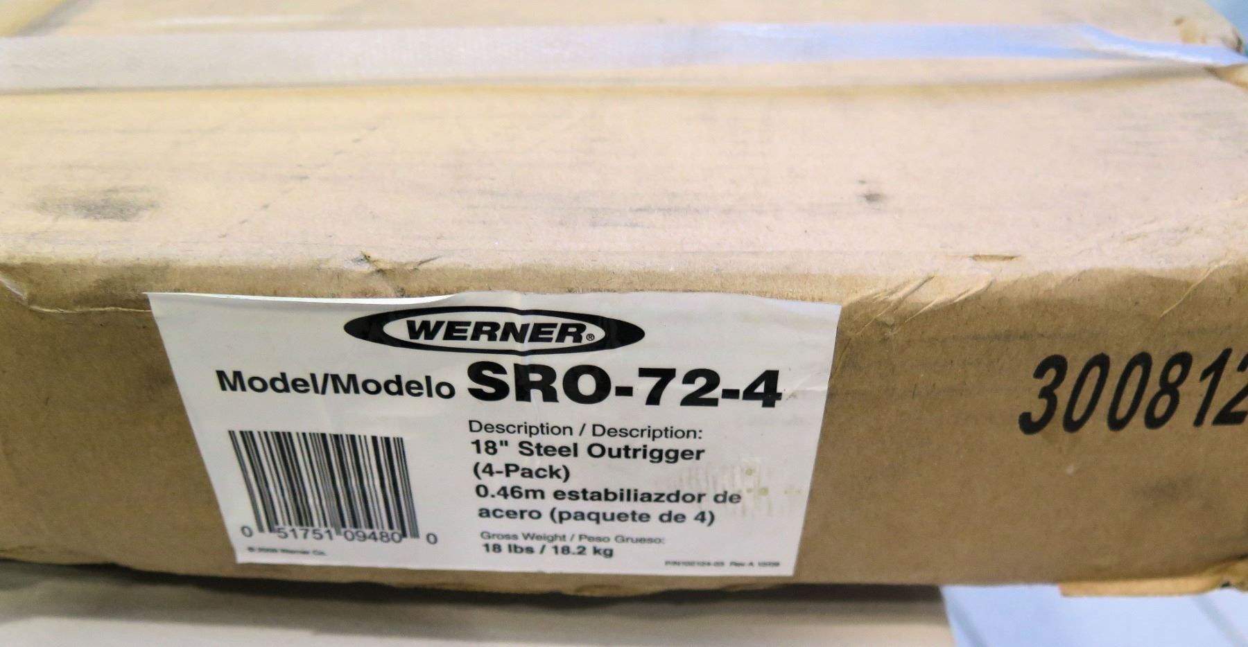 Werner 18" Steel Outrigger (4-Pack) Model SRO-72-4. To see what these look like outside of the box, please see Lot 95